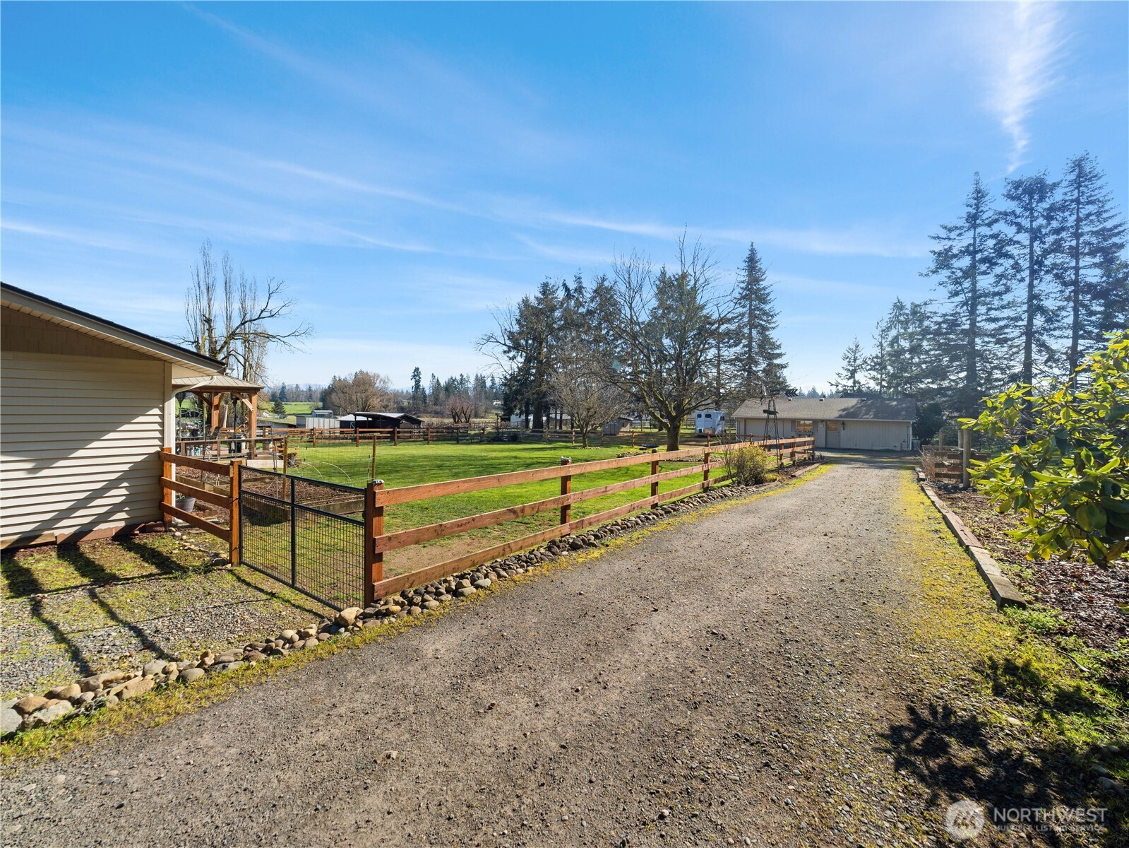 Unobstructed Mt. Rainier & foothill views from this beautifully updated 3-bed, 2.25 bath Wabash rambler on a perfectly laid out, fenced & cross fenced shy 3-acre parcel. Stunning kitchen remodel w/ Shaker style cabinets, huge island, SS appliances, farm sink, Quartz countertops and amazing views. Vaulted great room w/ wood stove insert. Additional living room w/ back deck access & free-standing gas stove. Primary bed w/ private .75 bath. An exceptional property for your equestrian needs and or your all-inclusive hobby farm w/ 4-stall barn, tack room, hay storage, open loafing shed, private well, fertile soils, multiple garden beds, apple/pear/plum orchard, chicken coop, goat pen, abundant privacy, plus a perfect firepit area among the tall firs. Detached 30' x 40' shop w/ 70A power & woodstove. Significant recent updates include: New vinyl windows in 2025, new heat pump in 2024, new roof/gutters on home & shop in 2023 (w/ transferrable roof warranty). Just 1-mile down a quiet country road to the O’Grady's Park trail system, no need to trailer :) Seller offering a $15,000 credit for Buyer's closing costs and or rate buy down!