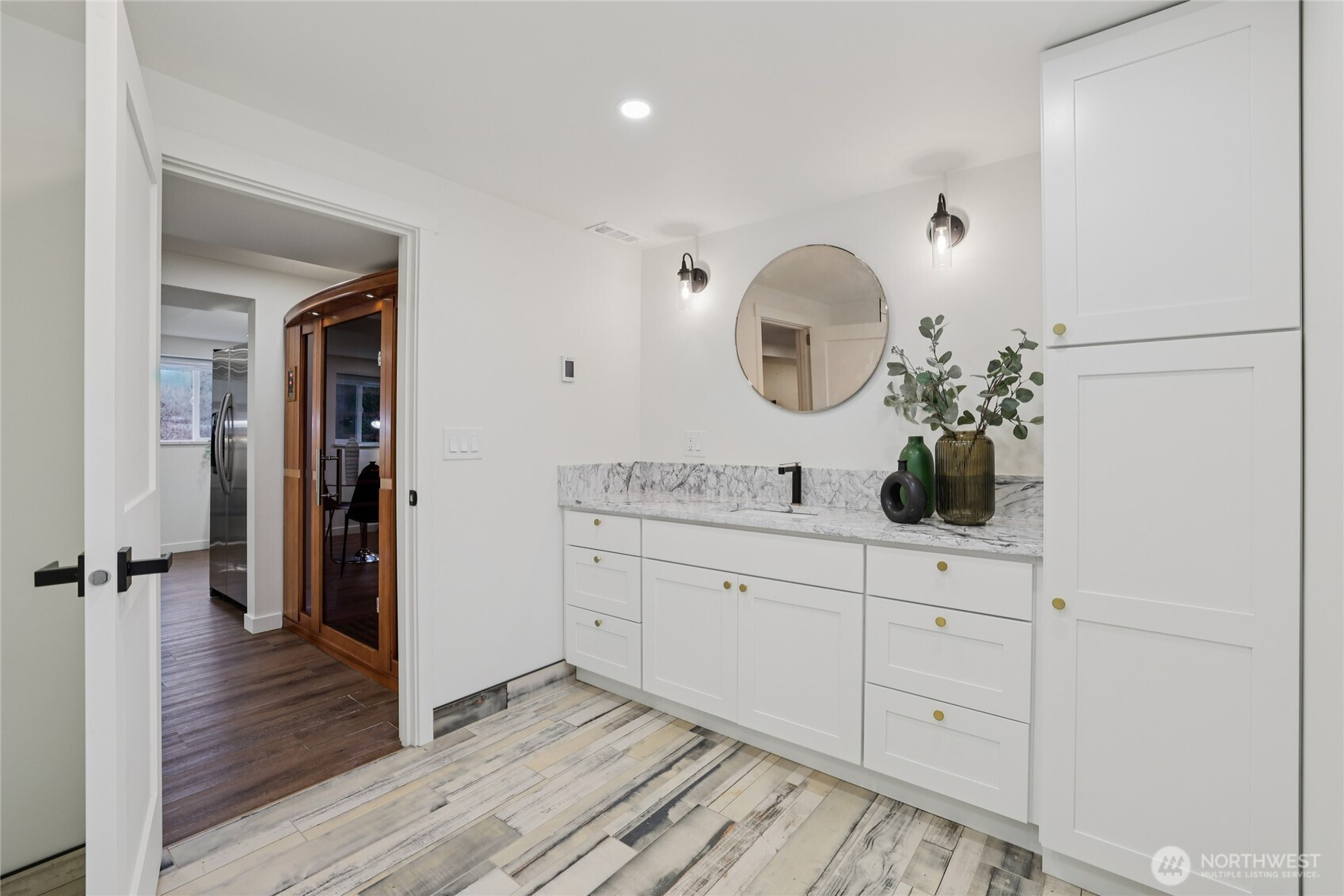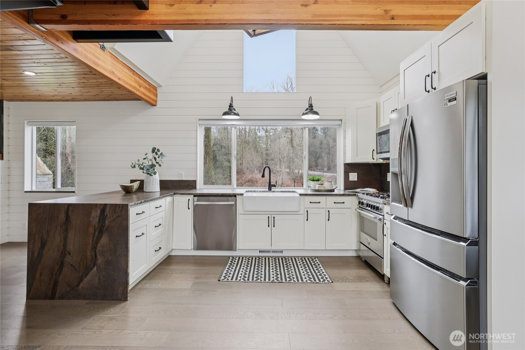 Remodeled and reimagined 1935 farmhouse at the base of English Hill. This lovely home sits on 2.3 acres and is completely updated, featuring 4 bedrooms and 2.5 bathrooms. The open concept main floor has a spacious living room with gorgeous tongue in groove wood ceiling, light filled kitchen and dining room with lofted ceiling, two bedrooms and two baths. An added bonus is a stack washer/dryer on the main floor. Upstairs you'll find two bedrooms + flex loft space. The downstairs is versatile with a kitchenette, home office nook, family room, large laundry room with mop sink, a lovely 3/4 bath and an infrared sauna. Central A/C will keep you comfortable year round. The huge lot is perfect for all types of recreation and large enough for your own pickleball court! Superbly located, with easy access to 520, Redmond and Woodinville.