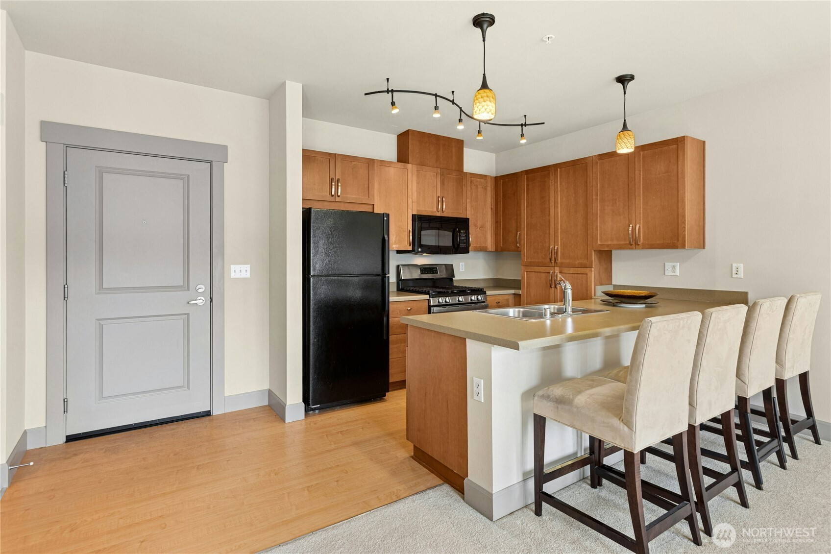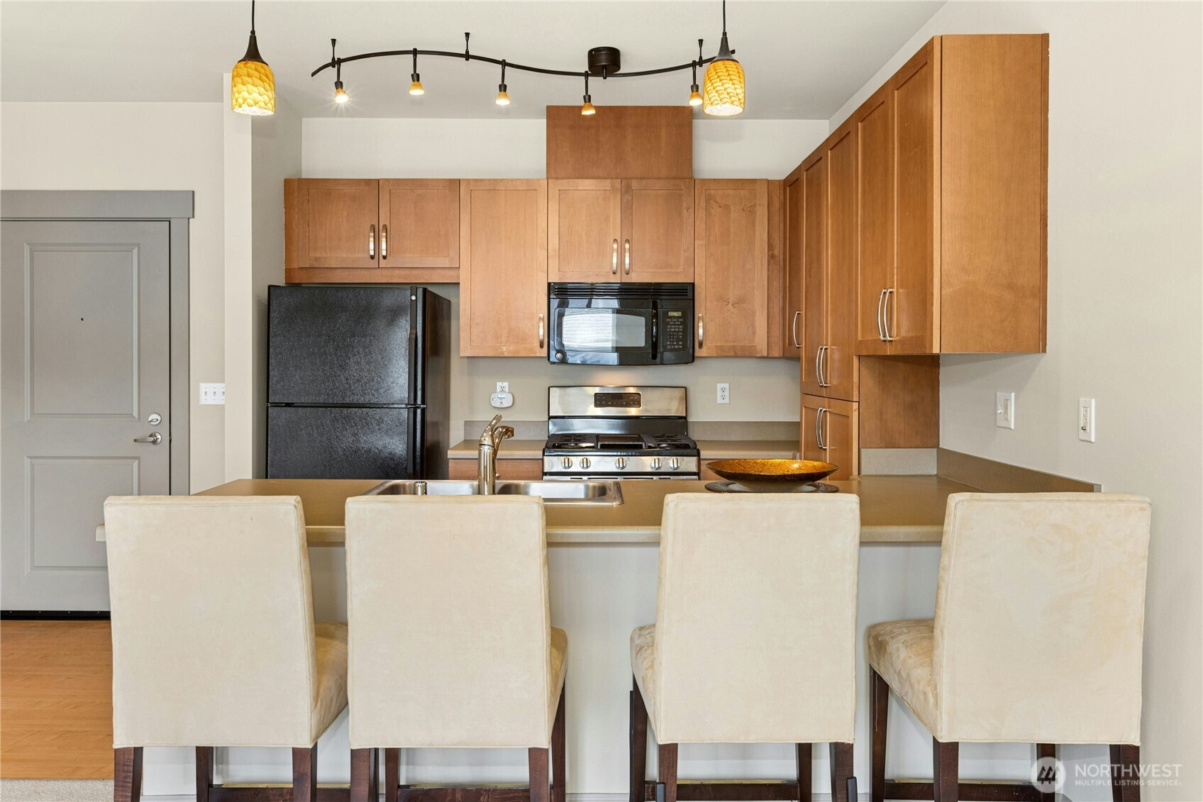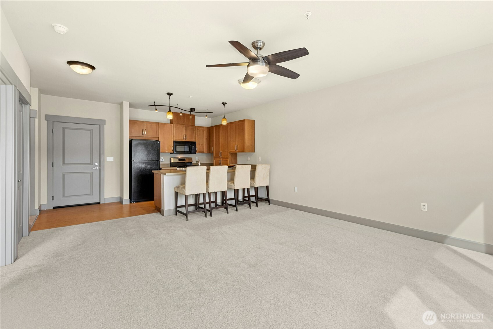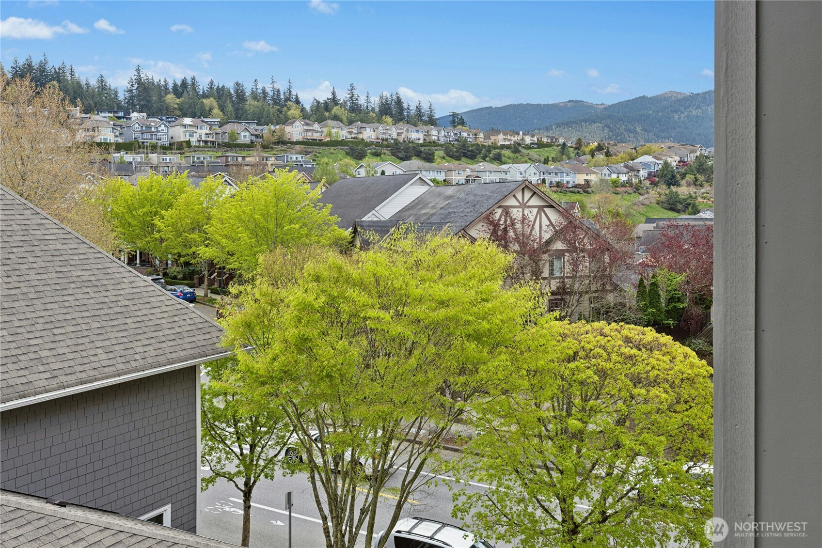 Top floor 1-Bedroom Starpoint condo featuring excellent views of Grand Ridge and Tiger Mountain, with rare covered view deck. Great value and in impeccable condition, this home offers all new fresh interior paint. Enjoy an open kitchen design with breakfast bar and brand new oven with gas range. The spacious bedroom with a ceiling fan includes direct access to the covered view deck—perfect for relaxing while taking in scenic surroundings. The open layout provides both comfort and functionality for everyday living and entertaining. The home includes secured building entry for added peace of mind, storage in the retail garage, and one assigned parking space. You’ll also appreciate the brand new LG washer/dryer set —making this home truly move-in ready. Located within walking distance to Grand Ridge Elementary school and surrounded by an abundance of parks, sports courts, shopping, dining, trails and more. This home offers the perfect blend of convenience and lifestyle.