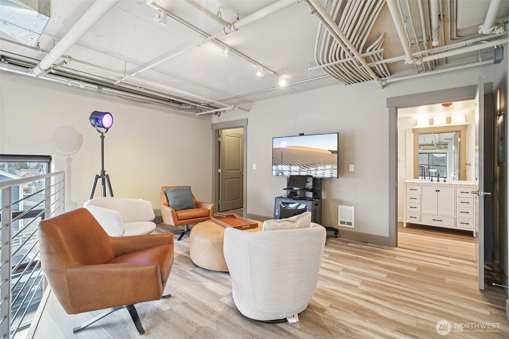 Rare opportunity to own a commercially zoned live/work condo in the highly sought-after Starpoint community in the heart of Issaquah Highlands, offering valuable high-traffic, street-front exposure. This prime ground-floor end unit features a formal storefront entry, ADA-accessible bathroom, soaring ceilings, and walls of windows with solar shades that flood the space with natural light, creating a striking modern urban aesthetic with polished concrete floors and track lighting. The flexible layout allows for a wide range of uses including office, medical/dental, daycare, salon, massage clinic, coffee shop, and more. A beautiful kitchen with granite countertops and stainless steel appliances, washer/dryer hookup, and main area stubbed for additional plumbing enhance functionality. Upstairs offers a loft/bedroom with full bath and walk-in closet for added versatility. Equipped with HVAC and includes two dedicated parking spaces (one secured underground/garage). Just minutes to parks, trails, excellent restaurants, theater, and great shopping!