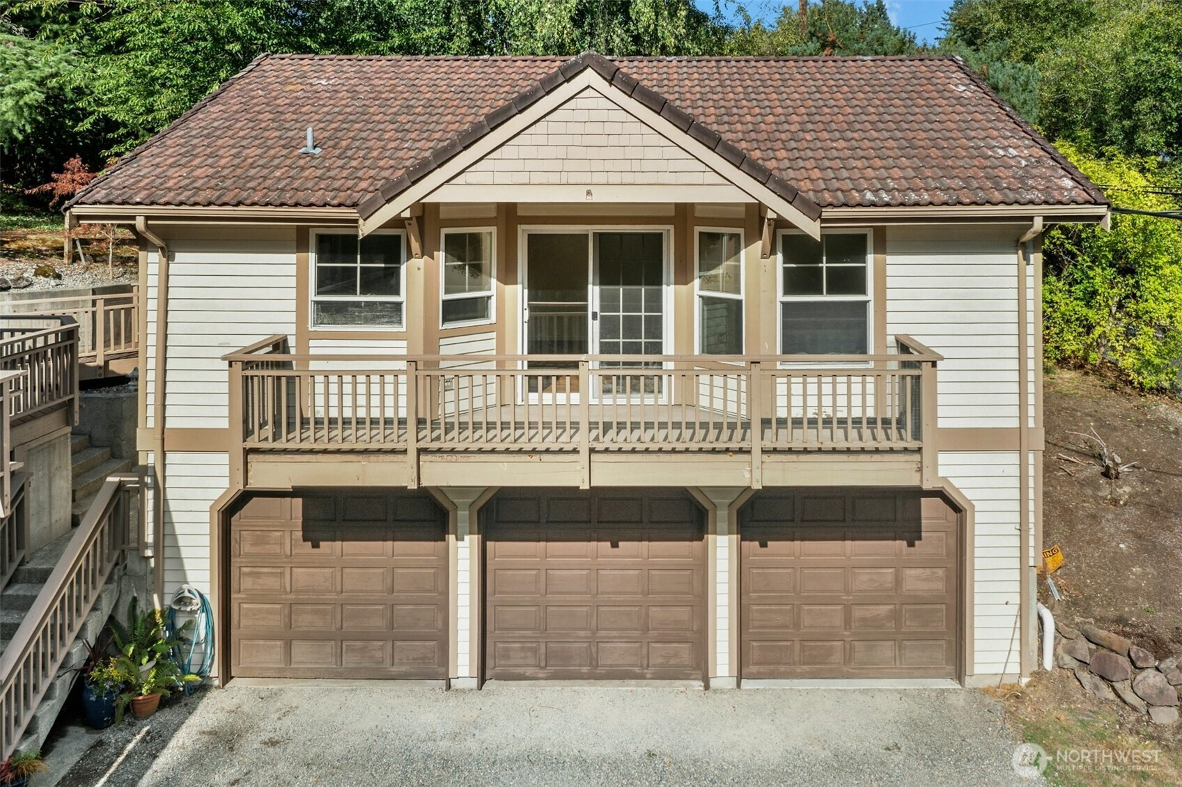 Discover rare income potential with this inviting property featuring a spacious ADU above a three-car garage—perfect for guests, extended living, or rental opportunities. Not your cookie-cutter home, this rare property is a stand-out with charming, heirloom details. The versatile 4-bedroom main home offers comfort and flexibility, ideal for cozy retreats or entertaining. Enjoy a sun-filled eat-in kitchen with French doors, opening onto a wrap-around deck, a private primary suite for peaceful escapes, and extra bedrooms for guests, work, or hobbies. The open-concept downstairs provides generous gathering space for home office or to entertain, while a charming secret loft adds a delightful touch. Outdoors, find fruit trees, room to garden, and patios perfect for relaxing or hosting. Centrally located in the award-winning Northshore School District, a short drive, easy bike ride, or leisurely walk to essential services, transportation options, Burke Gilman Trail, waterfront parks, public boat launch, and more. This move-in ready home combines convenience, charm, and possibilities
