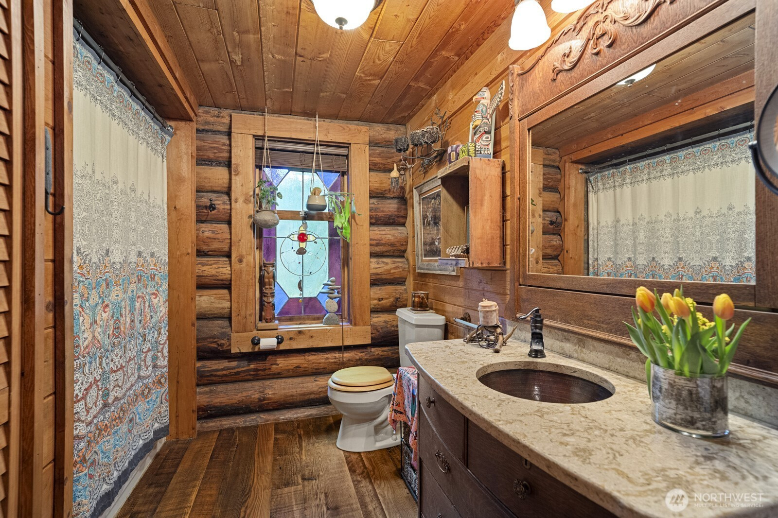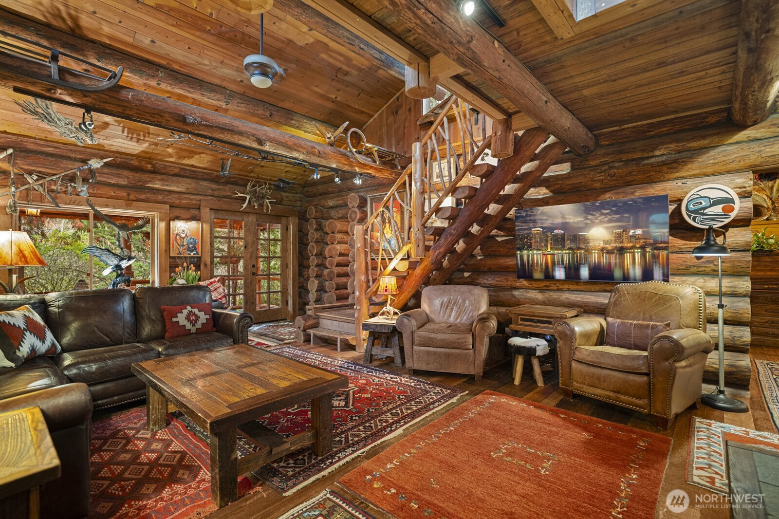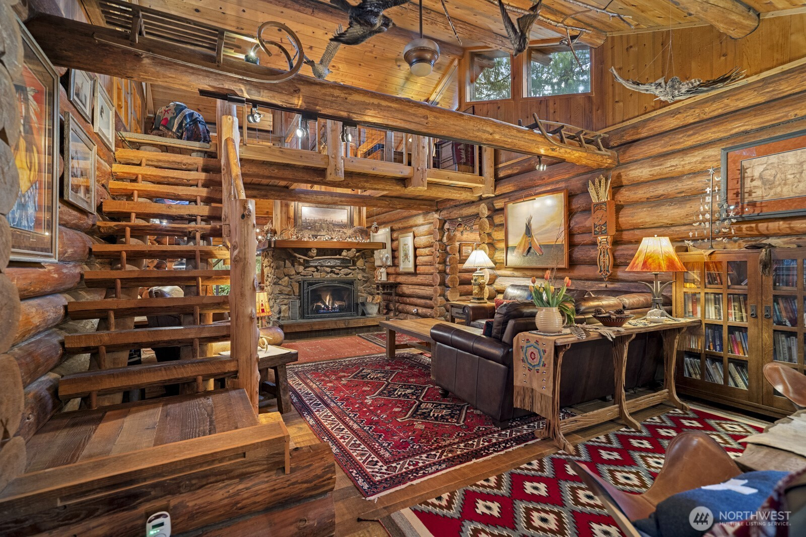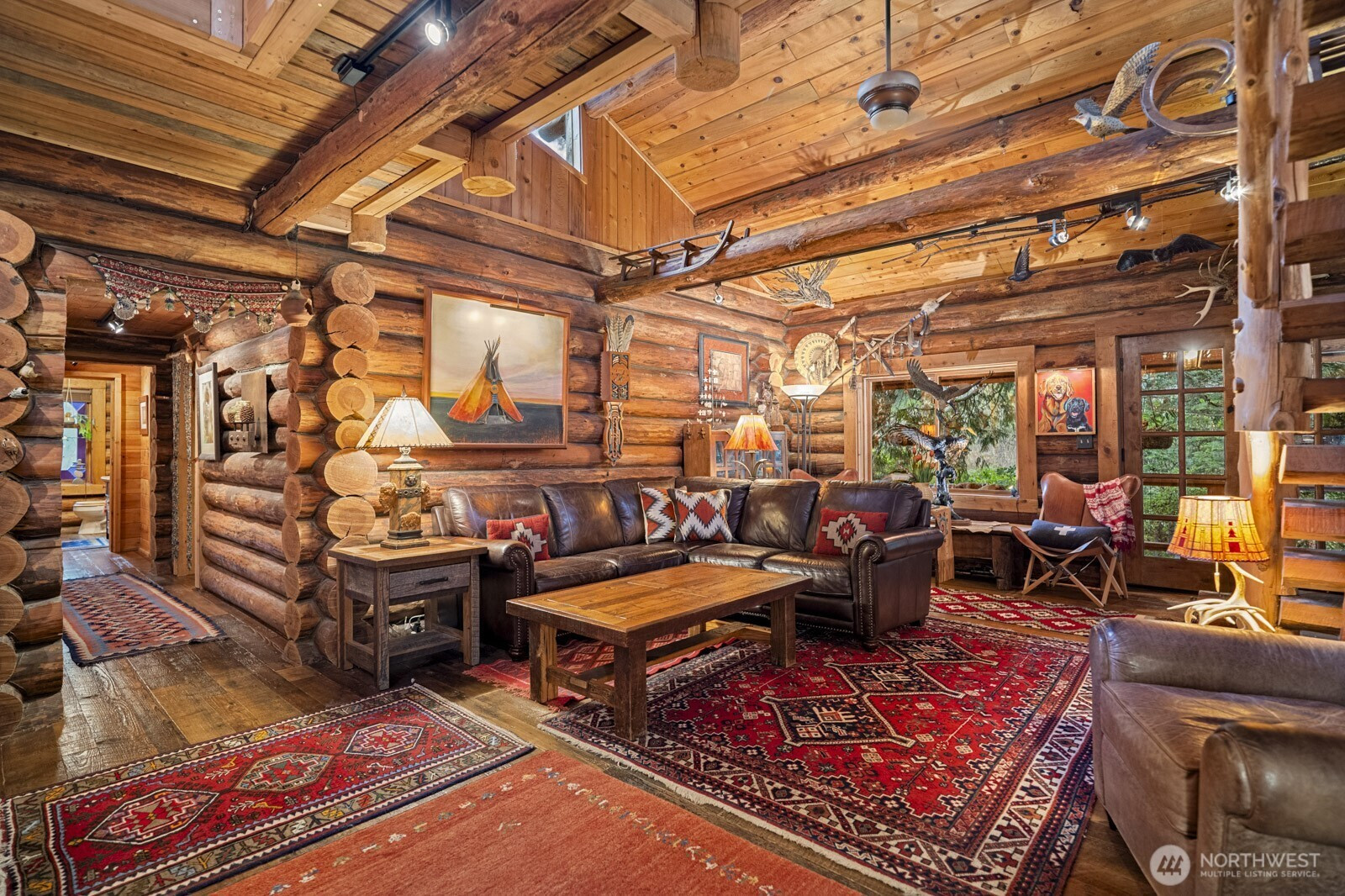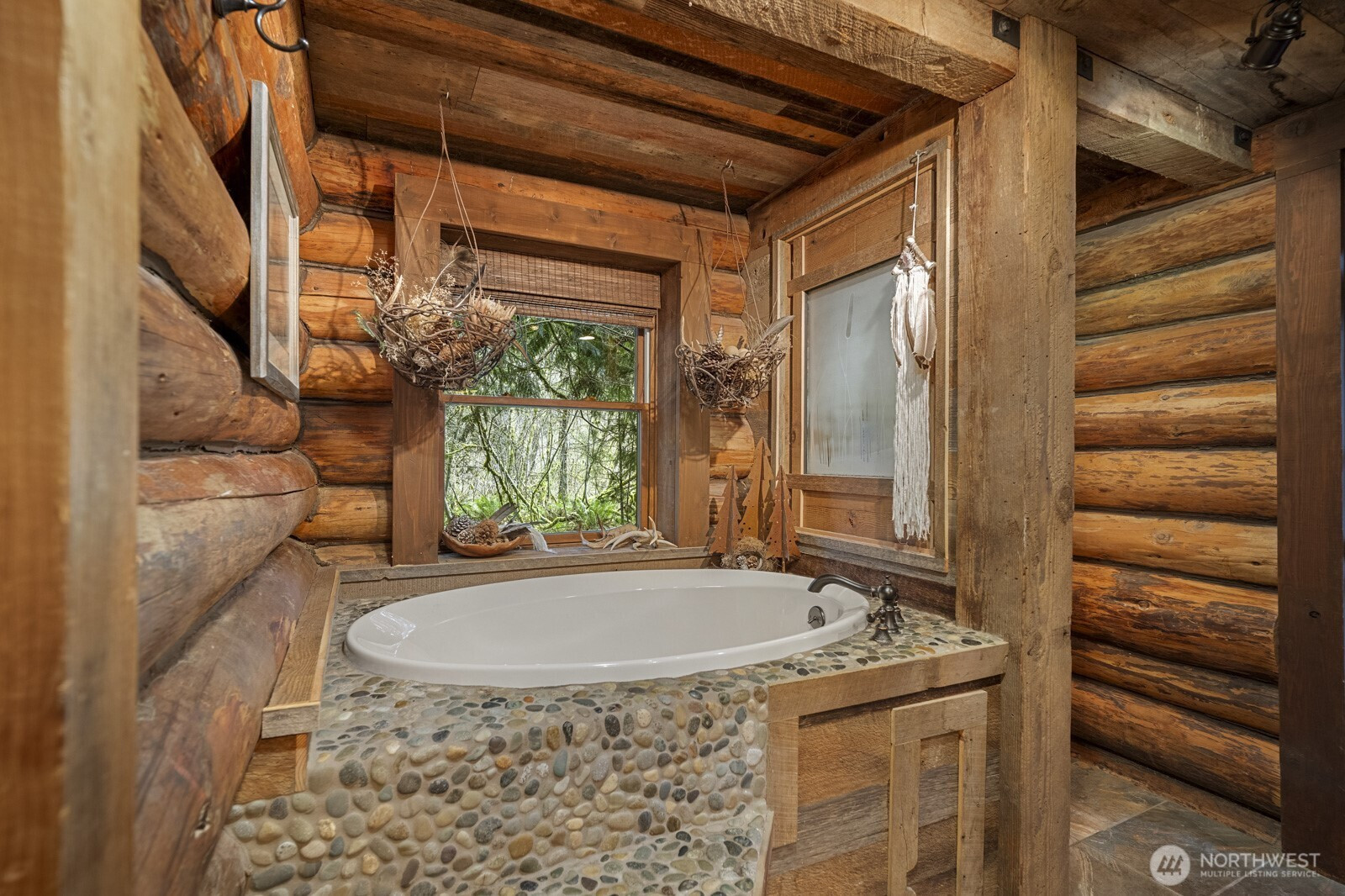 Spacious log lodge–style home in Woodinville’s sought-after, gated Lake Tuck community. Set on a shy 5-acre parcel, this exceptional property offers remarkable privacy and an array of outdoor amenities. Covered deck with fireplace overlooks a serene wooded setting, while wrap-around decks invite year-round entertaining and relaxation. Wander the grounds to discover waterfalls and pond with charming gazebo, vineyard and gardens illuminated by enchanting night lighting. A sport court is ideal for pickleball. Unwind in the hot tub or lounge in the detached tiny home. Inside, vaulted gathering spaces showcase reclaimed wood floors and inviting fireplaces that create warmth and character. A loft / office provides a quiet retreat, while the open lower level offers versatile flex spaces for recreation, media, or hobbies. Enjoy the benefits of a private lake community and the highly rated Northshore School District, all within convenient reach of the Eastside. A rare opportunity for peaceful living without sacrificing proximity to city amenities.