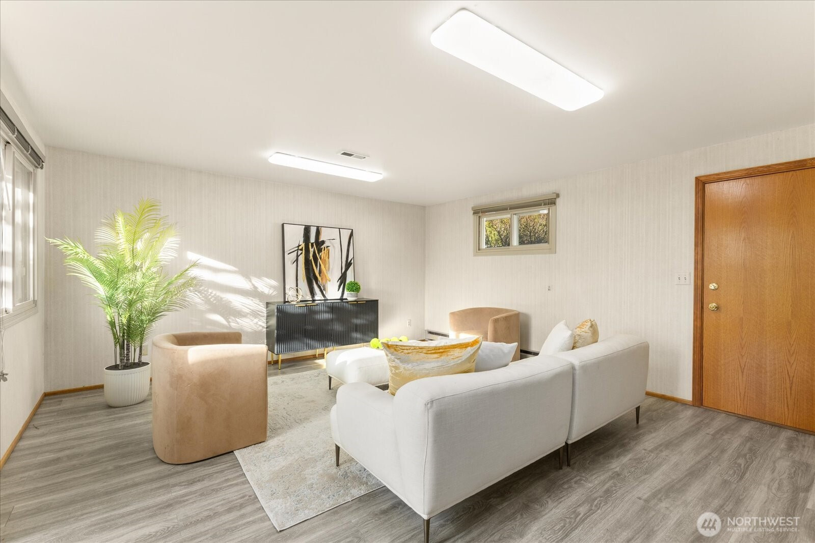 Welcome home to this spacious mid-century rambler offering comfort, flexibility, and an unbeatable location. This 1,780 sq ft home features 4 bedrooms and 1.75 bathrooms, plus a generous rec room that can easily serve as a 5th bedroom, home office, or bonus space. Situated on a large 8,800 sq ft lot, the home boasts beautiful hardwood floors in the living and dining rooms. A newer 5-year-old roof provides peace of mind, while the fully fenced backyard is perfect for play, entertaining, or gardening.Enjoy the convenience of a 2-car garage with plenty of additional off-street parking. Ideally located with easy access the light rail, YMCA, and just minutes from SeaTac Airport—this home offers both comfort and commuter-friendly convenience.