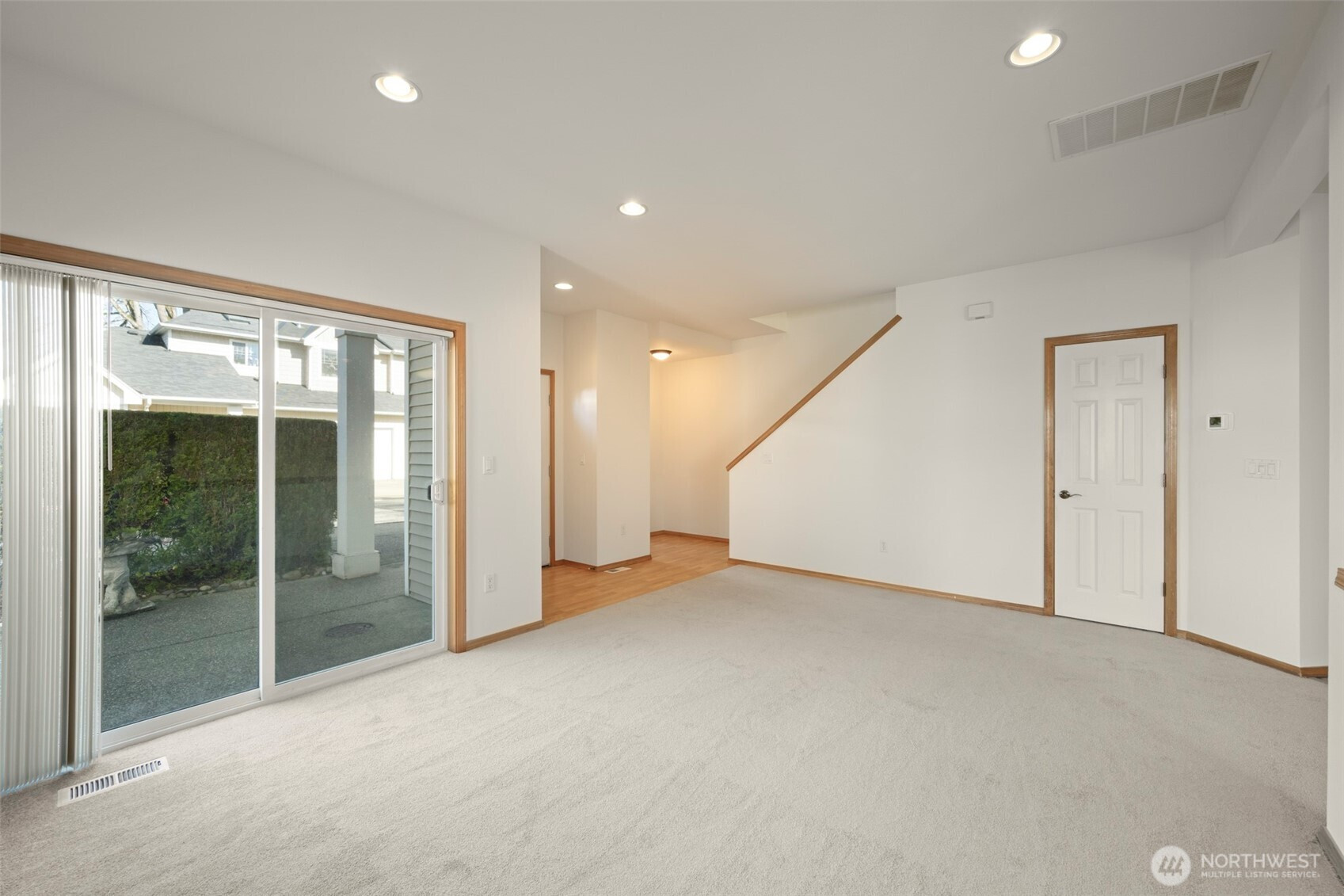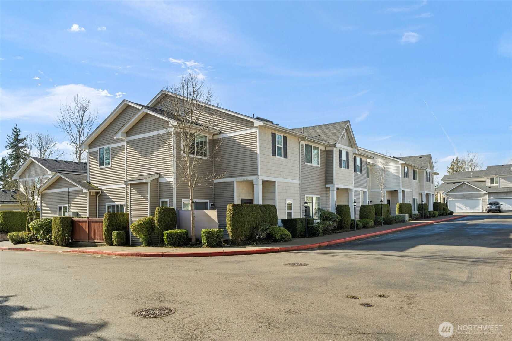 Brand new carpet and fresh paint throughout this light, bright and airy, end unit townhome!! Main level features soaring ceiling, tons of natural light from 2 sliders, open concept kitchen with eating bar, living room with gas fireplace, and darling powder room. Upper-level offers primary bedroom with vaulted ceiling, double closets, fantastic natural light and 3/4 bath. Also upstairs is a little reading nook. spot for a desk, or??? plus 2 additional bedrooms, one with a walk-in closet, the other with corner window, full bathroom and laundry. Enjoy outdoor living on the 2 separate patios, walking the community sidewalks, at the picnic area, toy structure and sport court. Convenient location with easy access to shopping, restaurants and freeways!