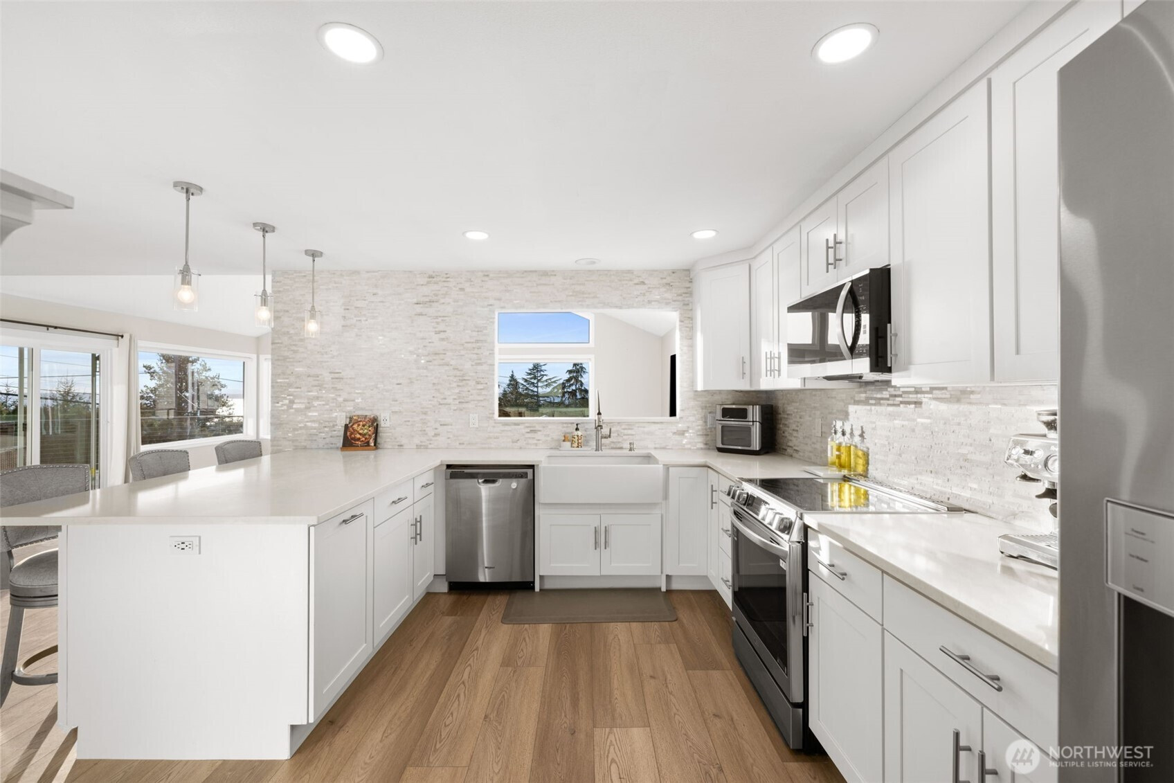 Nestled in the heart of the coveted Richmond Beach neighborhood, this beautifully remodeled home is the perfect blend of modern upgrades and timeless charm. Every detail has been thoughtfully updated, creating a space that’s as functional as it is stunning. The open-concept design flows effortlessly, leading you to a large entertaining deck where you’ll be captivated by breathtaking views—perfect for hosting gatherings or soaking in serene Puget Sound views. Located just moments from both Richmond Beach Park and Edmonds Beach Park, you’ll have the best of outdoor living at your fingertips. Stroll along the beach, enjoy the lush green spaces, or simply take in the fresh coastal air. This prime location offers the perfect balance of peaceful retreat and convenient access to nearby amenities. Whether you're relaxing on the expansive deck, reveling in the gorgeous views, or exploring the vibrant Richmond Beach community, this home delivers an unmatched lifestyle opportunity. Don't miss a chance to own a place to take in the most amazing sunsets year-round while barbecuing or having the drink of your choice. This is truly an amazing home with views that will surely captivate you. Please don't miss the virtual tour with 3D floor plans and video!