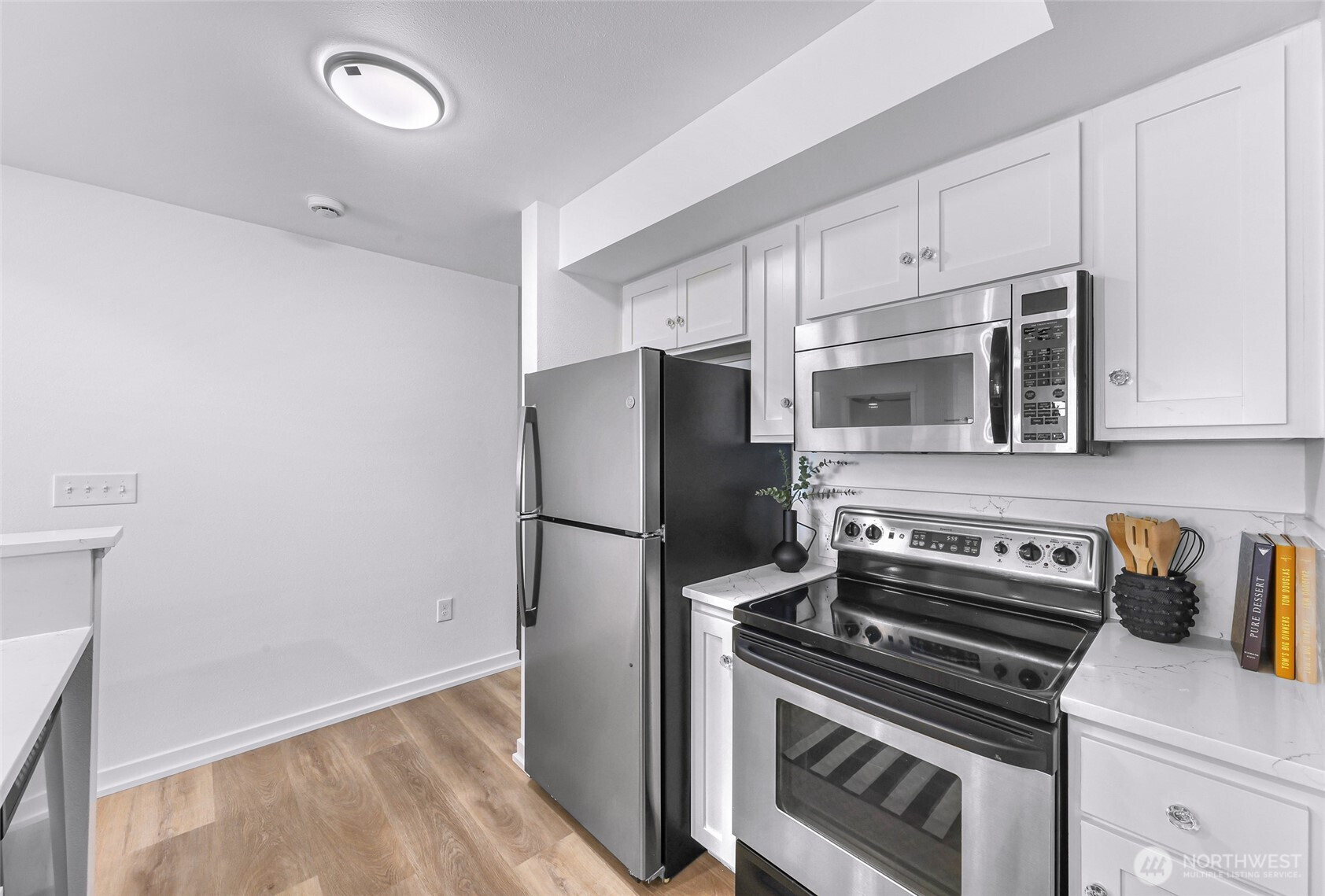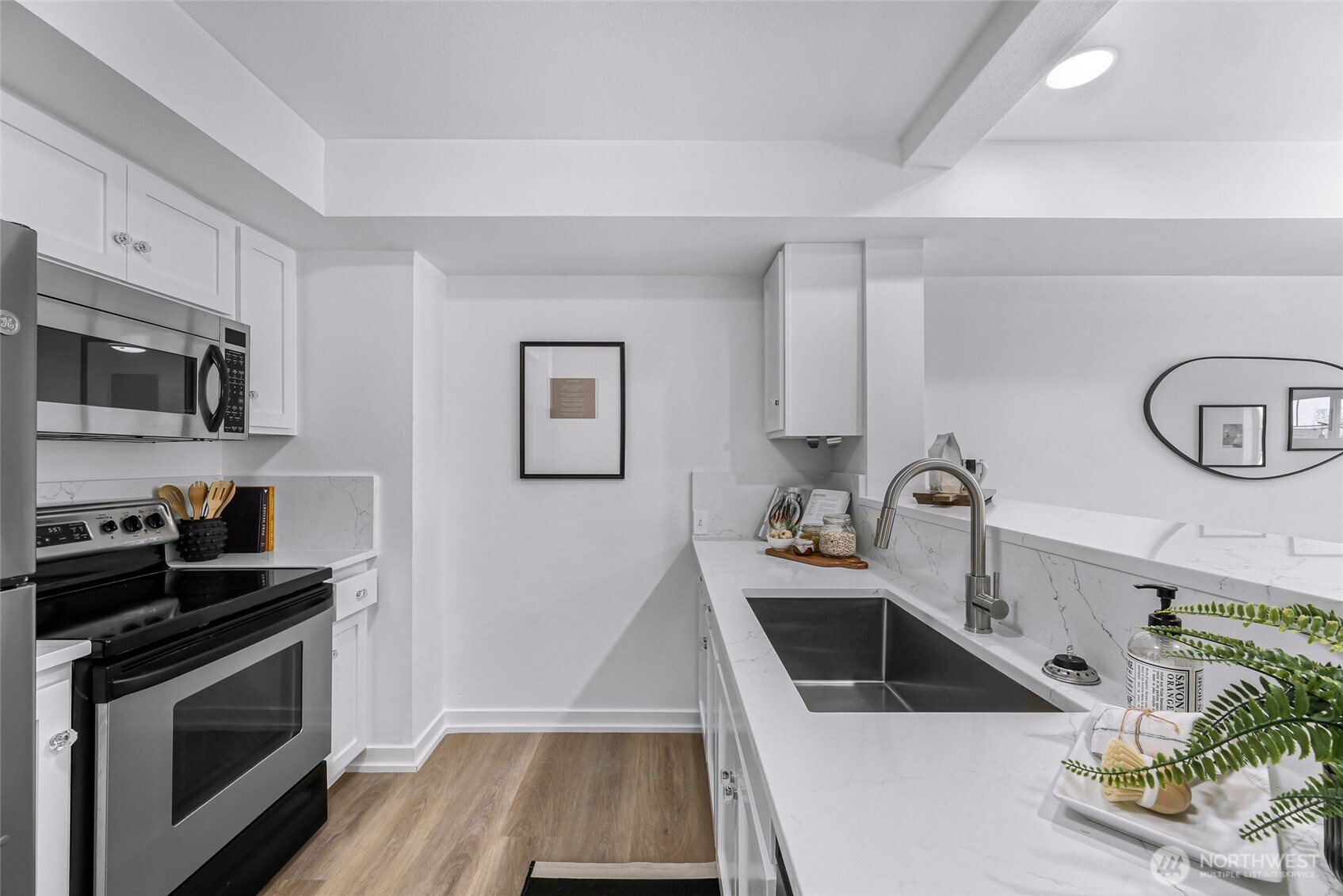 Live the best of Queen Anne at The Willows—now beautifully refreshed and truly move-in ready. This light-filled home features brand new LVP flooring, updated countertops, modern lighting, and fresh paint throughout, giving it a clean, contemporary feel. The open-concept layout offers spacious living & dining areas, a generous bedroom with great closet space, and in-unit laundry. Enjoy Olympic Mountain views right from your living room. Set in the heart of West Queen Anne, you’re just minutes to Ken’s Market, Whole Foods Market, and neighborhood favorites along Queen Anne Avenue North. Spend weekends at Kerry Park soaking in iconic skyline views or exploring nearby Discovery Park. Easy access to downtown, Amazon, Google, and transit via the #1 bus just a block away. Pet-friendly building with secure parking, private storage, low HOA dues, plus on-site perks including a spa, coffee shop, and café. Turnkey, stylish, and ideally located—this is Queen Anne living at its best.