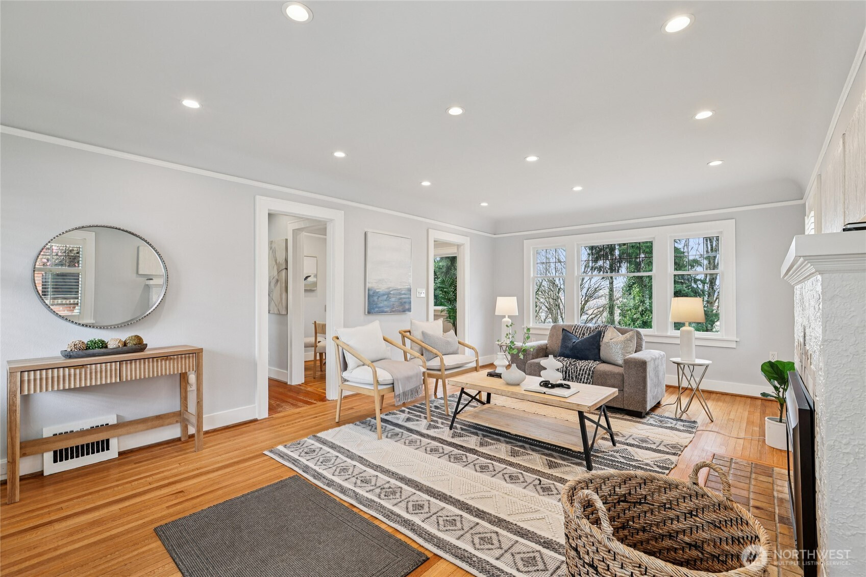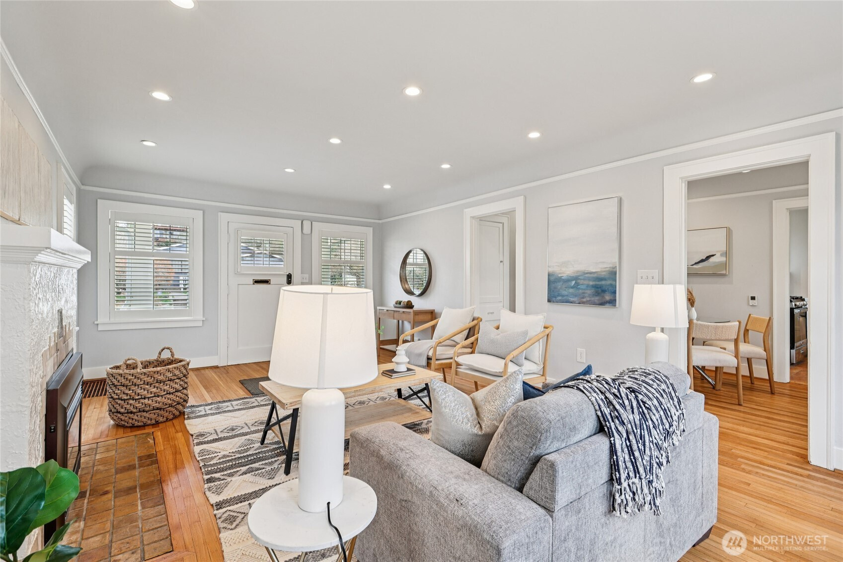 Perched along a tranquil green belt, this Craftsman bungalow blends timeless character with thoughtful modern updates. Enjoy sweeping views of the Olympic Mountains and glimpses of Seattle’s stadiums, all while being just minutes from the vibrant dining scene of Beacon Hill, plus convenient light rail and bus connections with quick access to I-5 and I-90. Inside, original charm shines through coved ceilings, picture rail molding, rich hardwood floors, and classic windows, complemented by a cozy gas fireplace. The fully updated kitchen features new countertops, custom hardwood cabinetry, and upgraded appliances. The remodeled daylight basement offers a private retreat with a spacious suite, walk-in closet, and a beautifully renovated bathroom with a walk-in shower. Recent 2025 upgrades include a new composite roof with warranty, new gutters, fresh exterior paint, and reconstructed entry pillars. Modern systems such as a tankless gas water heater, forced-air heat pump with AC, updated electrical, new sewer connection, and reinforced foundation piles provide peace of mind. Outdoors, a paved patio invites relaxation with serene green belt views, plus a versatile shed or workshop adds extra flexibility. Welcome home to your private city escape!