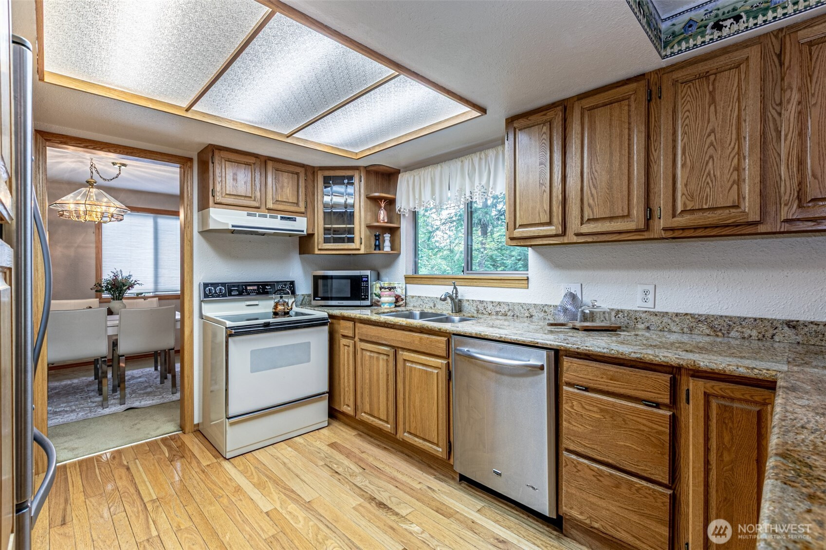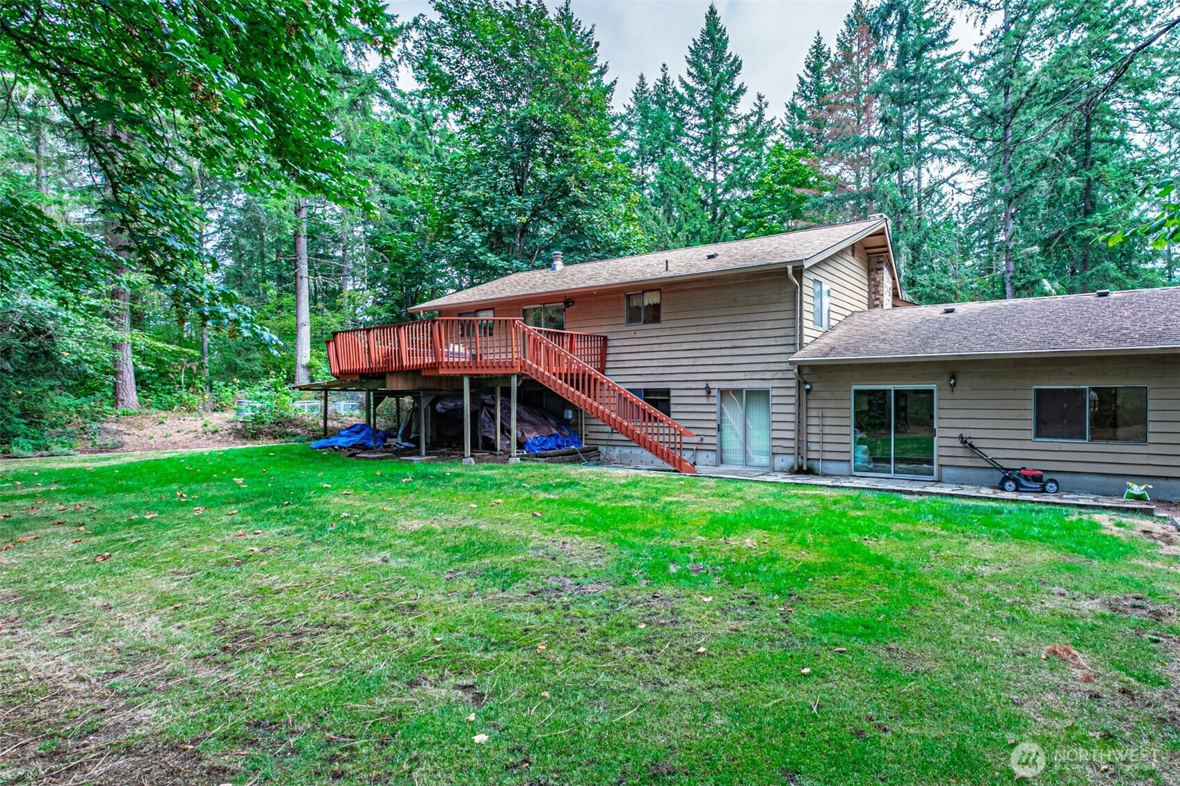 If you’ve been searching for the perfect property that combines privacy, space, and endless storage for all your toys—RV, boat, cars, motorcycles, tools—look no further! This 2,300 sq. ft. home is nestled on 2.34 acres and offers everything you’ve been waiting for. Inside, you’ll find 3 spacious bedrooms, a soaring wood-vaulted ceiling that crowns the living, the opens to the dining room, plus a bright primary ensuite retreat. The lower level expands your options with a second kitchenette, bonus room, and two additional bedrooms—perfect for multi-generational living. Step outside to an oversized wraparound deck with a hot tub and enjoy the flat, fully fenced backyard—ideal for gatherings, play, or simply soaking in your private oasis.