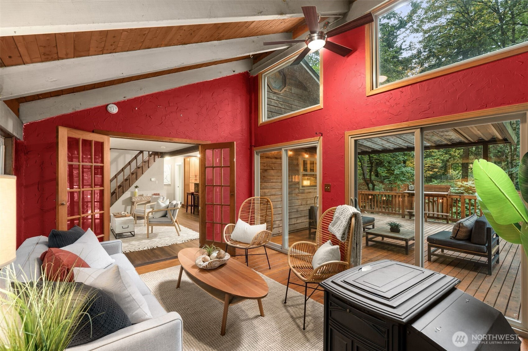 Charming 3 bedroom Craftsman nestled on a fully fenced in lot just across the road from Shadow Lake! This thoughtfully designed home offers both privacy & endless opportunity. The warm finishes & open living spaces flow seamlessly highlighting a light-filled sunroom, two cozy fireplaces, generously sized bedrooms, a large primary suite with ensuite bath & flex spaces throughout, perfect for a home office & bonus room! Immerse yourself in expansive outdoor living with the spacious covered deck, lower porch & firepit area. Detached two car garage & outdoor shed provide great storage! Enjoy private access to swimming, fishing & kayaking right across the street for just $25/year, bringing lakeside living right to your doorstep. Welcome Home!
