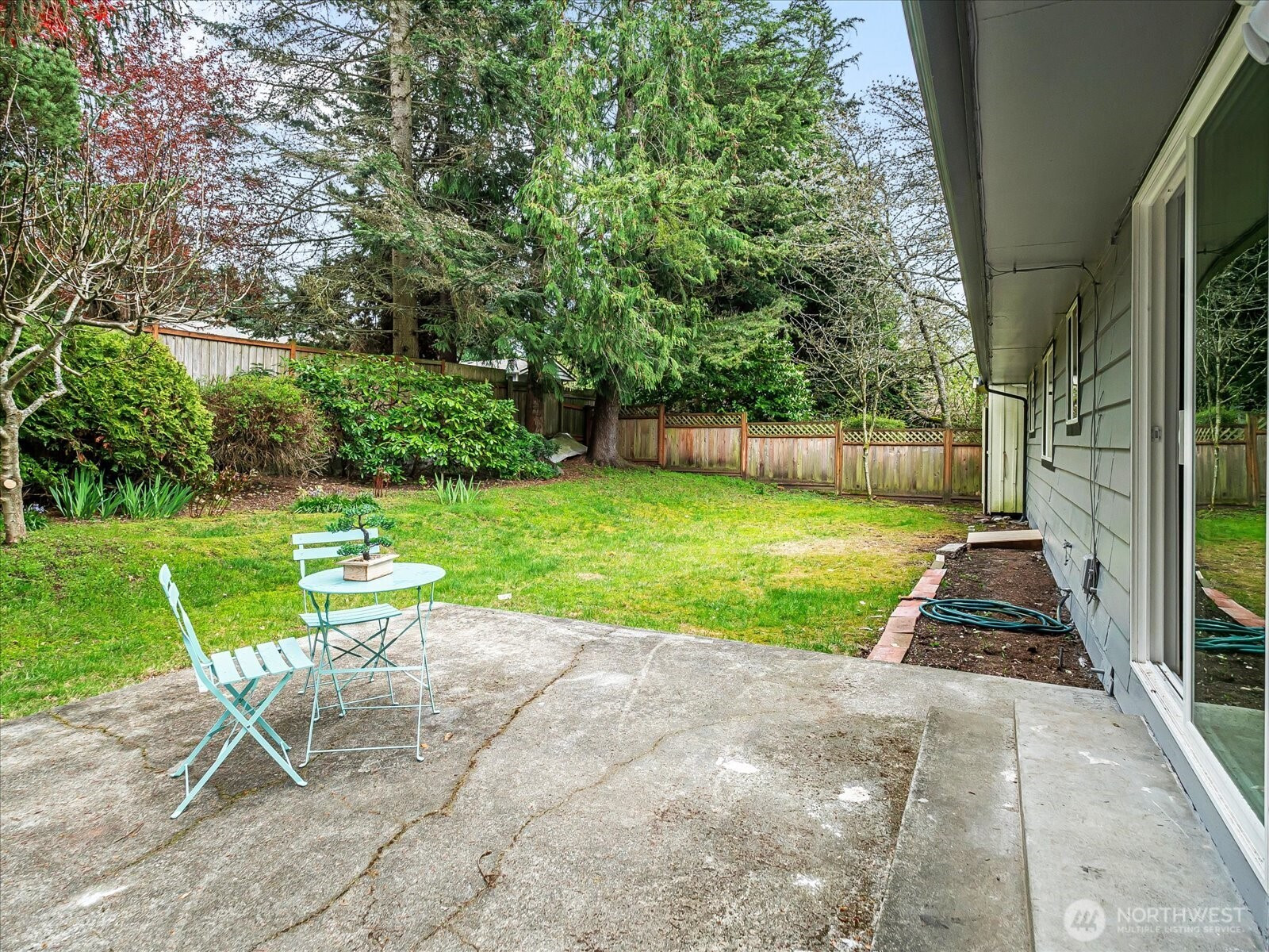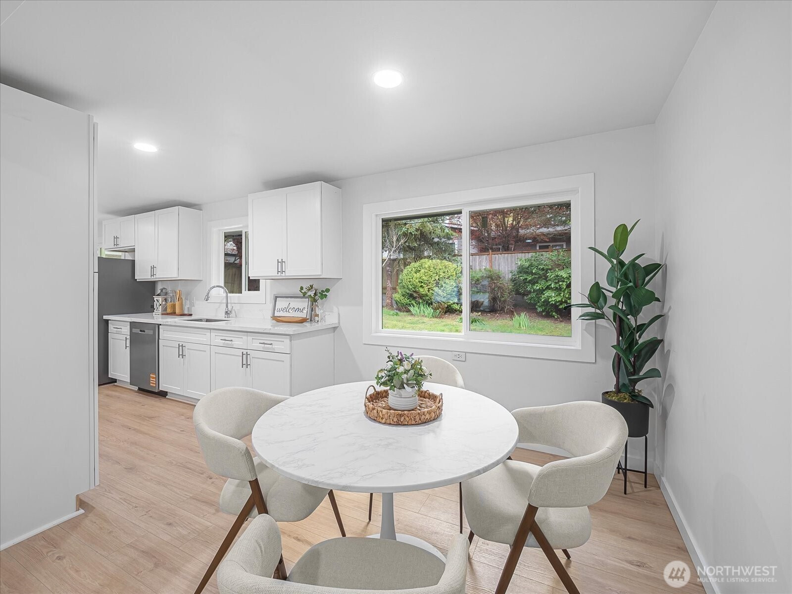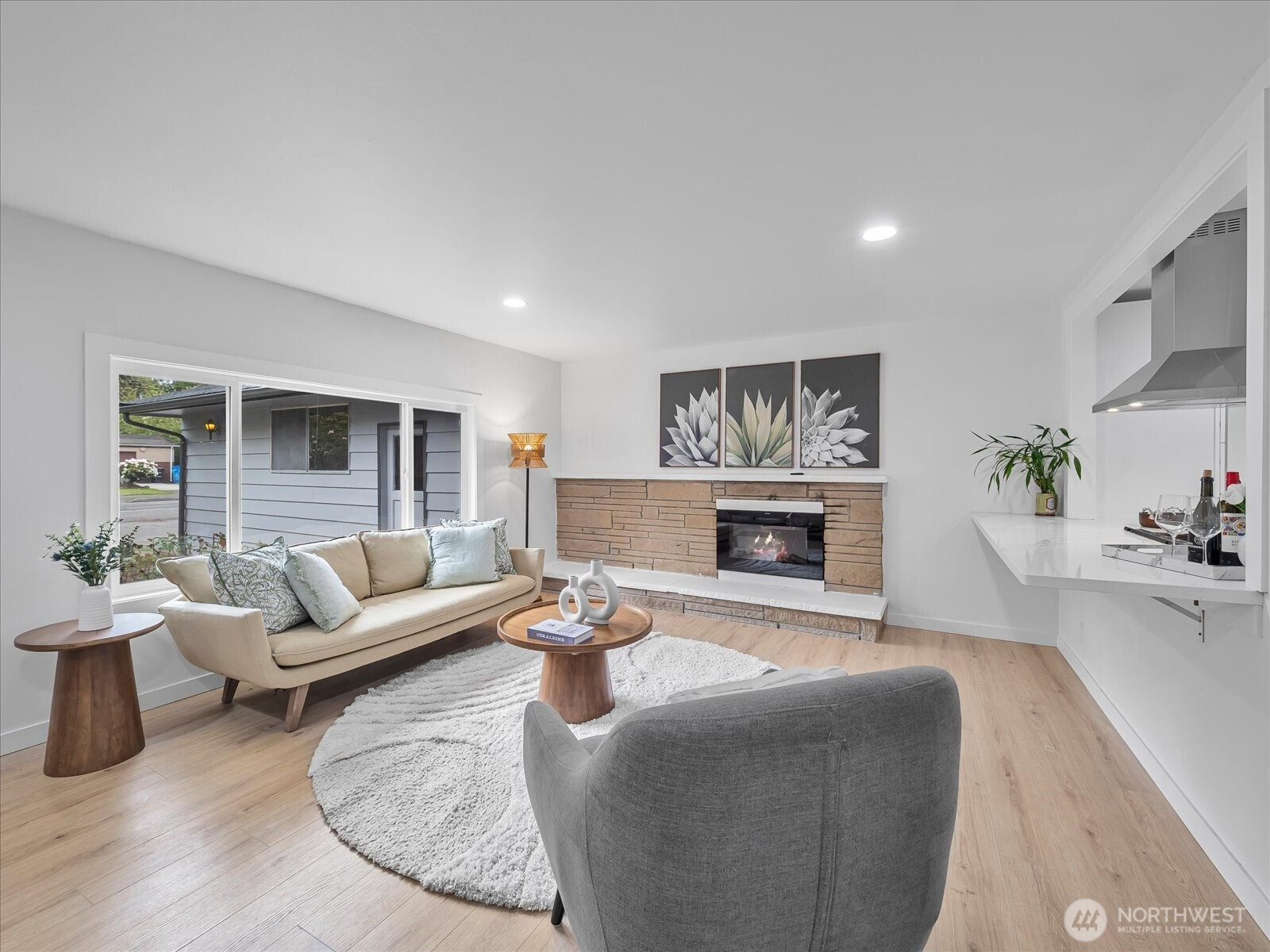 Charming and move-in ready, this remodeled one story Shoreline home blends comfort and simplicity. Inside, you'll find a thoughtful layout with 3 bedrooms, laminate flooring throughout, can lighting, and a warm stone fireplace that adds character to the main living space. The kitchen features newer stainless appliances and easy access to the backyard patio. Outside, the fully fenced backyard offers plenty of room to spread out, garden, or unwind. Attached 2-car garage for convenience. Great location close to parks, shopping, dining, light rail, and highly rated schools. Don't miss out on this fantastic home!