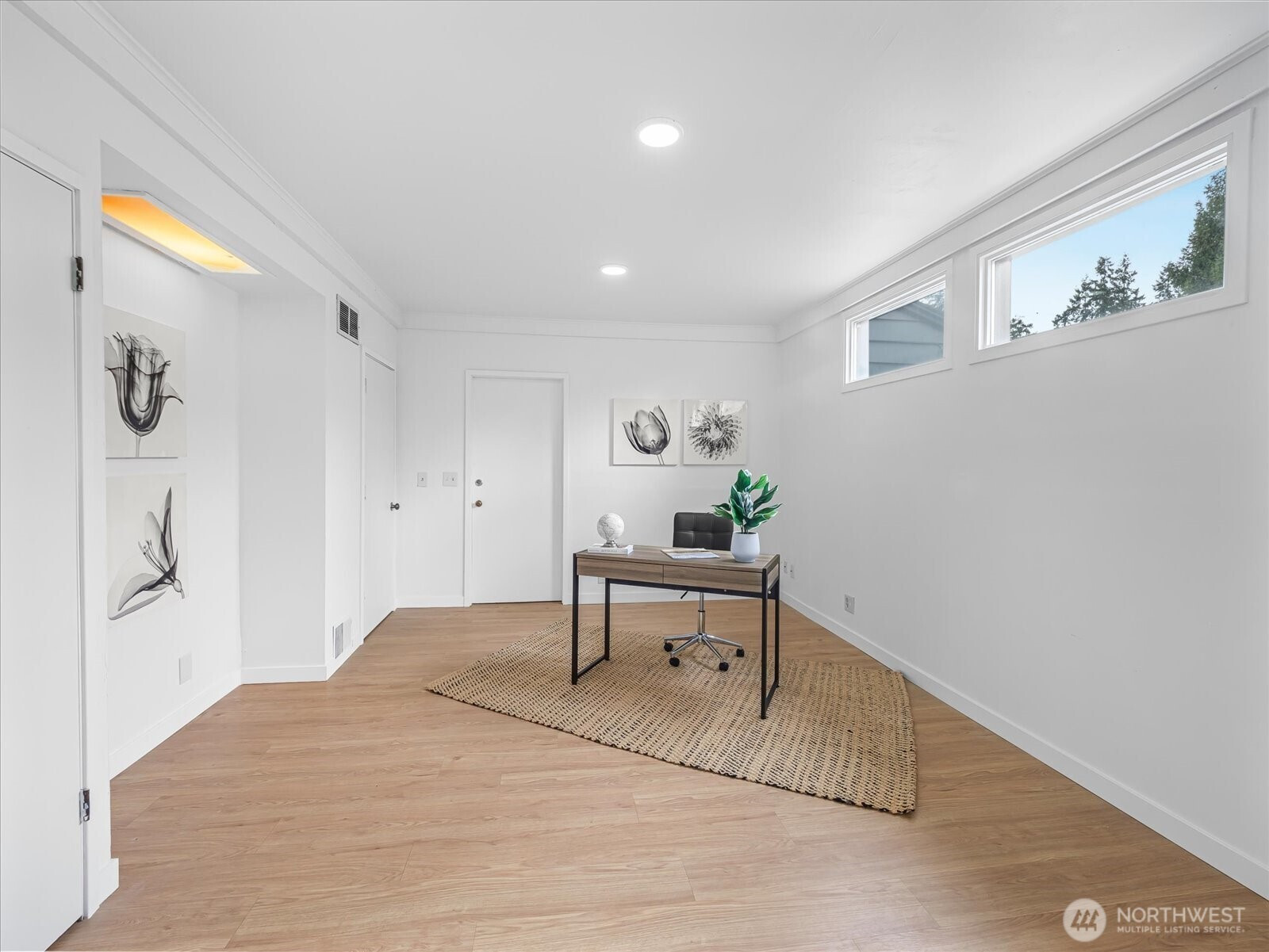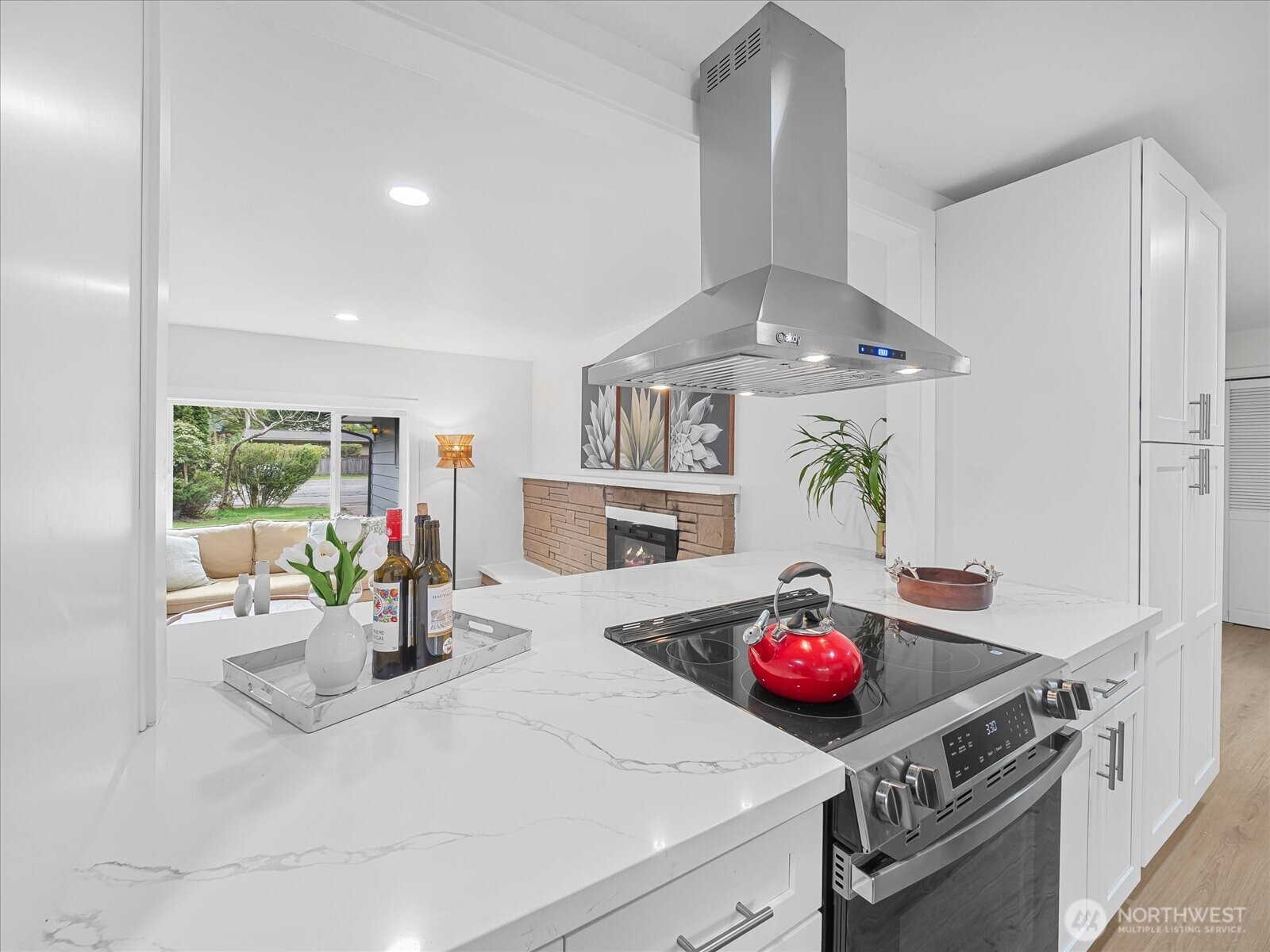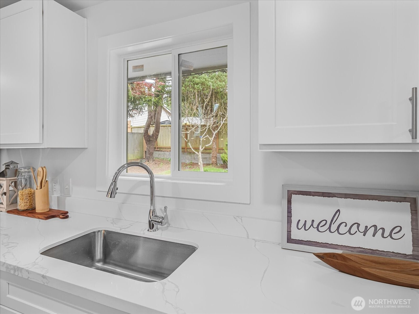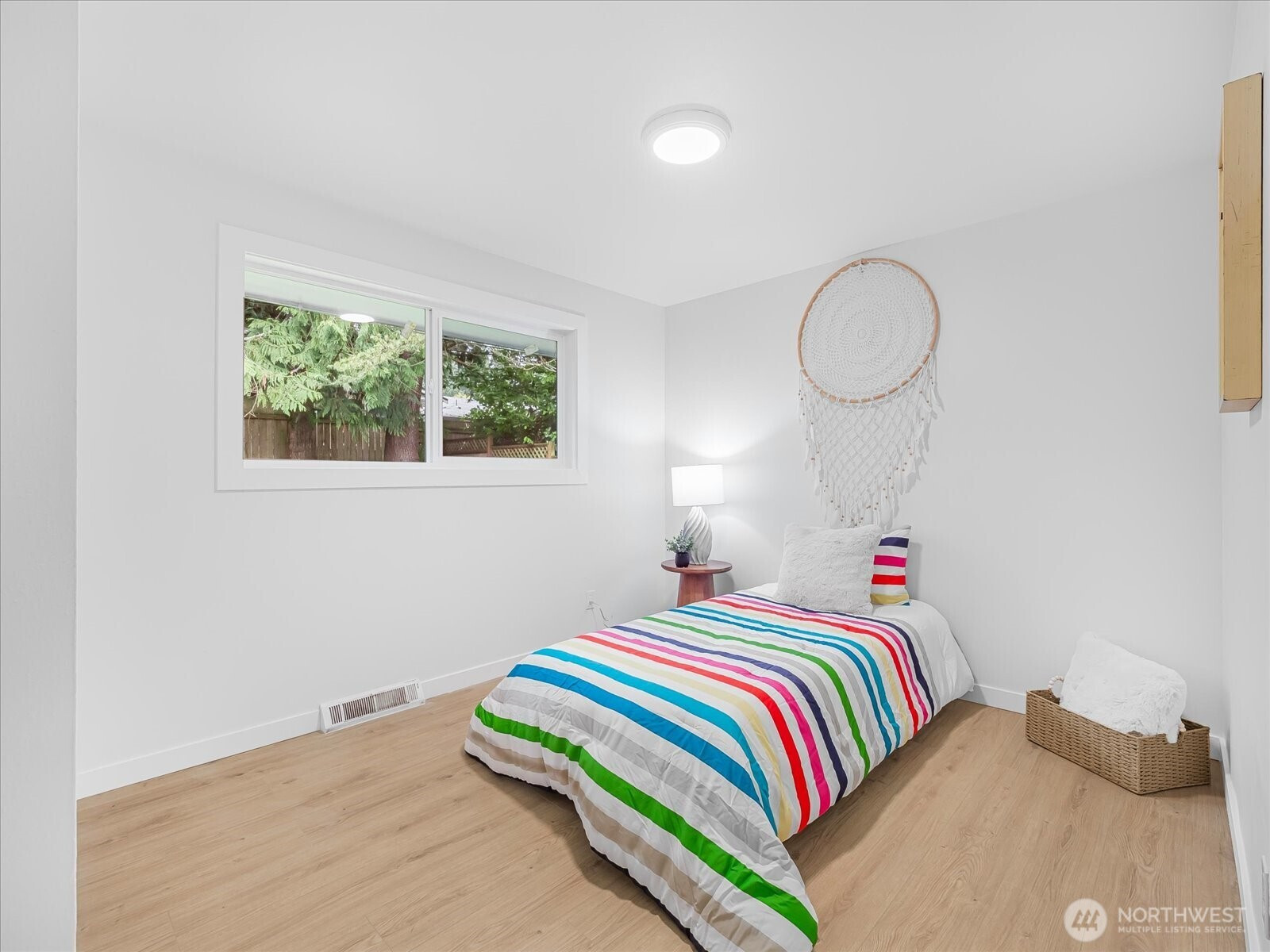 Charming and move-in ready, this remodeled one story Shoreline home blends comfort and simplicity. Inside, you'll find a thoughtful layout with 3 bedrooms, laminate flooring throughout, can lighting, and a warm stone fireplace that adds character to the main living space. The kitchen features newer stainless appliances and easy access to the backyard patio. Outside, the fully fenced backyard offers plenty of room to spread out, garden, or unwind. Attached 2-car garage for convenience. Great location close to parks, shopping, dining, light rail, and highly rated schools. Don't miss out on this fantastic home!