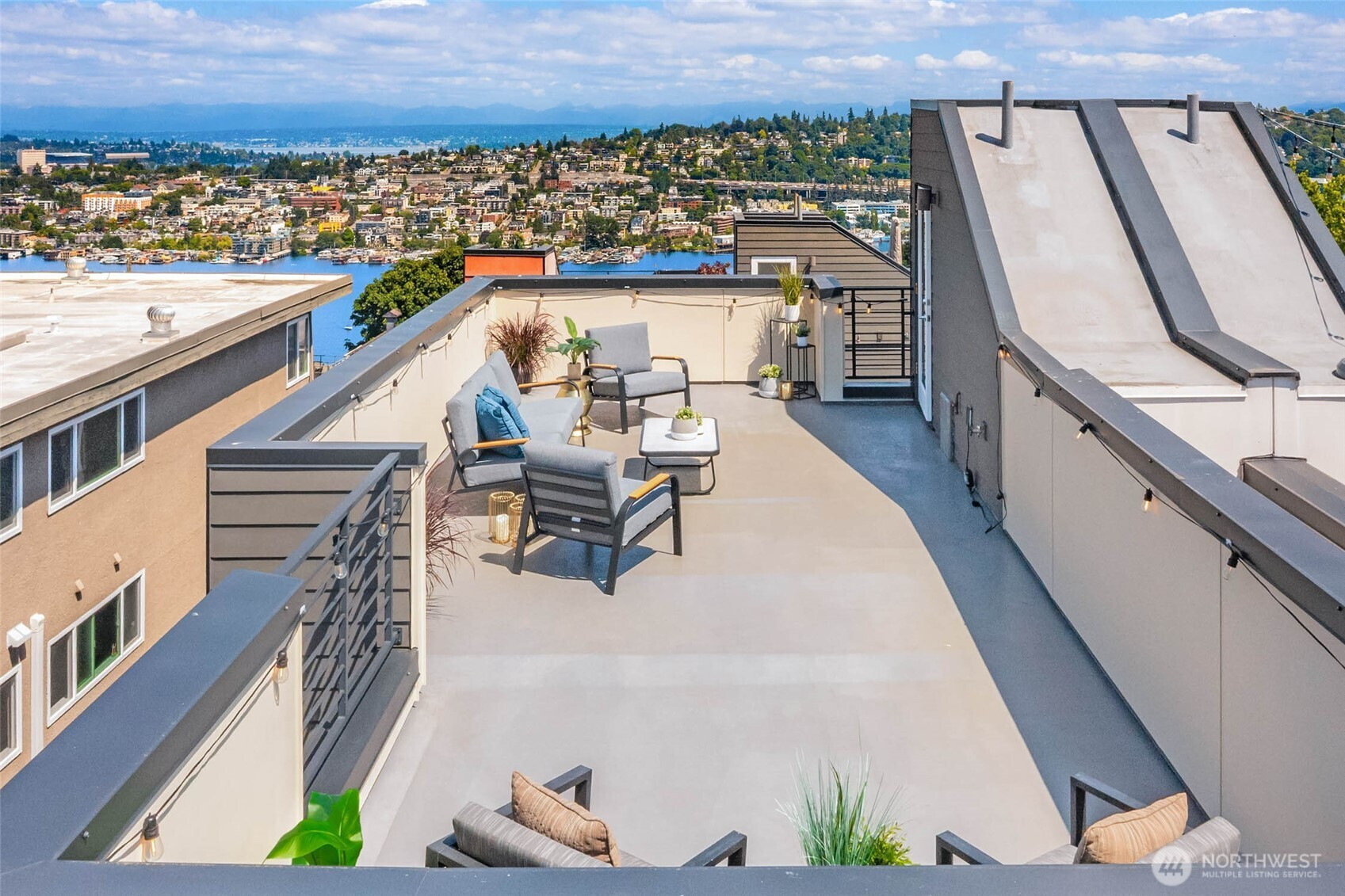 With NO HOA, a rare oversized PRIVATE garage, SWEEPING VIEWS from rooftop deck, IDEAL location, terrific layout, both short & long term rentals allowed, and pristine finishes throughout- this can’t be beat! Three bed/ three bath END-UNIT townhome features primary suite & second bed/bath on the same floor, PLUS a flexible ensuite bedroom on the lower level- great for WFH or guest space. Spectacular views of Lake Union, Downtown & Cascade Mountains from the expansive rooftop deck! High ceilings & huge picture windows with custom blinds make it light & bright. SPACIOUS kitchen opens to large living & dining making entertaining a breeze! Top of Queen Anne Hill makes it easily walkable to cafes, pubs, parks, schools, shopping, & an easy commute!