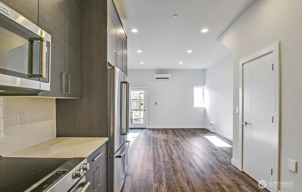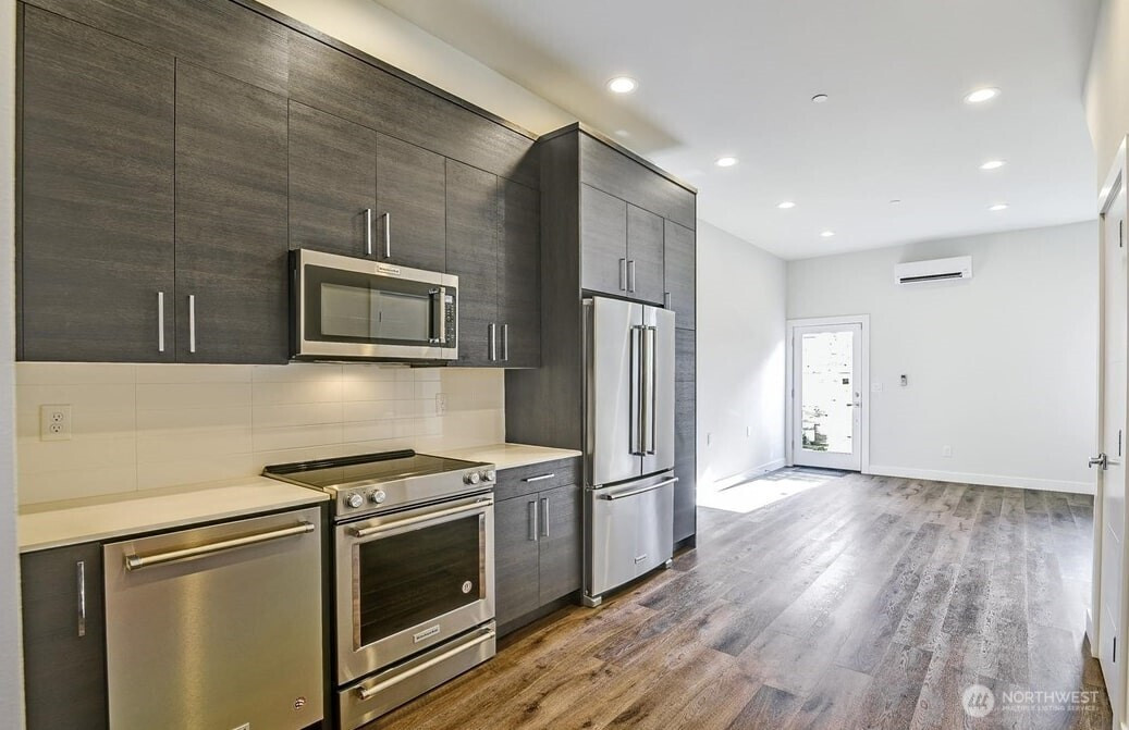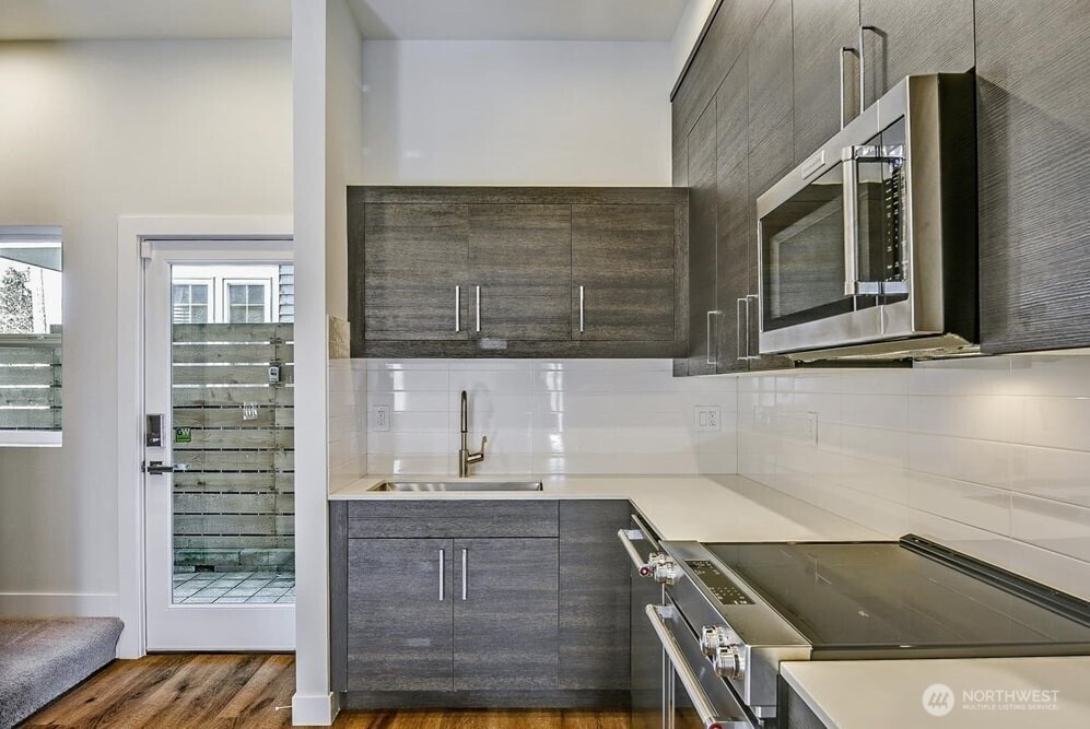 Discover modern living at Rainier View Townhomes, complete with a private rooftop deck and just steps from the future SideOut Pickleball, Grand Street Commons, and Judkins Park Light Rail Station. This sun-drenched home offers a flexible floor plan—ideal for a home office or guest room. The stylish kitchen showcases white granite countertops, stainless steel appliances, and an open concept design perfect for entertaining. Relax in the luxurious primary suite featuring a spa-like bath, then unwind with breathtaking sunsets from your rooftop retreat. Everyday conveniences, dining, and coffee shops are just around the corner, while downtown is only a 10-minute Light Rail ride away.