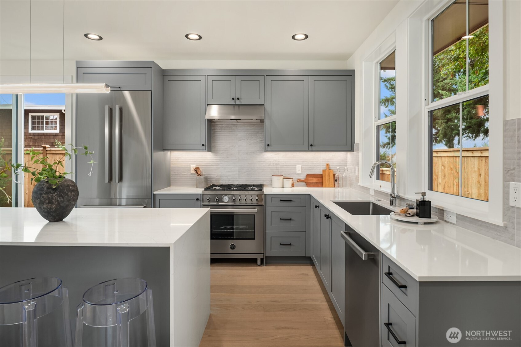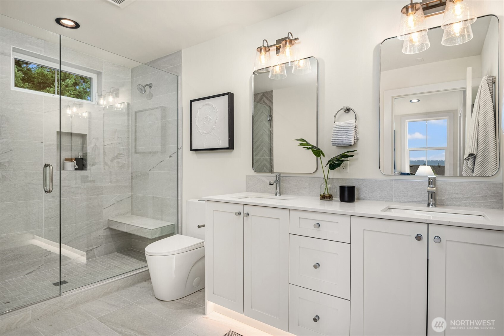 Nestled on a quiet dead-end street in the coveted Norkirk community, this captivating new construction home by Prestigious Builds boasts a warm & inviting interior loaded w/chic designer finishes. Convenient floorplan features open concept gathering spaces, chef’s epicurean kitchen, stylish powder rm & spacious upper level providing 2BRs/2BAs. Thoughtfully crafted layout includes luxurious primary suite w/westerly views of Lake WA & stunning sunsets, dedicated laundry rm & rare 2-car tandem parking. Sought-after East of Market location in one of the premier communities on the entire Eastside: just steps from incredible parks & award-winning Lake WA schools, w/easy access to vibrant shopping/dining, DT Kirkland waterfront & Juanita Village.