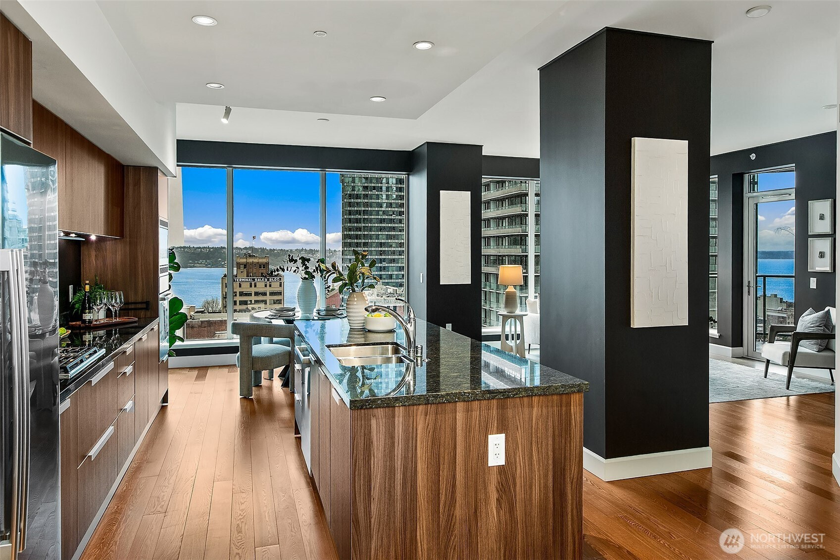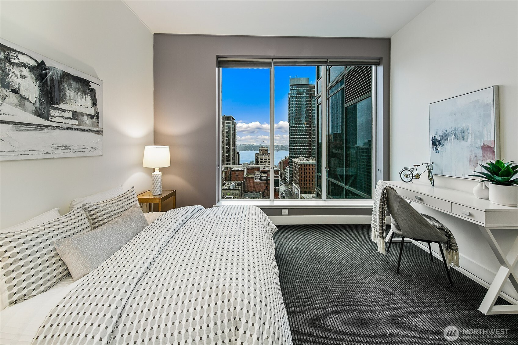 (503) 893-8874New Price and New Staging! Stunning 1607 sqft NW corner home, featuring views of Elliott Bay, Olympic mountains & Space Needle. Perched high above the city, this 17th floor home is an entertainers dream with an open floor plan, guests seamlessly flow from kitchen, dinning, living and to beautiful out door space, enjoy a coveted 220 sqft outdoor terrace(bbq's allowed!). Enjoy 10ft' floor to ceiling windows -flooded with natural light. Spacious living and oversized Bedrooms. Chef inspired kitchen,gracious gathering island, gas cooking & Pedini Italian cabinets. Unwind the day in your Spa like bath with oversized soaking tub. World-class amenities, 2 lap pools, theater room,wine cave, 24/7 concierge, 2 parking + storage.A/C, pet friendly.
