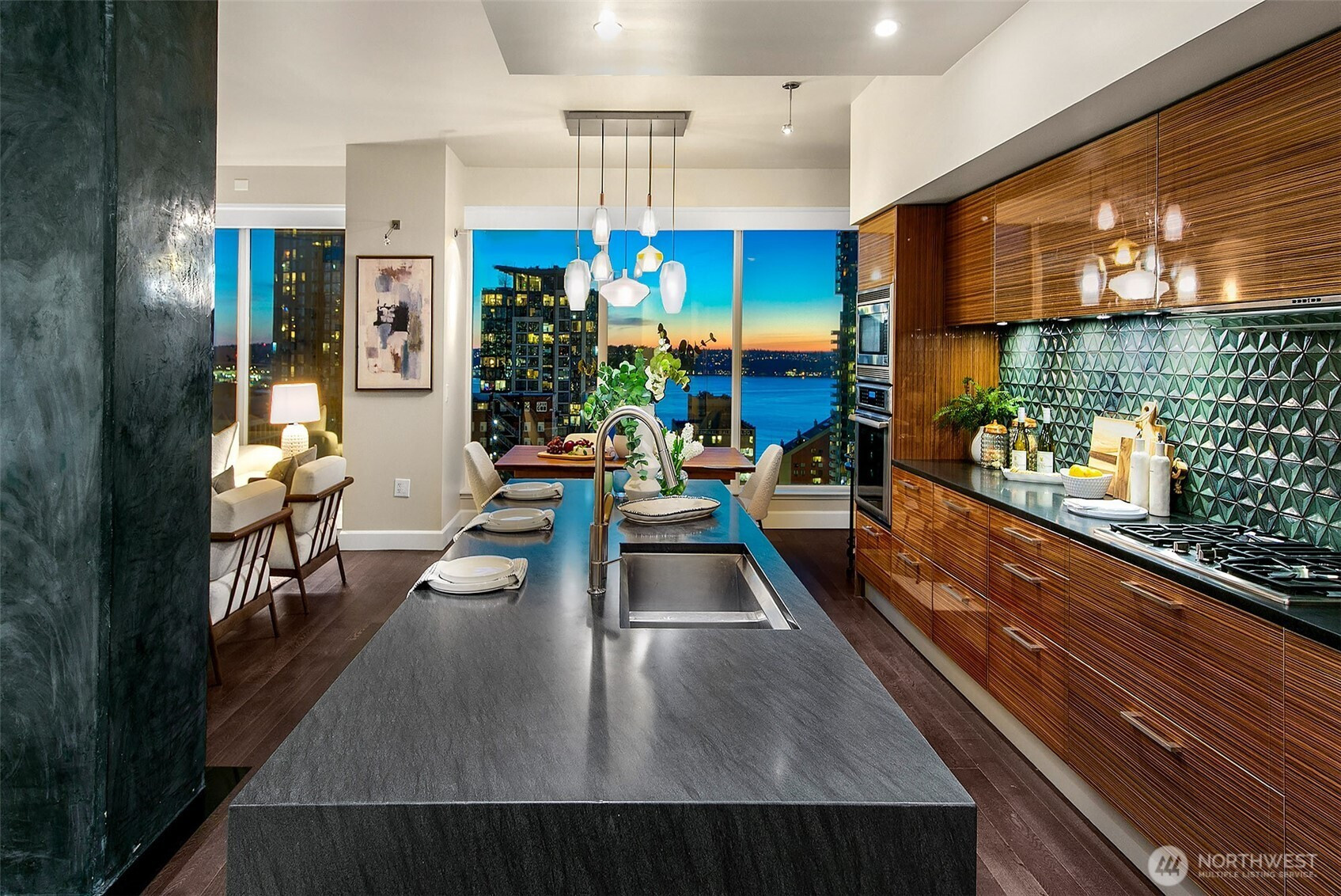 (503) 893-8874South Western water, city and Olympic mountain views. Experience Escala luxury living in this expansive oversized 2bedroom show stopper condo! This prestigious residence features amazing 220sqft outdoor space, garden & grill. Incredible value for the luxury buyer, featuring stunning designer upgrades- entry offers built in beverage cooler with custom counter and cabinets, milestone finished column, designer vestibule, modern light fixtures. Abundant light floods your home from soaring 10-foot floor-to-ceiling windows. Breathtaking night views- home embodies modern elegance. Step into a spacious, open-concept layout designed for both comfort & sophistication-perfect for entertaining or relaxing in style. Premium finishes, top-tier appliances &exclusive building amenities set a new standard for urbanliving. 2 premier parking + 1storage. World Class amenities, 2 pools, fitness center, spa, theater room, wine cave, 2 zoom meeting rooms, full caterer kitchen, owners event space hosts 120 guests! 24/7 concierge.