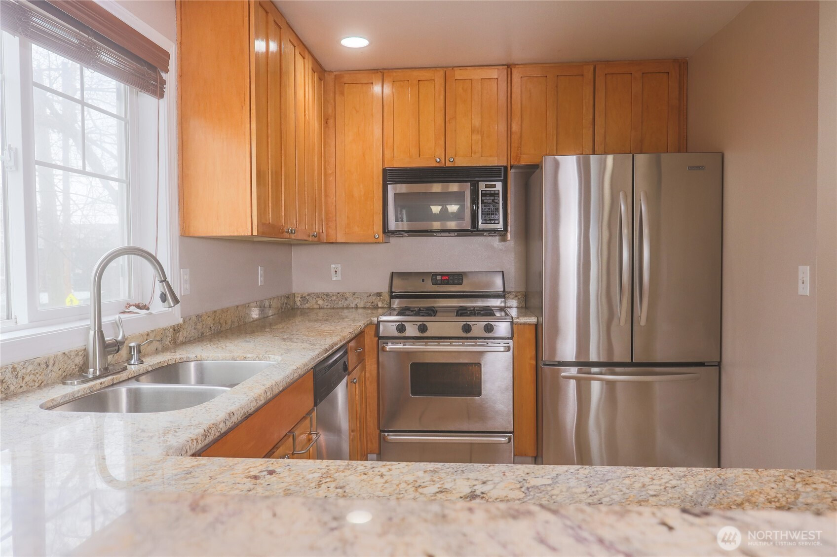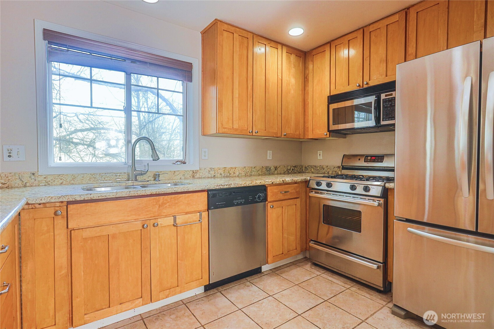 in the heart of the CD this 2br townhouse has two primary bedrooms with possible 3rd bedroom potential (buyer to verify) End unit with neighborhood view instead of neighbor windows. Prime location across from Chuck’s Hop Shop and just a few blocks from Central Cinema, PCC, and Trader Joe’s. Newer roof. Both bedrooms feature ensuite bathrooms. Convenient guest bathroom on main floor. Kitchen features new quartz counters, gas range and plenty of storage. Thoughtfully designed to live larger than expected, with most of the living space spread across just two floors for a spacious, comfortable flow. Gas forced-air furnace delivers fast, consistent heat on cold days. The garage has an egress window and may have potential as 3rd bedroom (buyer to verify) it was previously used by the owner as a recording studio and is configured as finished flex space with concrete floor and garage door intact (can still be used as garage). King County considers it part of the finished area. Walk Score 97, Bike Score 92.