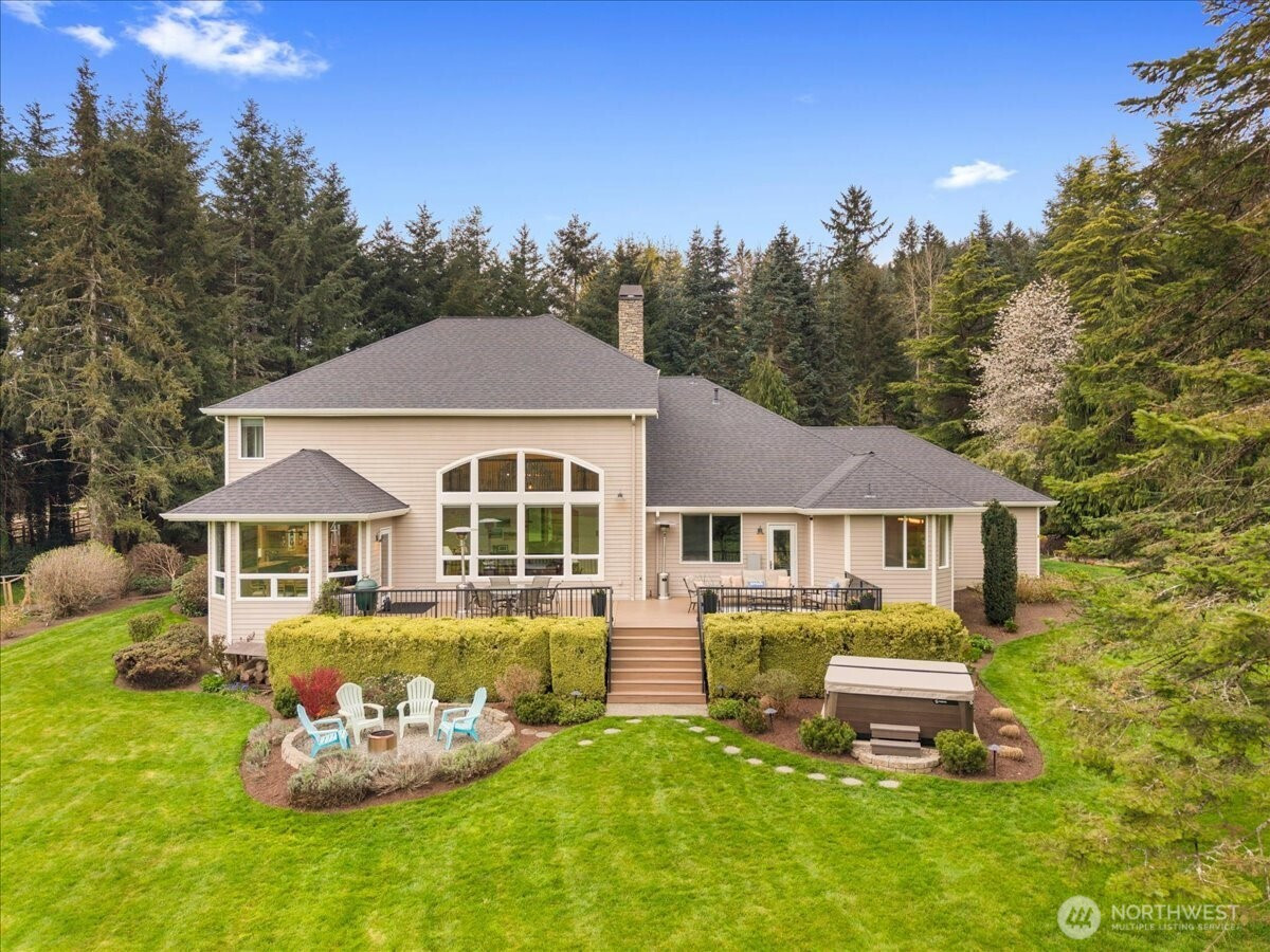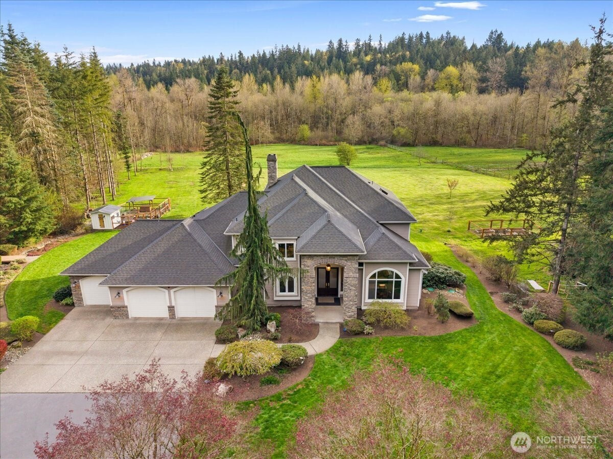 Peacefully set on 5+ acres in Issaquah’s coveted May Valley, this extraordinary estate offers refined living in a private, equestrian-adjacent setting. Featuring 4 bedrooms and 2.5 baths, the home showcases soaring ceilings, rich DuChâteau wood flooring, and breathtaking walls of windows on both levels—framing tranquil views of the surrounding landscape and filling the home with natural light.The designer kitchen is a true showpiece, appointed with Wolf & Sub-Zero appliances, gas range, built-in espresso machine, steam oven, and bespoke finishes—perfectly balancing everyday luxury and elevated entertaining. Expansive living spaces offer both comfort and sophistication, enhanced by gas fireplaces and seamless indoor-outdoor flow.Outdoors, discover a private sanctuary featuring an expansive deck, manicured grounds, fire pit, hot tub, and a professionally leveled back field—ideal for gatherings, recreation, or simply enjoying the peaceful setting. Surrounded by mature trees, open skies, and neighboring equestrian properties, the grounds offer unmatched serenity and beauty.The home features many updates—just to name a few: newer roof, HVAC, full plumbing re-pipe, updated electrical with EV charger, newer windows, and more! Smart home features include a Lutron lighting system.Minutes to Tiger, Cougar, and Squak Mountain trails, yet worlds away from the everyday. A rare opportunity to own a truly exceptional Northwest estate.