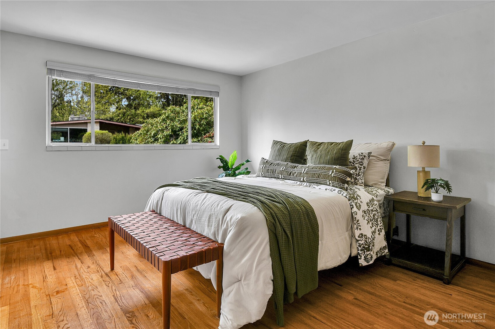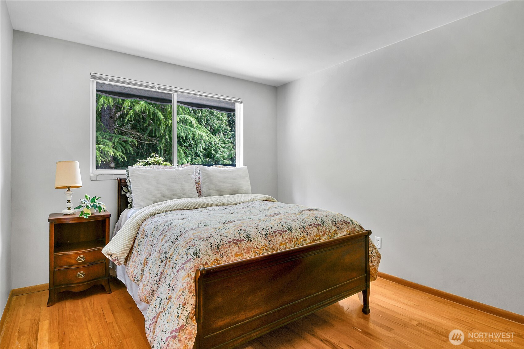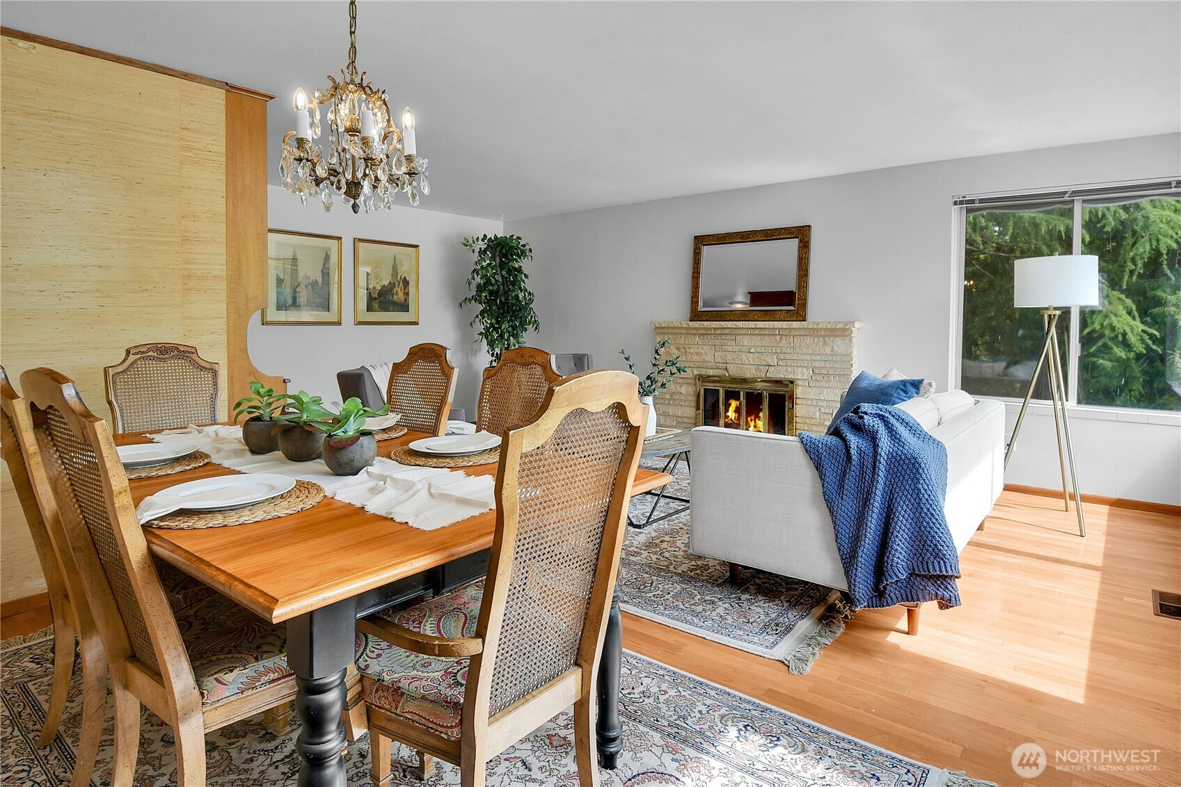 Located in the heart of Lake Forest Park this 4 bedroom, 3 bath home sits on a lovely 9200 square foot lot. The main level has 3 bedrooms. The primary bedroom has its own bathroom. There are hardwood floors throughout the main level. The heart of the home is the large kitchen that opens to a cozy family room with a gas fireplace and access to the side deck. The living room has walls of windows and a fireplace as well. A carpeted stairwell takes you down to the lower daylight level with a family room, fireplace, one large bedroom, utility room and access to the 2 car garage. Welcome home!