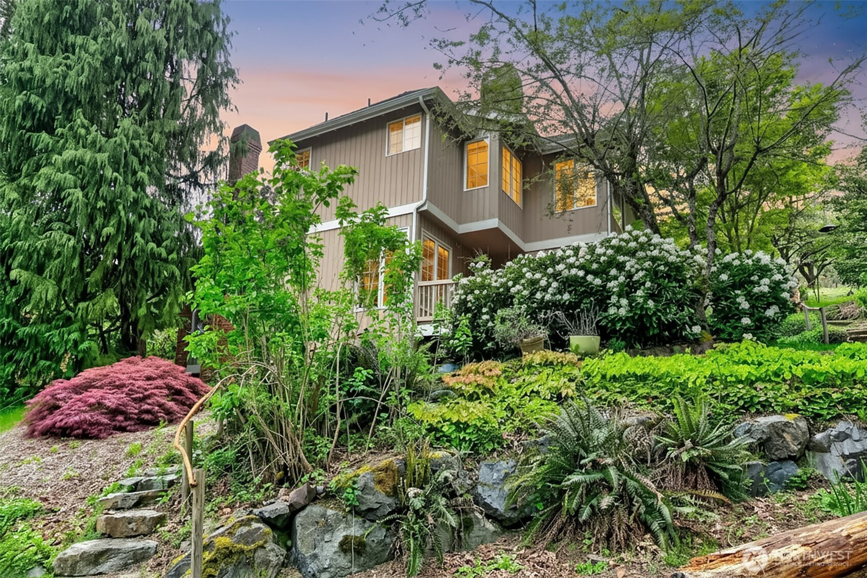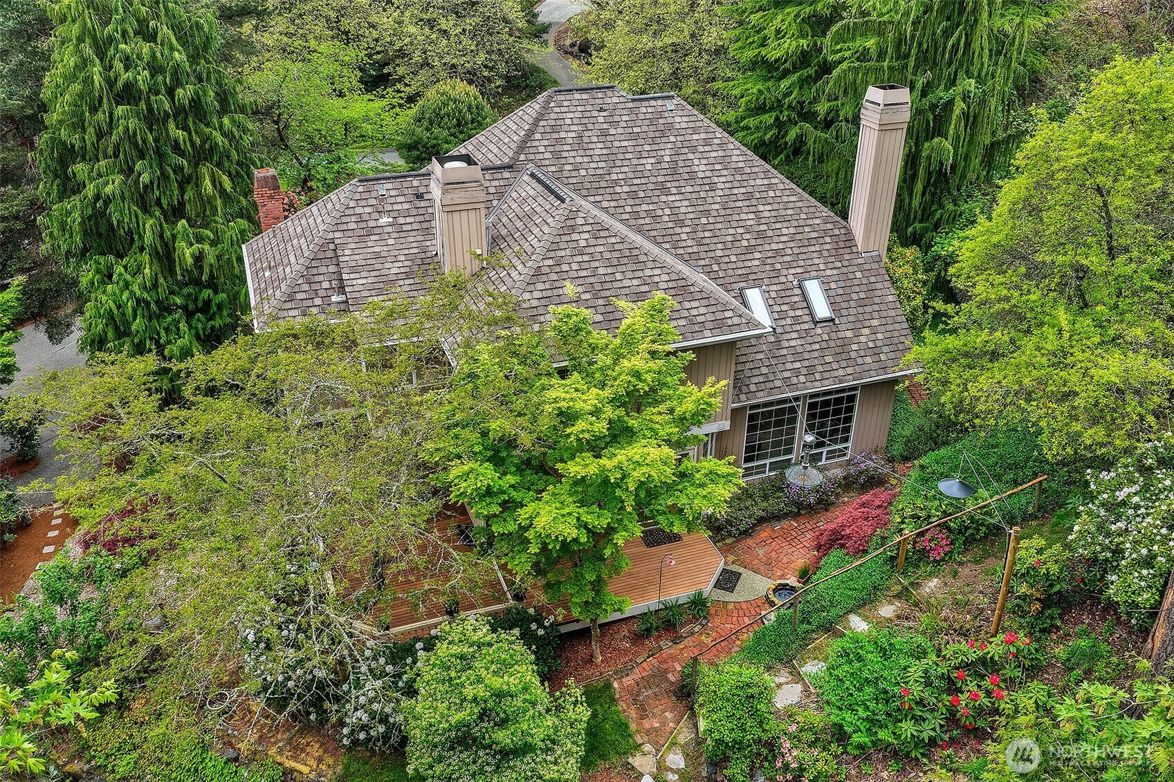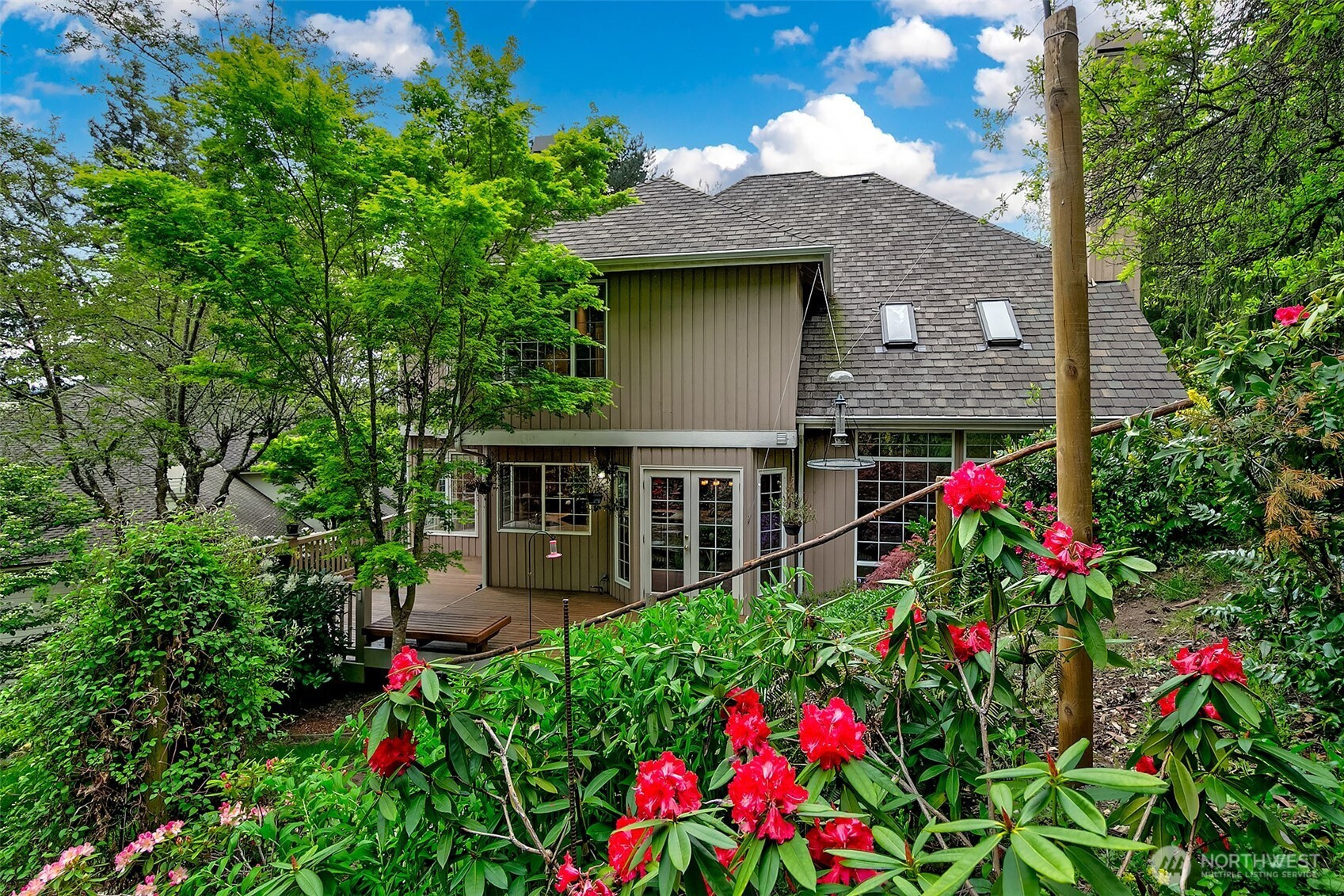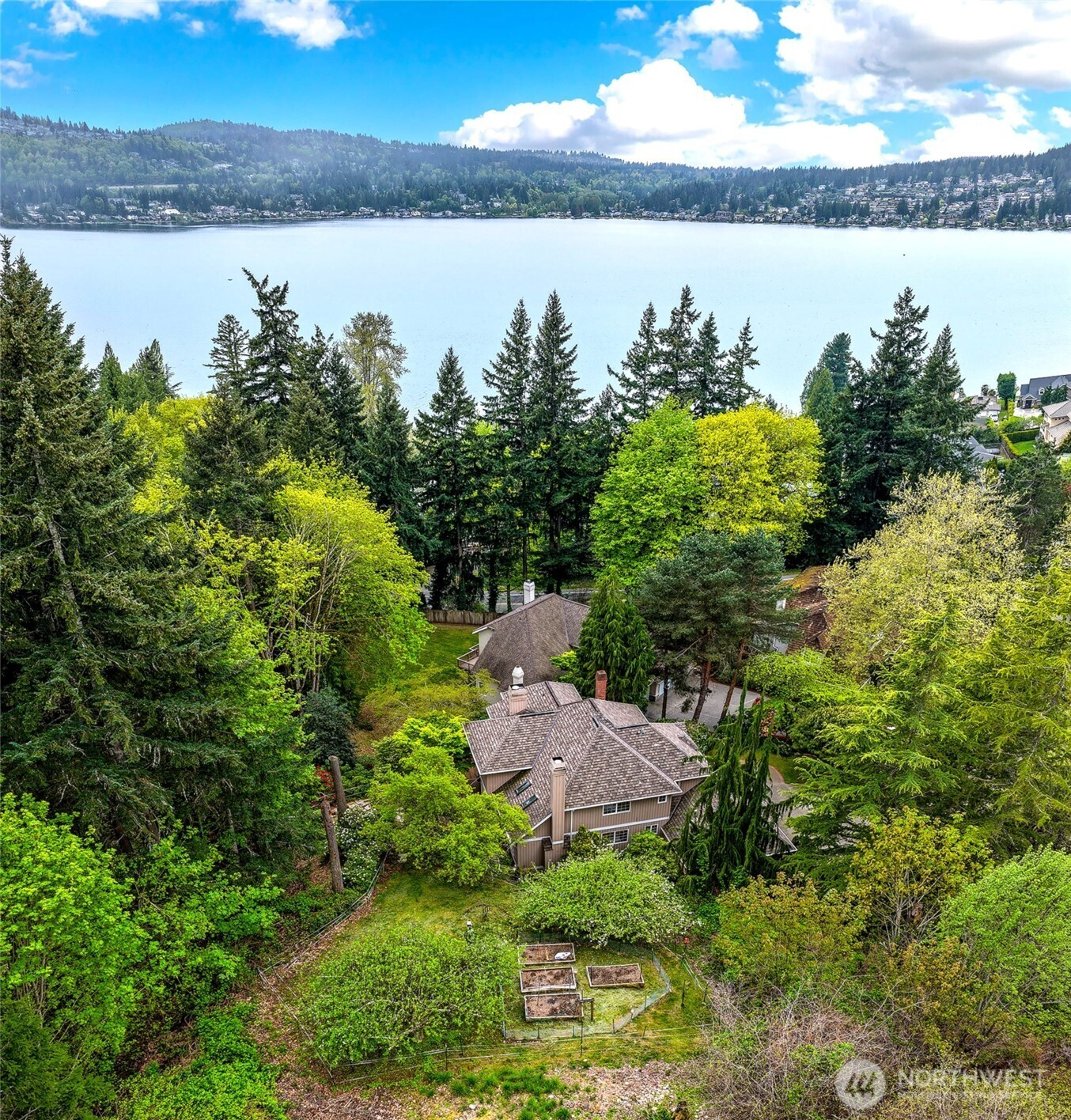 Stately John Buchan resale w/partial Lake Sammamish views on shy .75 acre lot! Classic Buchan high end extensive white milwork finishes include crown molding, tray ceilings, floorboard trim, wainscotting, wood wrapped windows and doors, vaulted and 2 story ceilings and raised white panel interior doors. Formal entry, main level guest bedroom w/French doors & built ins, formal living & dining w/tons of windows for natural light. Kitchen w/center island, hard surface counters, solid honey oak cabinets, 2nd prep sink, bar seating, full height tile backsplash, 5 burner gas range + SS appliances opens to casual dining and family room w/new carpet, built ins, gas fireplace & skylights. Upper level primary suite includes double sided fireplace, spa-like 5 pc bath w/jetted tub, separated water closet + BOTH linen & walk in closets. Strategically designed guest bedrooms 3 & 4 are joined by perfectly situated Jack and Jill bath w/separated vanity & dual sinks that also opens to hallway. Someone can be in the shower while another can use the vanity...perfect use of space! GARDENER'S DELIGHT backyard paradise w/terraced garden spaces including mini orchard with apple, peach and plumb trees, garden paths to multiple raised beds, mature rhododendrons, azaleas, dogwood, perennials, daffodils/bulb garden, even tranquil water feature off the deck. Staycation awaits while gazing at gorgeous partial views of Lake Sammamish! PRIME location minutes to downtown Issaquah, I90 and Lake Sammamish!