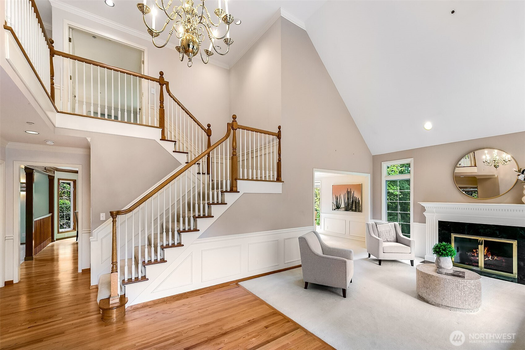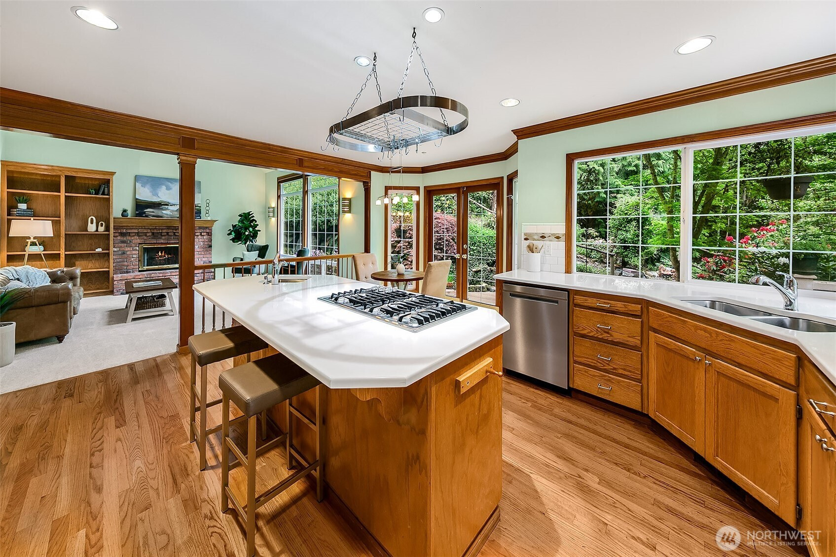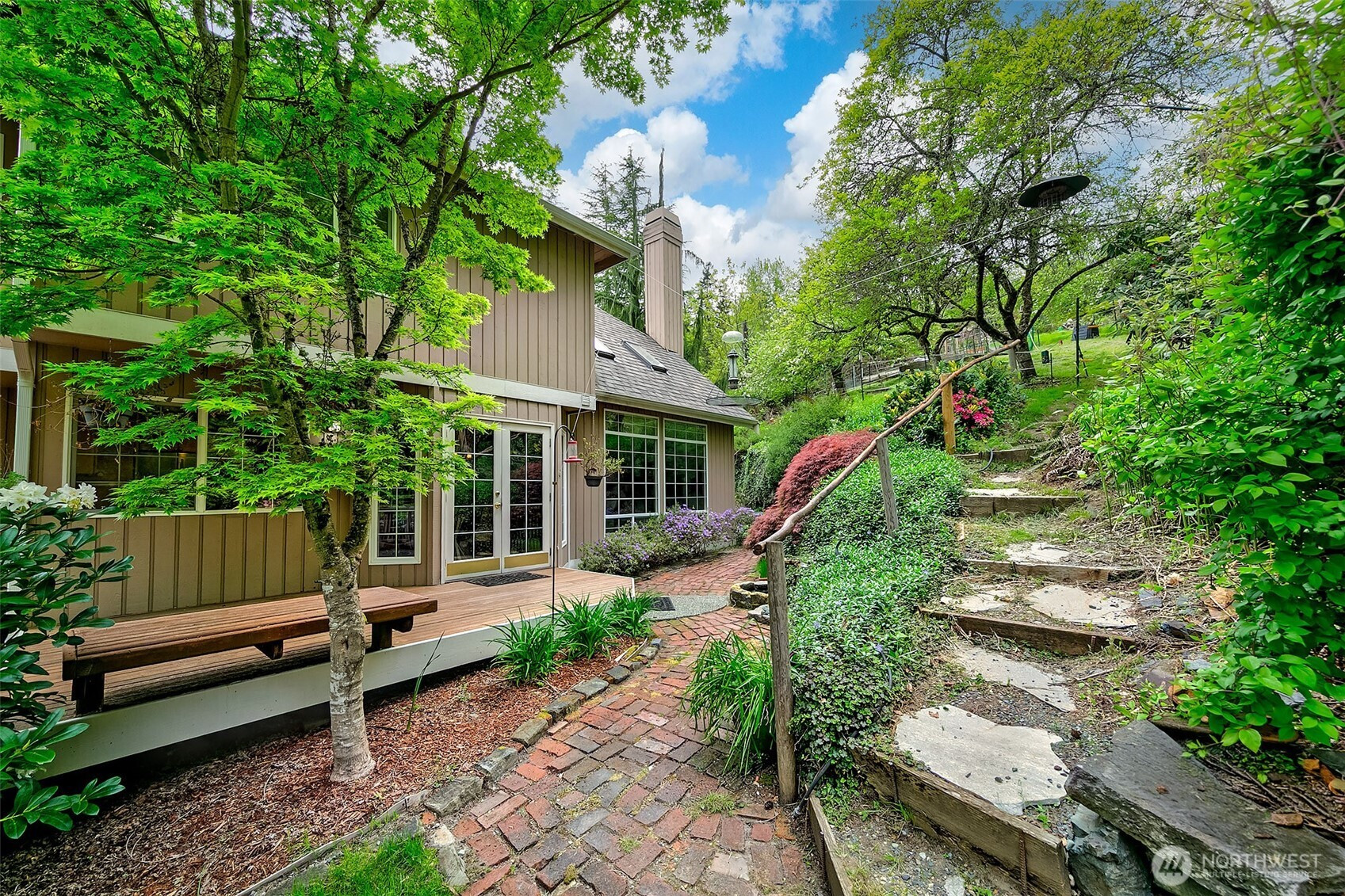 Stately John Buchan resale w/partial Lake Sammamish views on shy .75 acre lot! Classic Buchan high end extensive white milwork finishes include crown molding, tray ceilings, floorboard trim, wainscotting, wood wrapped windows and doors, vaulted and 2 story ceilings and raised white panel interior doors. Formal entry, main level guest bedroom w/French doors & built ins, formal living & dining w/tons of windows for natural light. Kitchen w/center island, hard surface counters, solid honey oak cabinets, 2nd prep sink, bar seating, full height tile backsplash, 5 burner gas range + SS appliances opens to casual dining and family room w/new carpet, built ins, gas fireplace & skylights. Upper level primary suite includes double sided fireplace, spa-like 5 pc bath w/jetted tub, separated water closet + BOTH linen & walk in closets. Strategically designed guest bedrooms 3 & 4 are joined by perfectly situated Jack and Jill bath w/separated vanity & dual sinks that also opens to hallway. Someone can be in the shower while another can use the vanity...perfect use of space! GARDENER'S DELIGHT backyard paradise w/terraced garden spaces including mini orchard with apple, peach and plumb trees, garden paths to multiple raised beds, mature rhododendrons, azaleas, dogwood, perennials, daffodils/bulb garden, even tranquil water feature off the deck. Staycation awaits while gazing at gorgeous partial views of Lake Sammamish! PRIME location minutes to downtown Issaquah, I90 and Lake Sammamish!