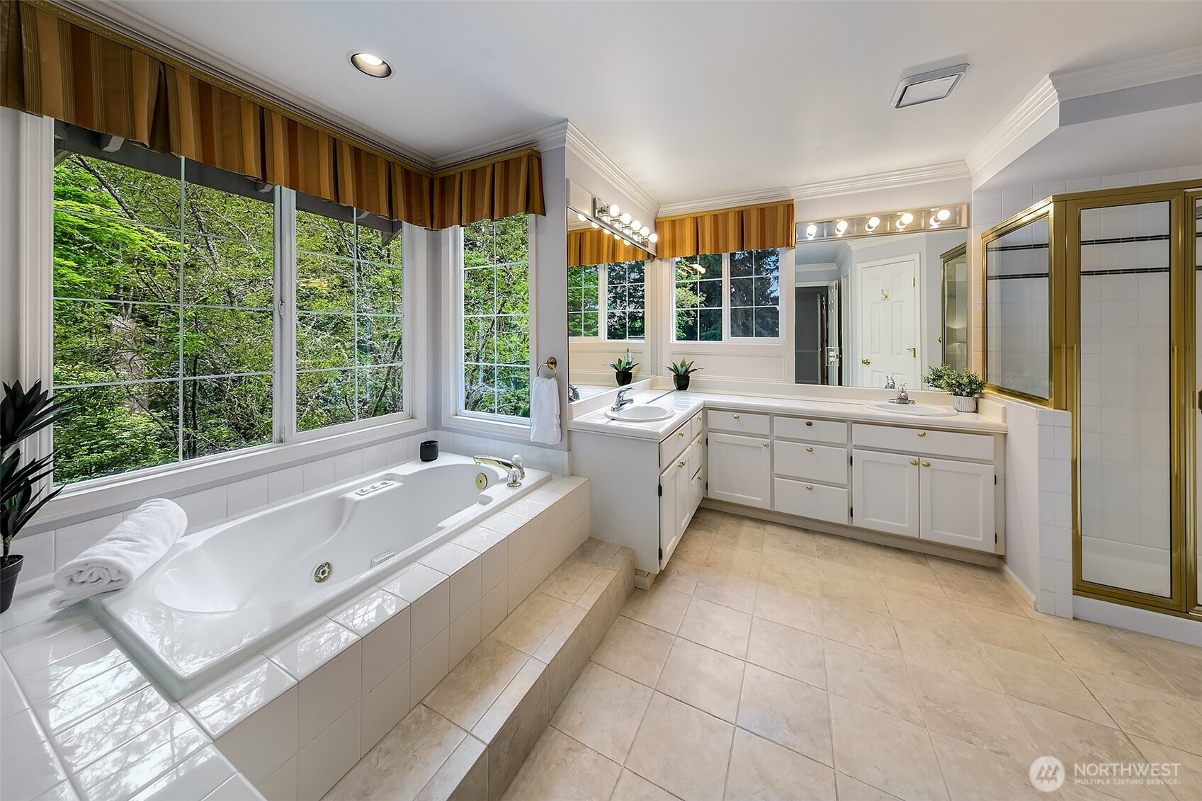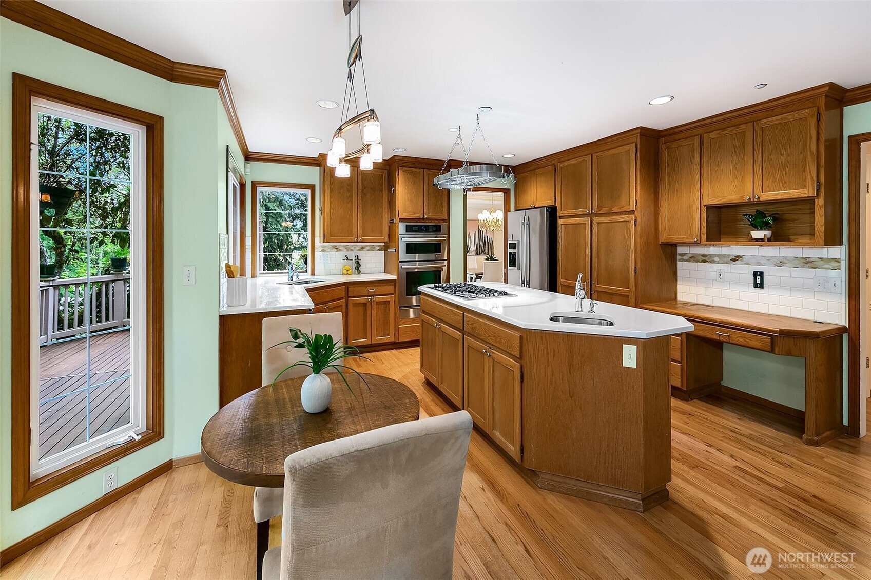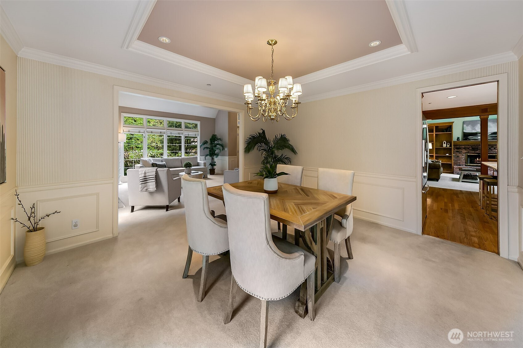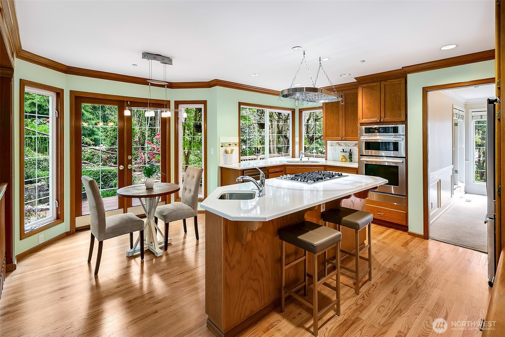 Stately John Buchan resale w/partial Lake Sammamish views on shy .75 acre lot! Classic Buchan high end extensive white milwork finishes include crown molding, tray ceilings, floorboard trim, wainscotting, wood wrapped windows and doors, vaulted and 2 story ceilings and raised white panel interior doors. Formal entry, main level guest bedroom w/French doors & built ins, formal living & dining w/tons of windows for natural light. Kitchen w/center island, hard surface counters, solid honey oak cabinets, 2nd prep sink, bar seating, full height tile backsplash, 5 burner gas range + SS appliances opens to casual dining and family room w/new carpet, built ins, gas fireplace & skylights. Upper level primary suite includes double sided fireplace, spa-like 5 pc bath w/jetted tub, separated water closet + BOTH linen & walk in closets. Strategically designed guest bedrooms 3 & 4 are joined by perfectly situated Jack and Jill bath w/separated vanity & dual sinks that also opens to hallway. Someone can be in the shower while another can use the vanity...perfect use of space! GARDENER'S DELIGHT backyard paradise w/terraced garden spaces including mini orchard with apple, peach and plumb trees, garden paths to multiple raised beds, mature rhododendrons, azaleas, dogwood, perennials, daffodils/bulb garden, even tranquil water feature off the deck. Staycation awaits while gazing at gorgeous partial views of Lake Sammamish! PRIME location minutes to downtown Issaquah, I90 and Lake Sammamish!