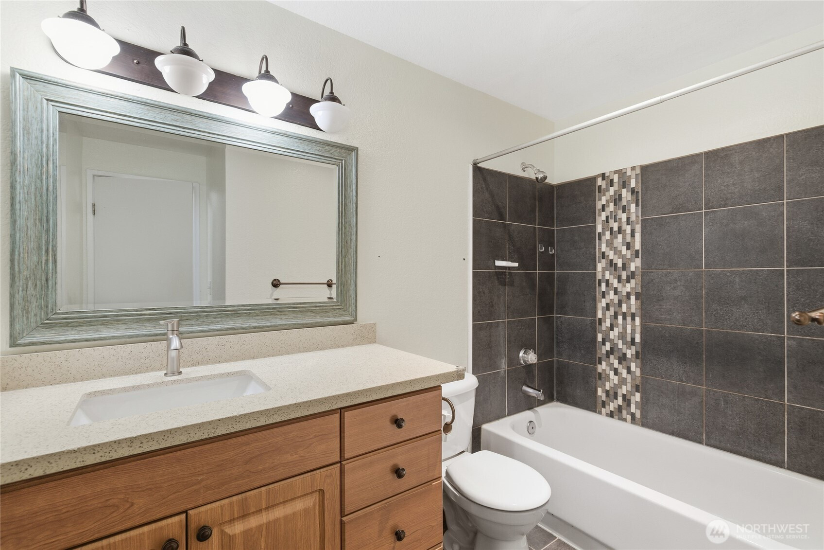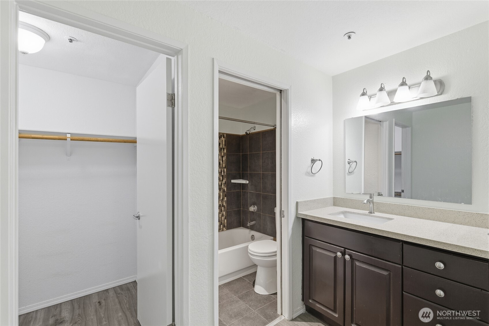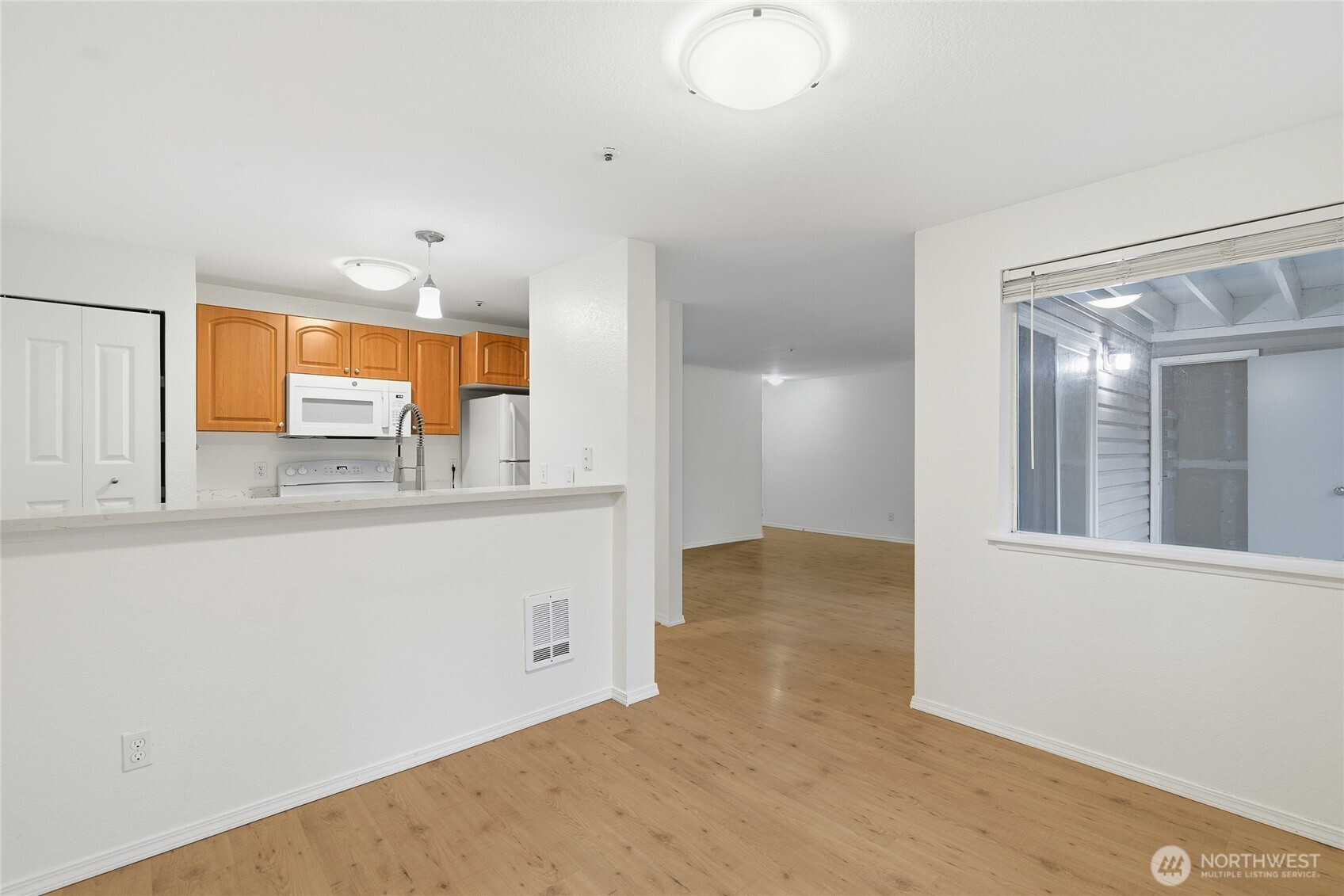 Wonderful ground floor home at Balaton Condominiums in the heart of Lake Forest Park. Enjoy a central location just minutes from I-5, Lake Forest Park Town Center, parks, and Lake Washington. This beautifully updated home features durable hard surface flooring throughout and brand-new quartz countertops in both the kitchen and bathrooms. The bright, open living area offers a cozy fireplace and access to a private patio that backs onto peaceful community green space. Two generous bedrooms, including a primary suite with ensuite bath and walk-in closet. In-unit washer and dryer for added convenience. Enjoy fantastic amenities including pool, hot tub, sauna, gym, and clubhouse. Well-run HOA with no rental cap—great for owners or investors!