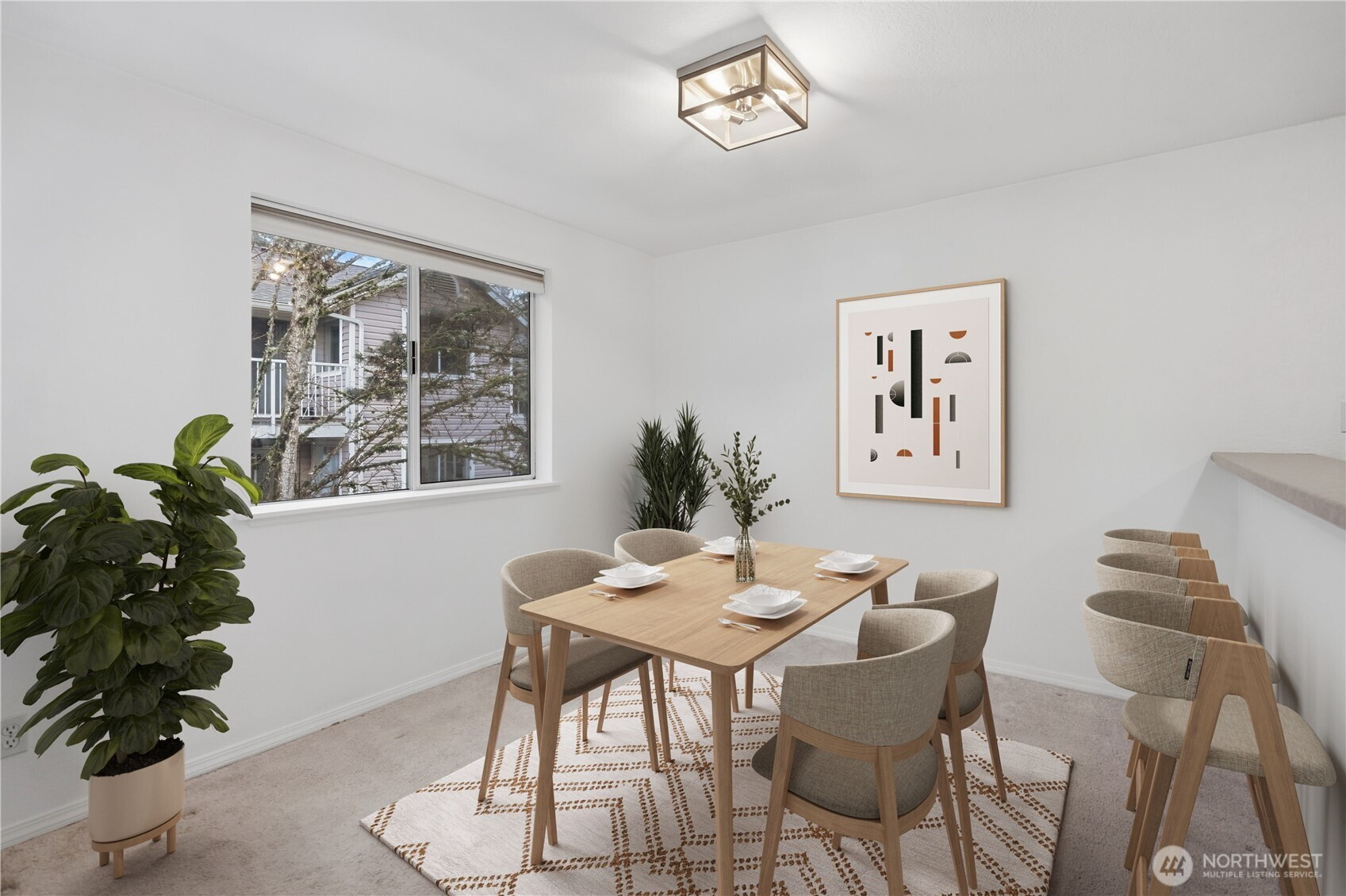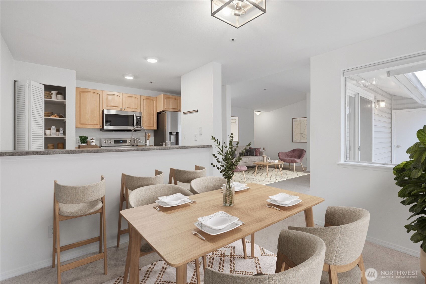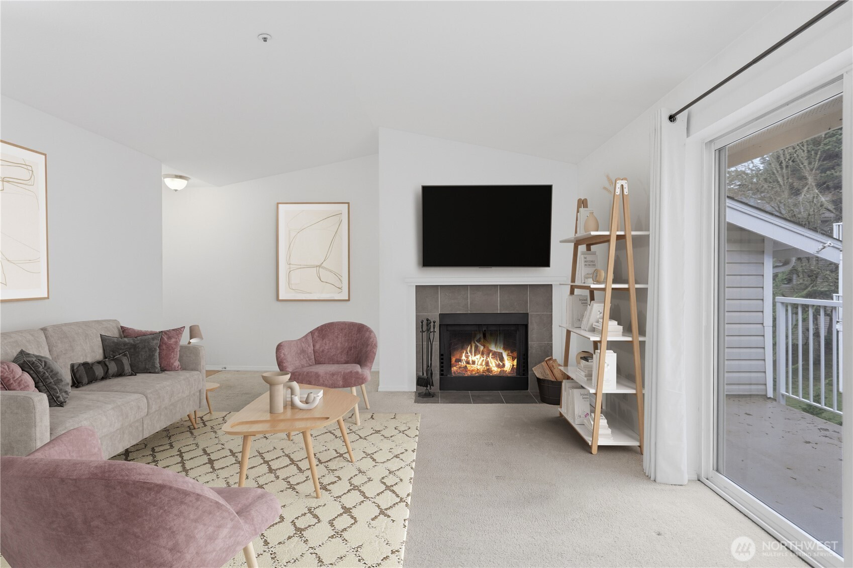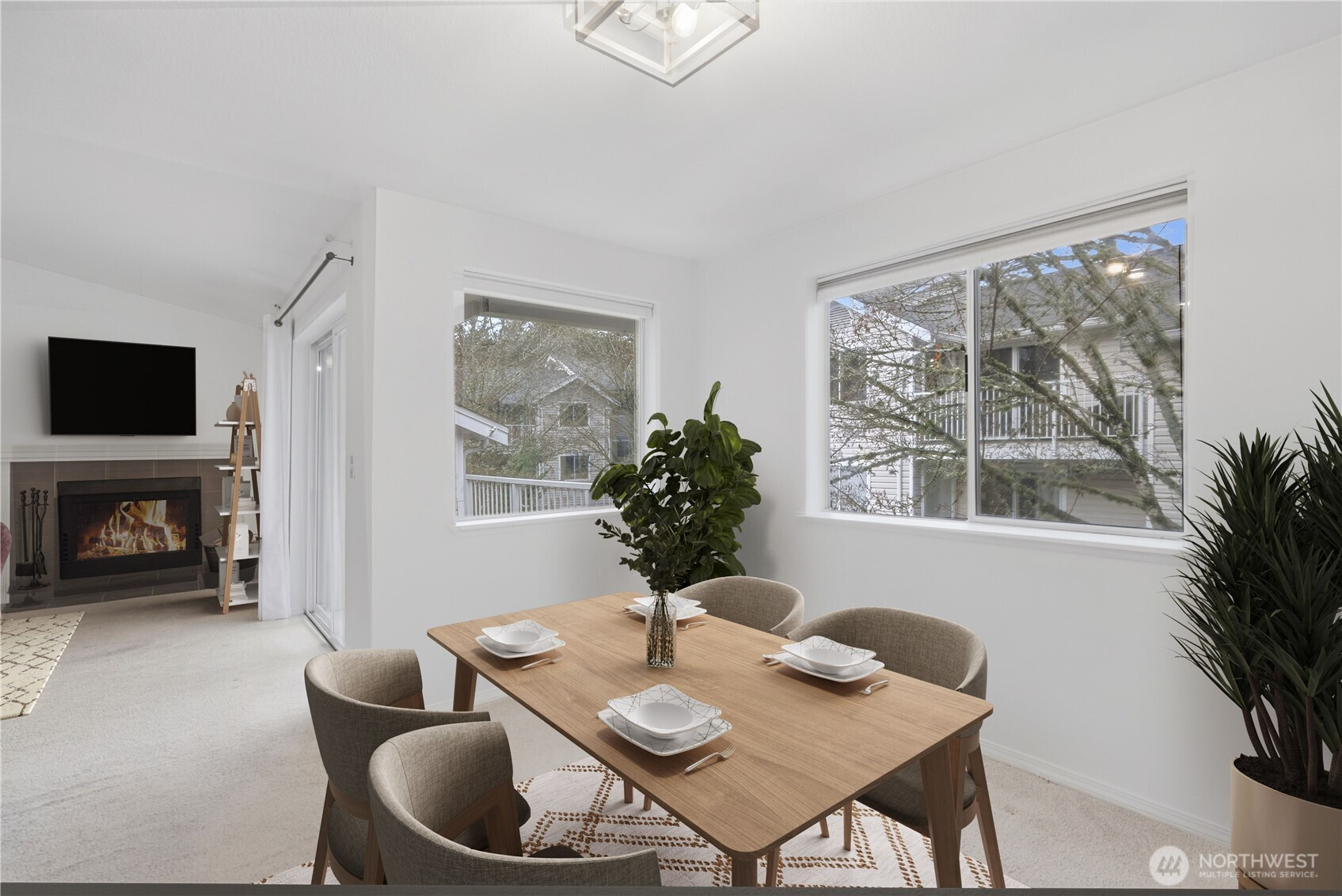 Experience the perfect blend of natural serenity and urban convenience in this top-floor Lake Forest Park retreat. Nestled in a lush, forested setting just minutes from Seattle, this home features an inviting living area highlighted by soaring vaulted ceilings, a cozy wood fireplace, and a sliding door leading to a spacious private balcony. The smart, efficient floor plan includes a primary suite complete with a walk-in closet and private ensuite bath. Enjoy the ease of in-unit laundry and the comfort of a peaceful neighborhood that feels worlds away while remaining close to everything. This 2-bedroom, 2-bath gem offers a rare opportunity to live in a tranquil, park-like atmosphere without sacrificing city accessibility.