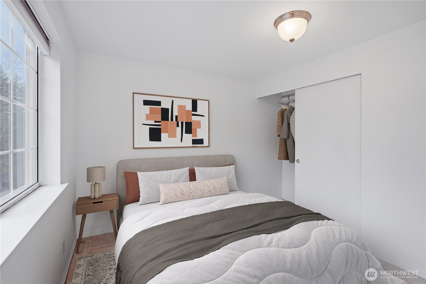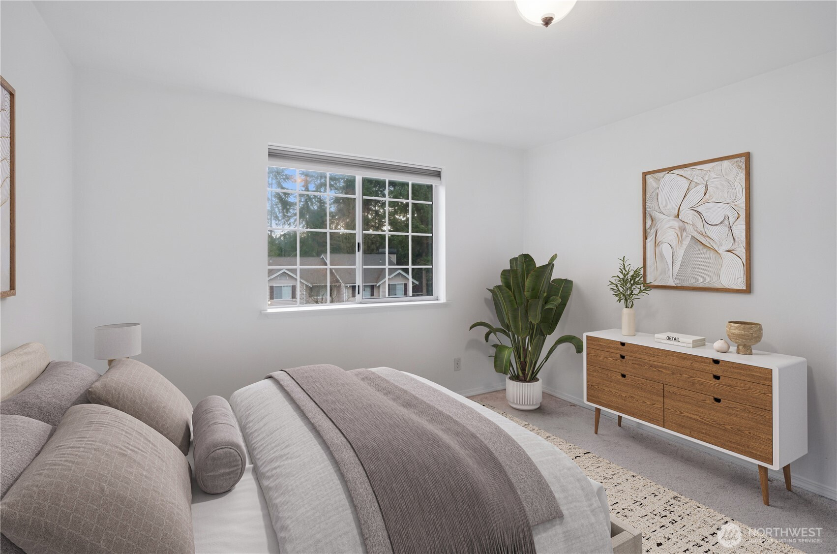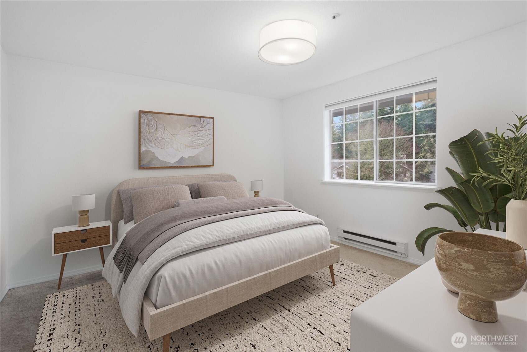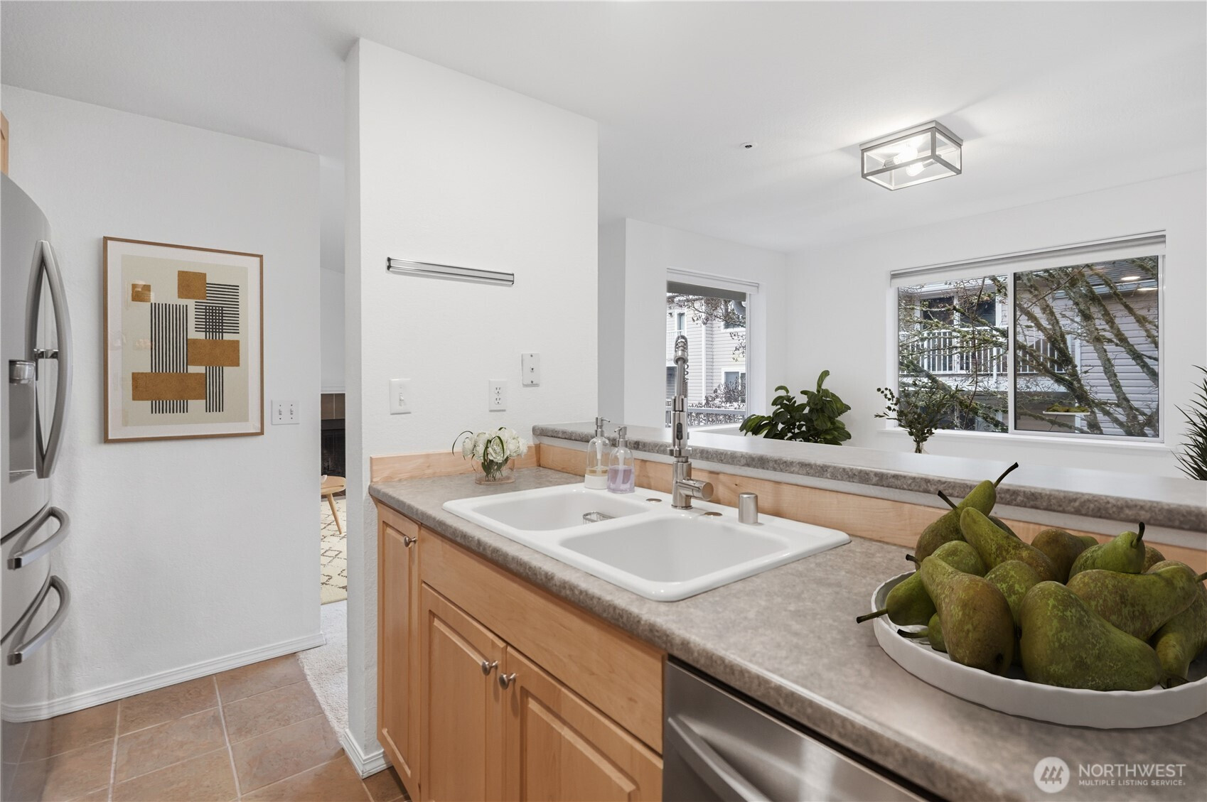 Experience the perfect blend of natural serenity and urban convenience in this top-floor Lake Forest Park retreat. Nestled in a lush, forested setting just minutes from Seattle, this home features an inviting living area highlighted by soaring vaulted ceilings, a cozy wood fireplace, and a sliding door leading to a spacious private balcony. The smart, efficient floor plan includes a primary suite complete with a walk-in closet and private ensuite bath. Enjoy the ease of in-unit laundry and the comfort of a peaceful neighborhood that feels worlds away while remaining close to everything. This 2-bedroom, 2-bath gem offers a rare opportunity to live in a tranquil, park-like atmosphere without sacrificing city accessibility.