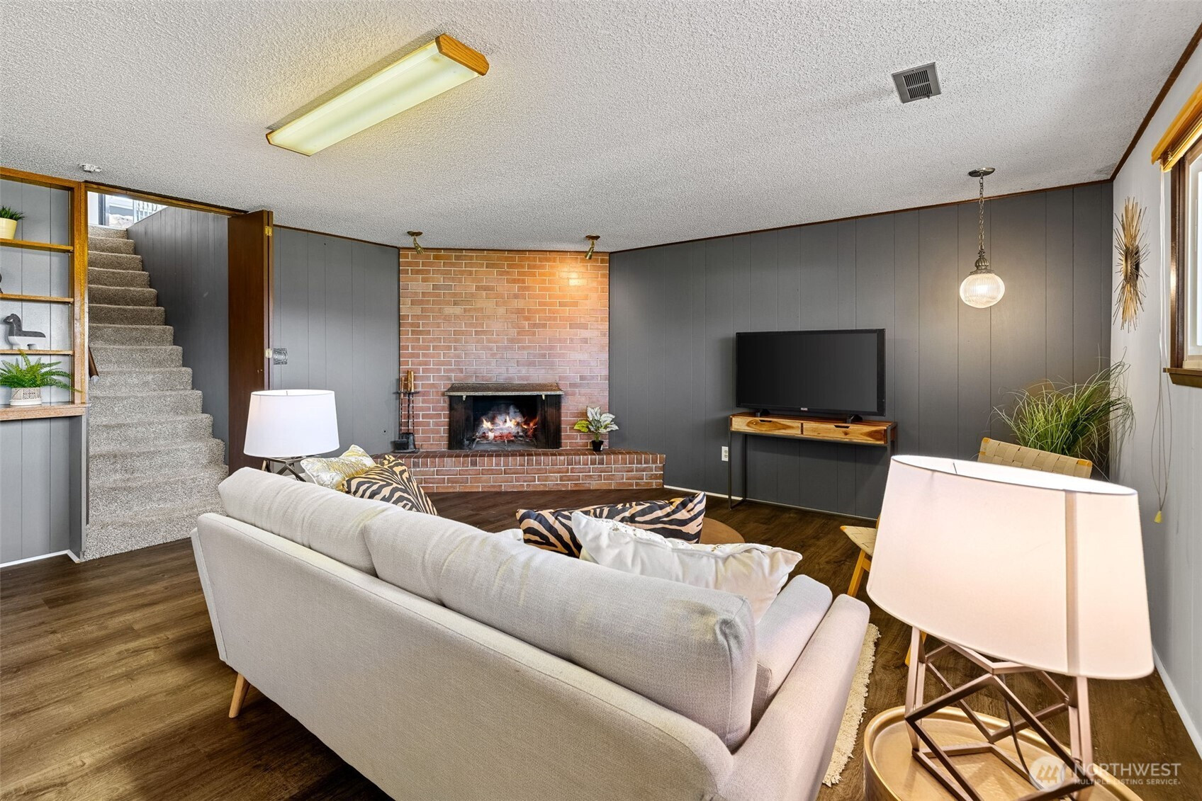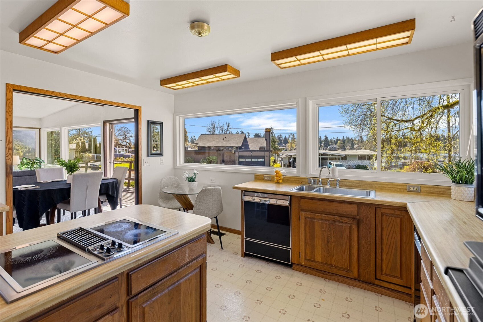 Here is a rare opportunity to live in the desirable Angle Lake neighborhood. Welcome to this 4-bedroom, 3000+ sq ft home that sits on a beautiful corner lot across the street from the private community beach on Angle Lake. You will be front and center for so many fun times at the lake! This home has a fabulous entertaining space, with a spacious Living Room featuring a wall of windows to capture the sunlight and lake view. The Living room opens up to the wrap-around deck with a Southern exposure. There is also a wood-burning fireplace, a skylight, and vaulted ceilings. The kitchen is spacious with plenty of counter space and windows. It also has a kitchen island and a breakfast nook that has a view of the lake. The Primary Bedroom is large and includes a 3/4 bathroom. Downstairs is the perfect party place! The rec room that has a huge retro-style bar, wood-burning fireplace, and tons of space!! Excellent floor plan with 3 bedrooms on the main floor and 1 downstairs. There is also a ton of storage in this home. This location is minutes to the airport, freeway access, shopping, and restaurants, yet it has a lovely, peaceful feeling that comes with living near the lake.