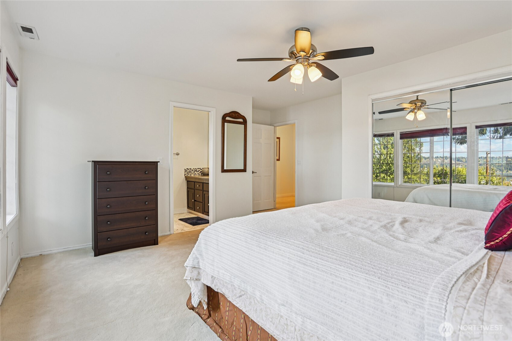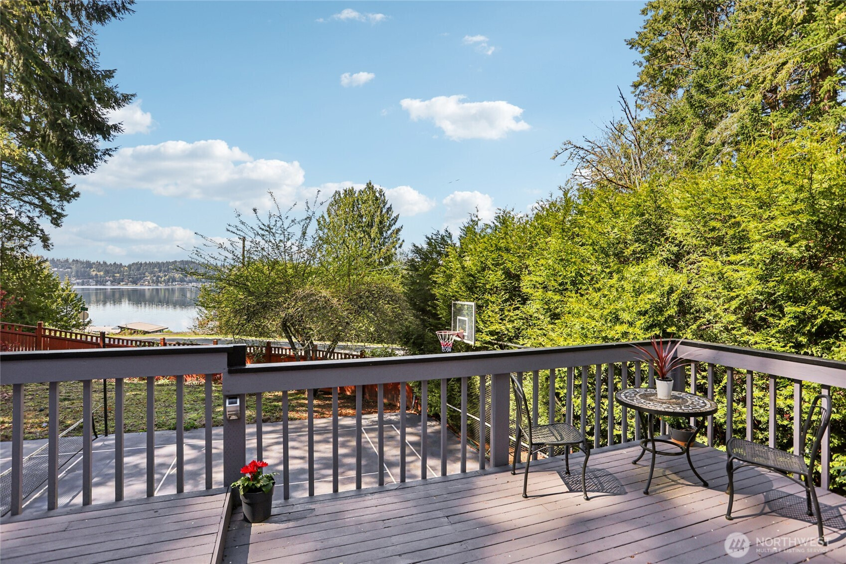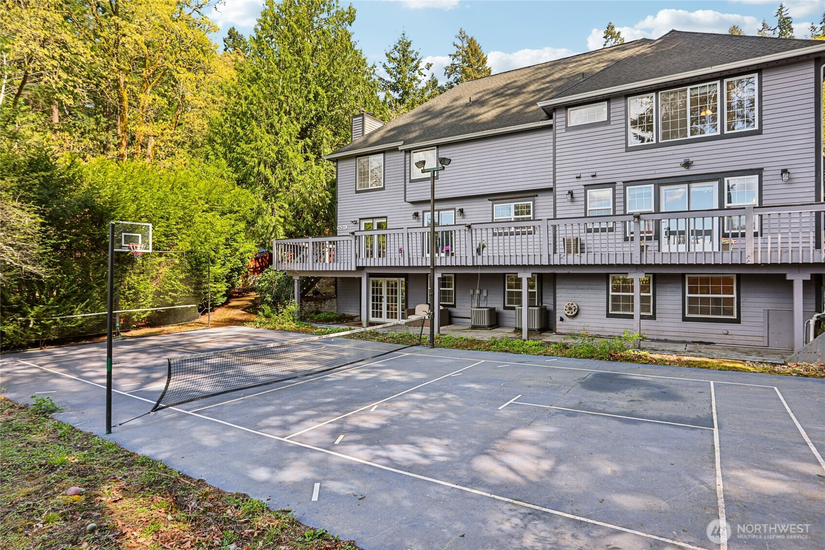 Rare opportunity to own a Lake Sammamish view home that combines scale, flexibility, and a true lifestyle setting. Designed to live comfortably for years to come, this spacious residence offers two primary suites plus three additional bedrooms—ideal for multi-generational living, guests, or work-from-home needs. The main primary suite features a newly updated bath with a soaking tub positioned to take in the lake views. At the heart of the home, an expansive kitchen and family room connect seamlessly and open to a large view deck overlooking the private sport court—creating an effortless indoor-outdoor flow for entertaining or quiet evenings. Enjoy a competitive game of pickleball, then relax in the hot tub or unwind in the sauna. The lower level functions as a separate living area, perfect for guests, extended stays, or a media and recreation space. Meticulously maintained with meaningful upgrades, including a new electrical panel, generator wiring for added peace of mind, and air conditioning for year-round comfort. The setting enhances everyday living—just blocks from Lake Sammamish State Park’s boat launch and minutes to the fully paved 11-mile Lake Sammamish Trail for biking, running, or scenic outings. Added convenience: school bus pickup right outside. A compelling blend of views, versatility, and amenities—well-suited for both everyday living and memorable gatherings.