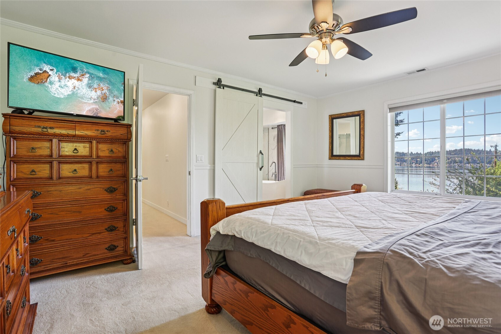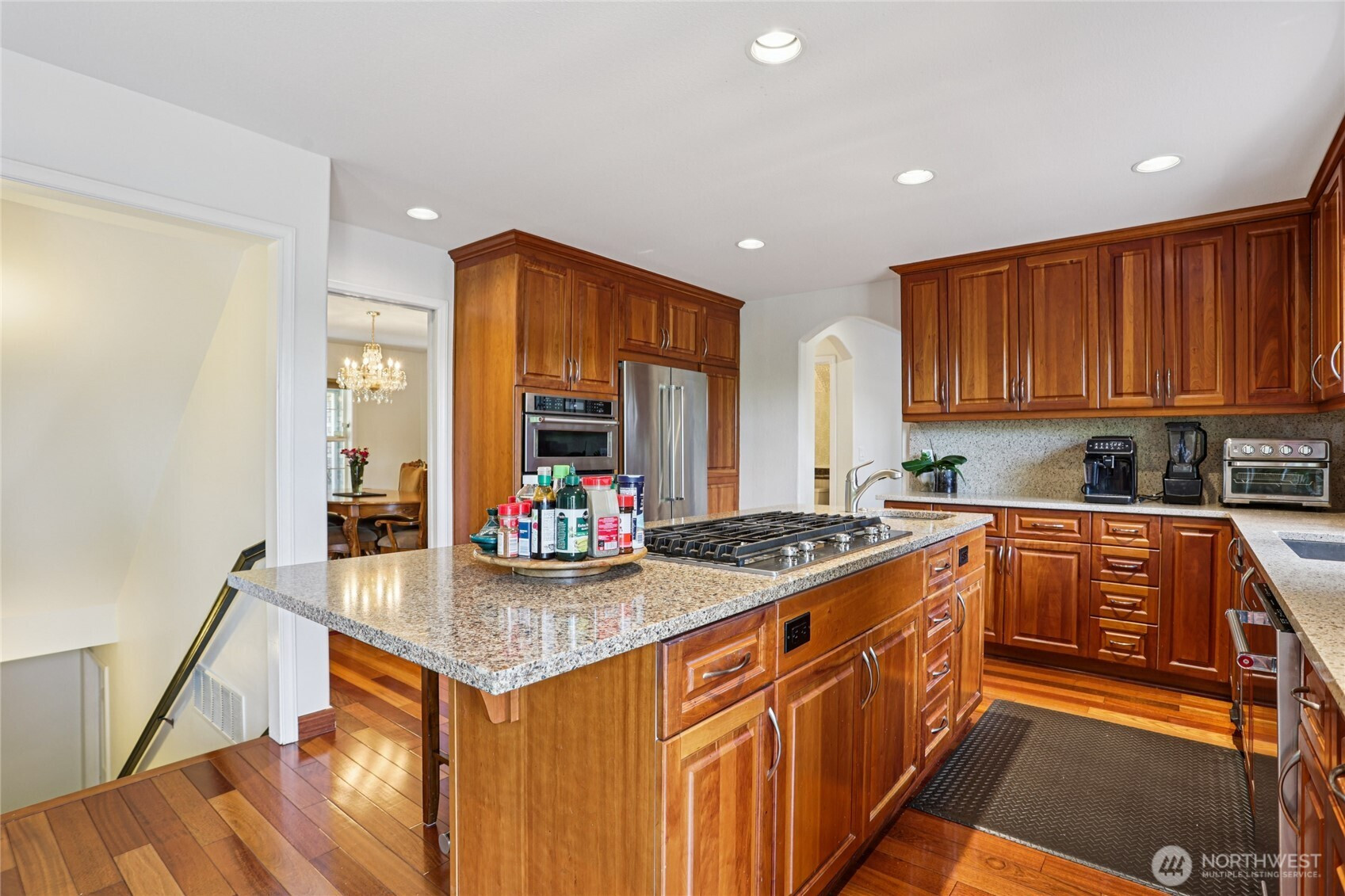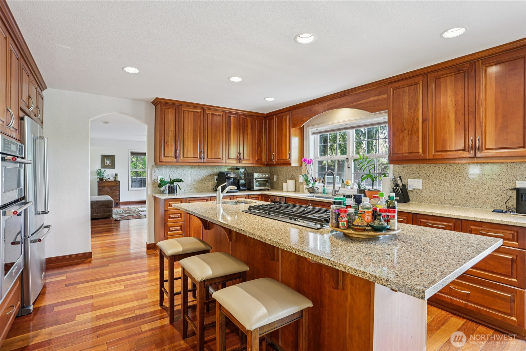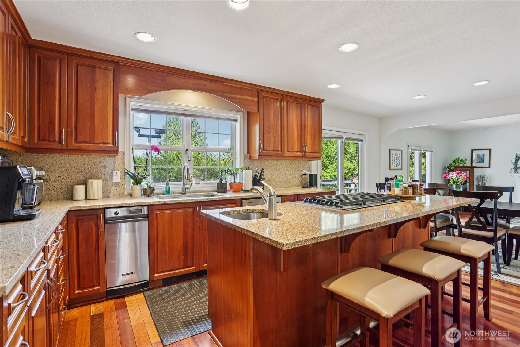 Rare opportunity to own a Lake Sammamish view home that combines scale, flexibility, and a true lifestyle setting. Designed to live comfortably for years to come, this spacious residence offers two primary suites plus three additional bedrooms—ideal for multi-generational living, guests, or work-from-home needs. The main primary suite features a newly updated bath with a soaking tub positioned to take in the lake views. At the heart of the home, an expansive kitchen and family room connect seamlessly and open to a large view deck overlooking the private sport court—creating an effortless indoor-outdoor flow for entertaining or quiet evenings. Enjoy a competitive game of pickleball, then relax in the hot tub or unwind in the sauna. The lower level functions as a separate living area, perfect for guests, extended stays, or a media and recreation space. Meticulously maintained with meaningful upgrades, including a new electrical panel, generator wiring for added peace of mind, and air conditioning for year-round comfort. The setting enhances everyday living—just blocks from Lake Sammamish State Park’s boat launch and minutes to the fully paved 11-mile Lake Sammamish Trail for biking, running, or scenic outings. Added convenience: school bus pickup right outside. A compelling blend of views, versatility, and amenities—well-suited for both everyday living and memorable gatherings.