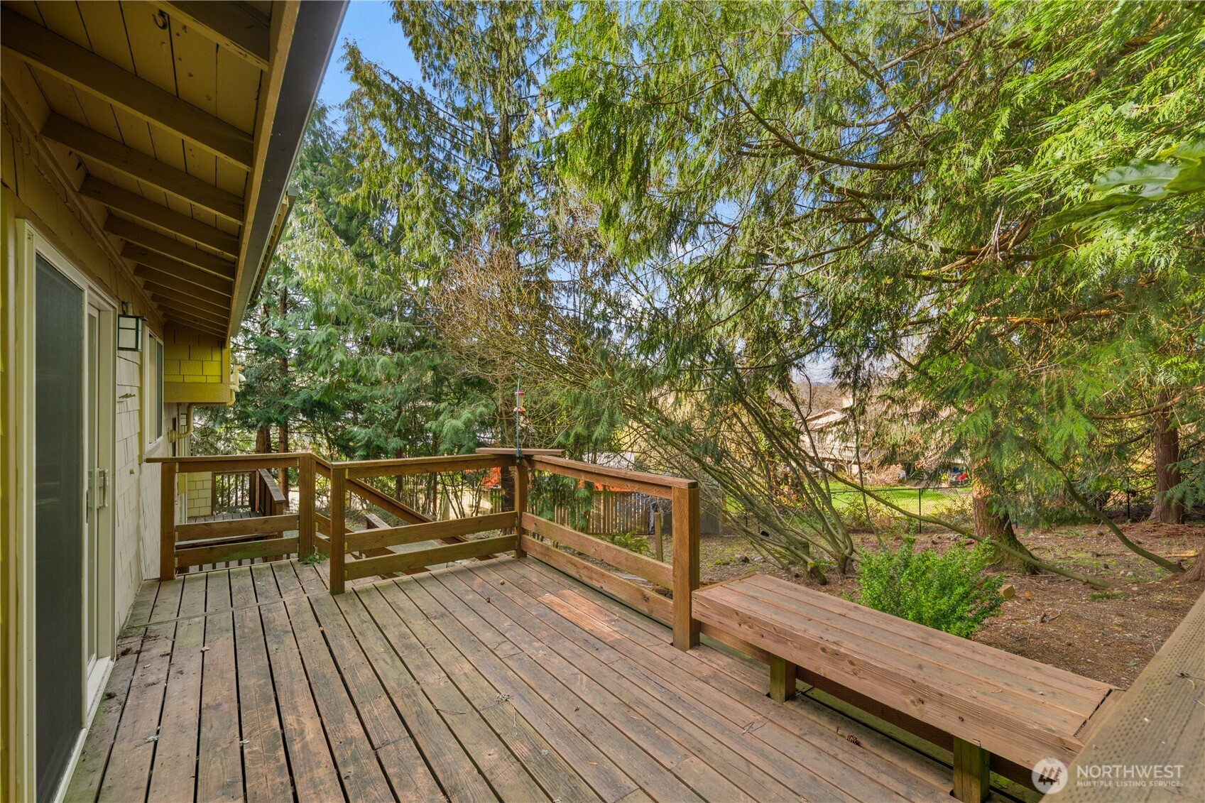 Welcome to Winterwood Estates, where space, privacy, and thoughtful updates come together on a beautifully maintained 0.80-acre lot. Surrounded by mature evergreen trees, this property offers a peaceful, secluded setting with a true sense of privacy that’s hard to find. This 3-bedroom, 2.5-bath home offers 2,490 sq ft of comfortable living with a functional layout designed for both everyday living and entertaining. Recent updates provide peace of mind and modern appeal, including fresh interior and exterior paint, new flooring in the kitchen and bedrooms, and new carpet in the lower level. Major system upgrades include a high-efficiency heat pump and tankless water heater installed in 2023, both with transferable warranties. The home is topped with a durable lifetime slate tile roof, offering long-term value. Additional features include covered gutters with a transferable leaf guard system and an attached two-car garage. Enjoy multiple private outdoor living spaces, including expansive deck and patio areas in the backyard—perfect for relaxing, entertaining, or taking in the surrounding natural setting. Set directly across from a neighborhood park and nestled within the established charm of Winterwood Estates, this property offers a rare combination of privacy, usable land, and quality updates in a convenient Kent location.