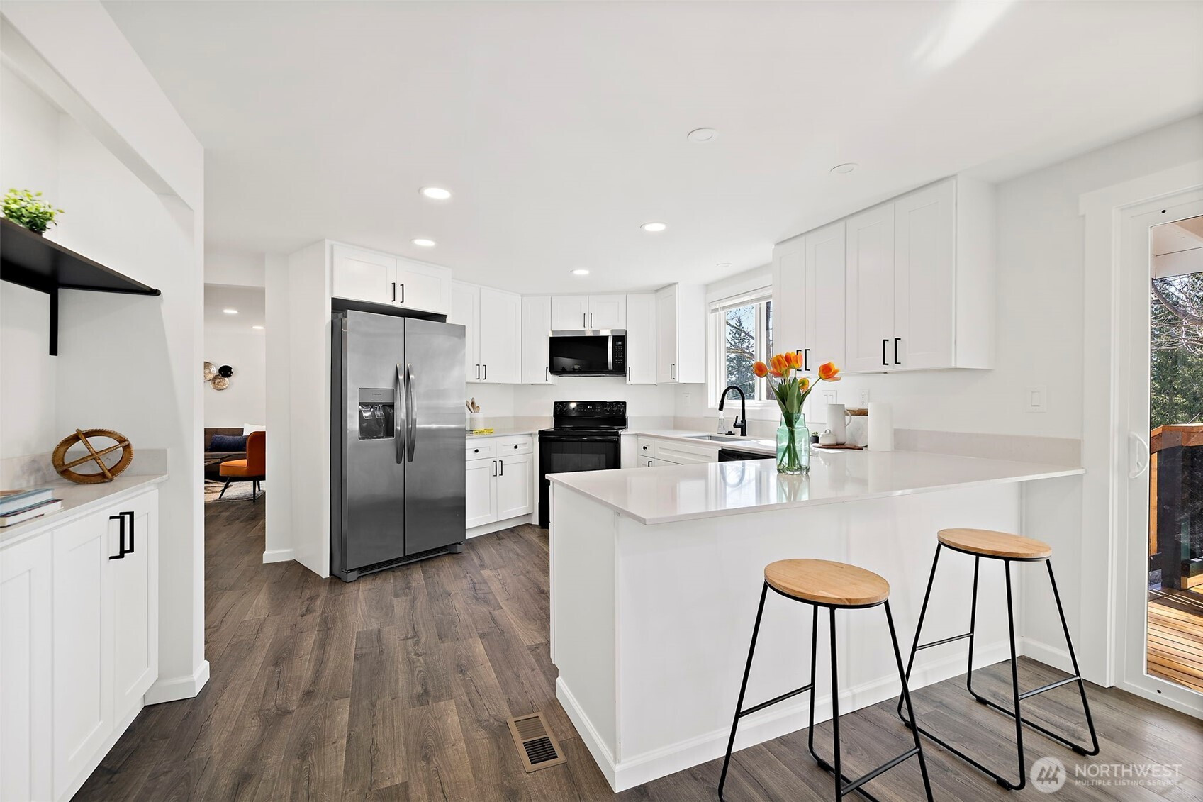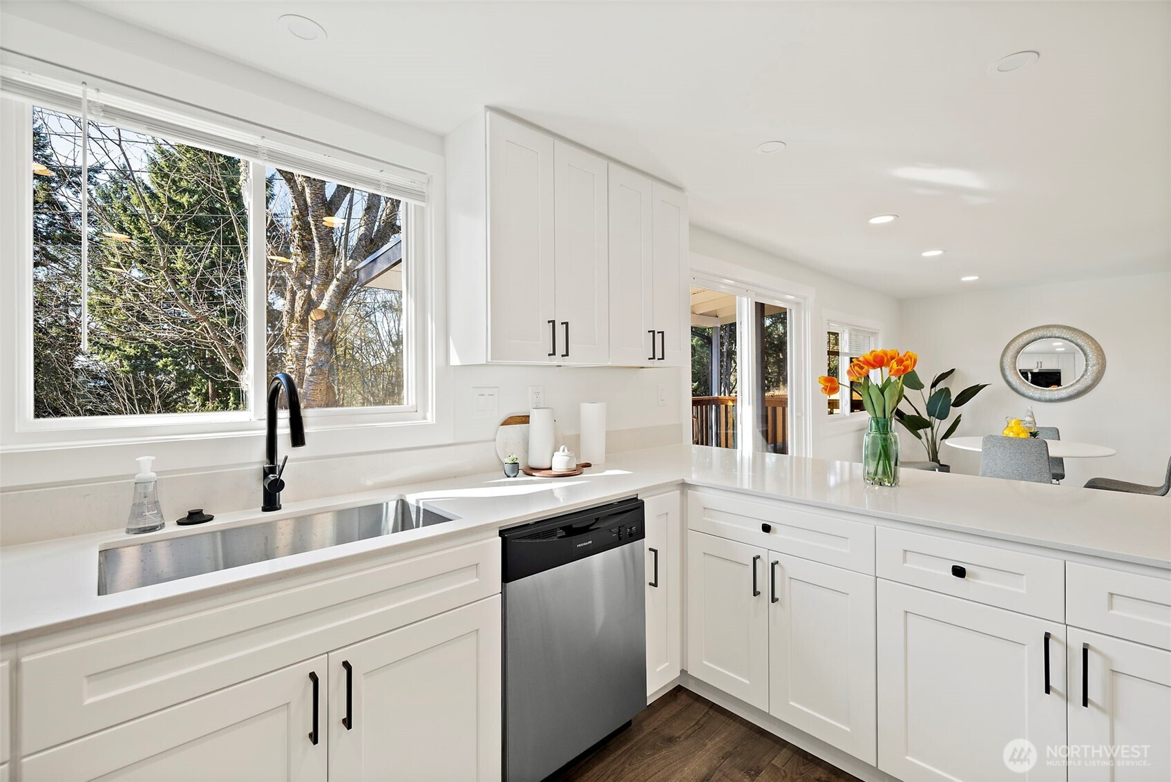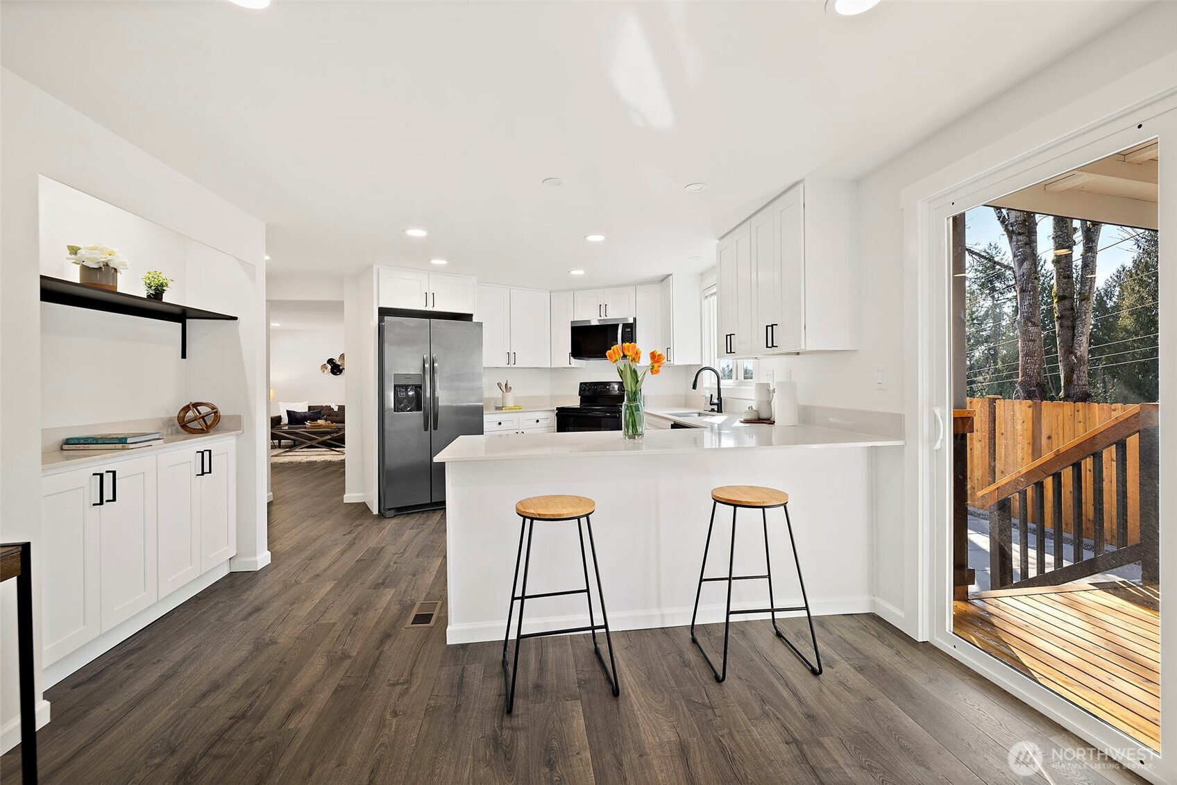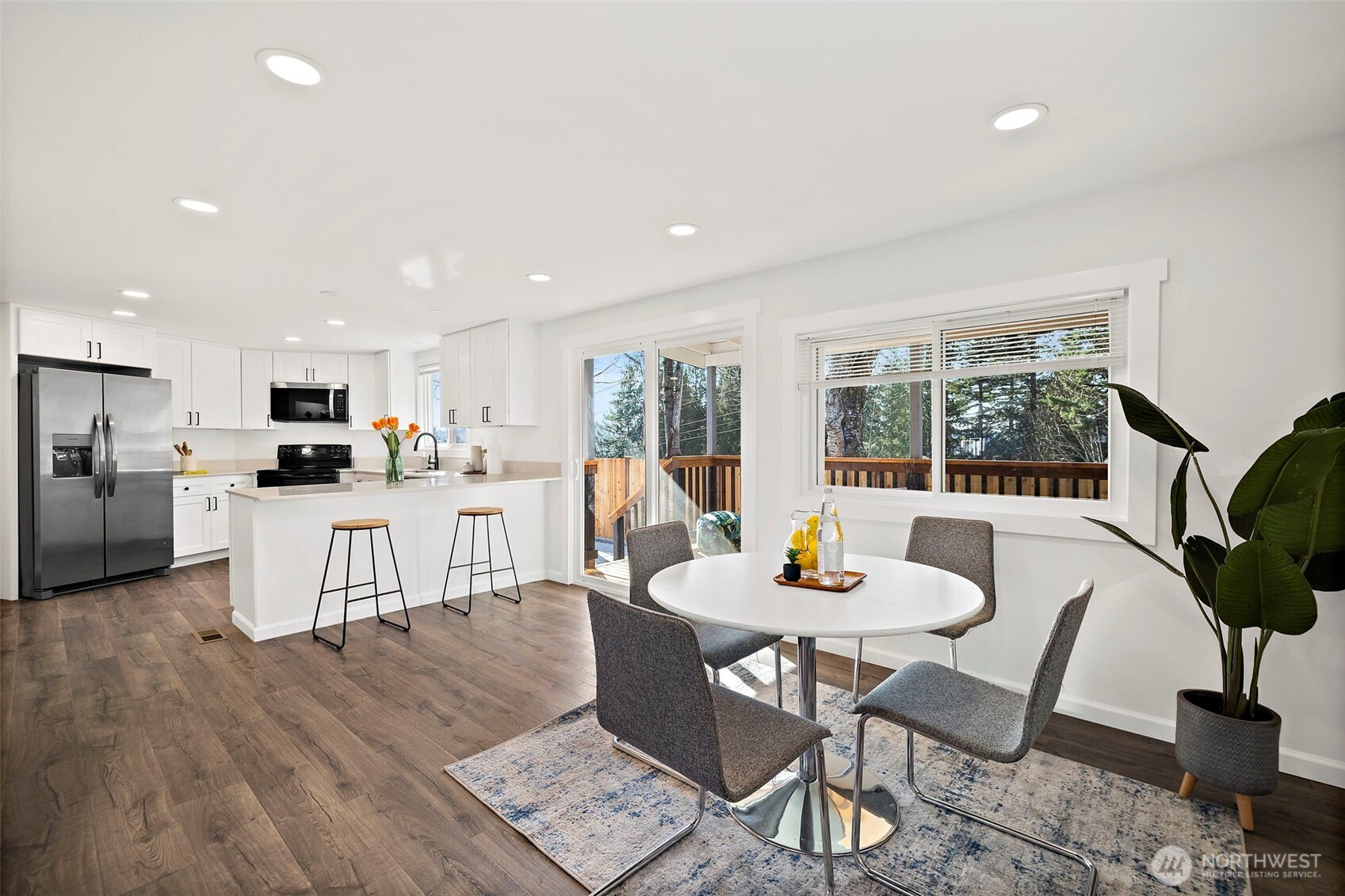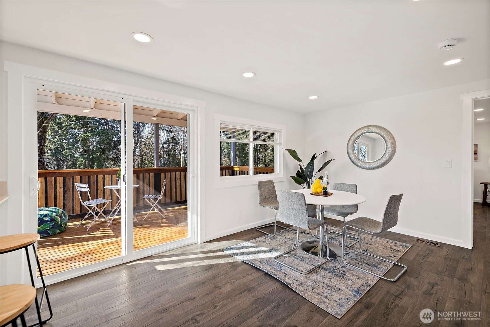 Beautifully revived spacious Bothell home in Holly Hills – Northshore School District. This fully fenced 3-bedroom, 1.5-bath residence combines modern comfort with timeless charm. Two walk-in showers in both baths, along with all-new flooring, cabinetry, and fencing, create a fresh, inviting atmosphere from the moment you arrive. A spacious detached 480’ garage with power adds versatile storage and workshop possibilities. Enjoy sun-kissed mornings and tranquil evenings from the front and back decks, perfect for entertaining or simply unwinding while taking in the view of the sunset. Low HOA dues grant access to a clubhouse and a park, enriching the sense of community and convenience. The property sits in a prime location, just minutes from UW Bothell, downtown Bothell, and a variety of grocery options and eateries, making everyday errands effortless and enjoyable. Don't forget to ask the complete features list to highlight every detail this home has to offer. Welcome Home.