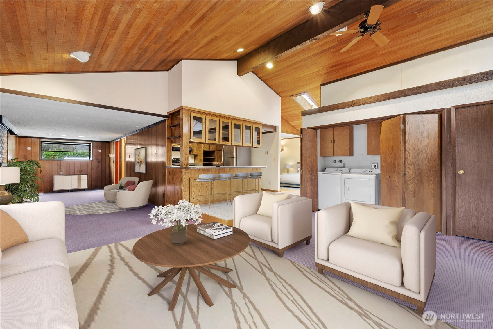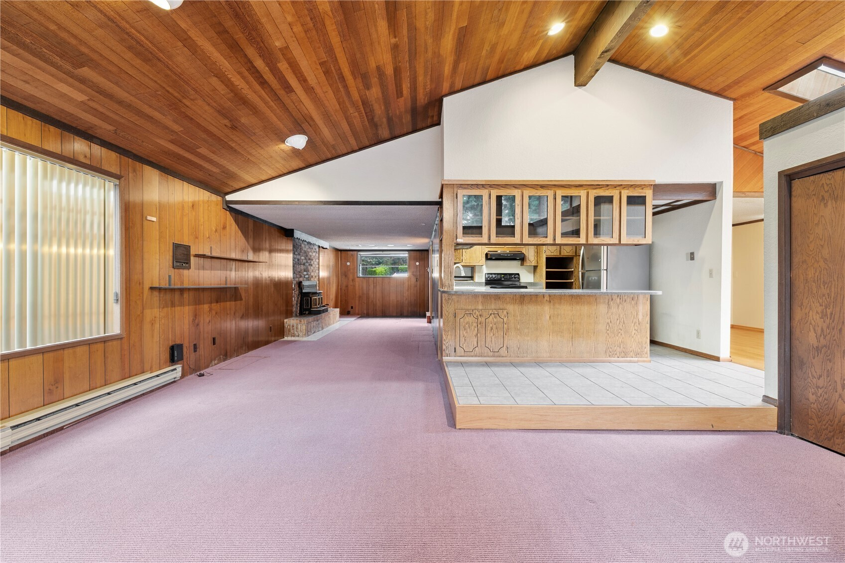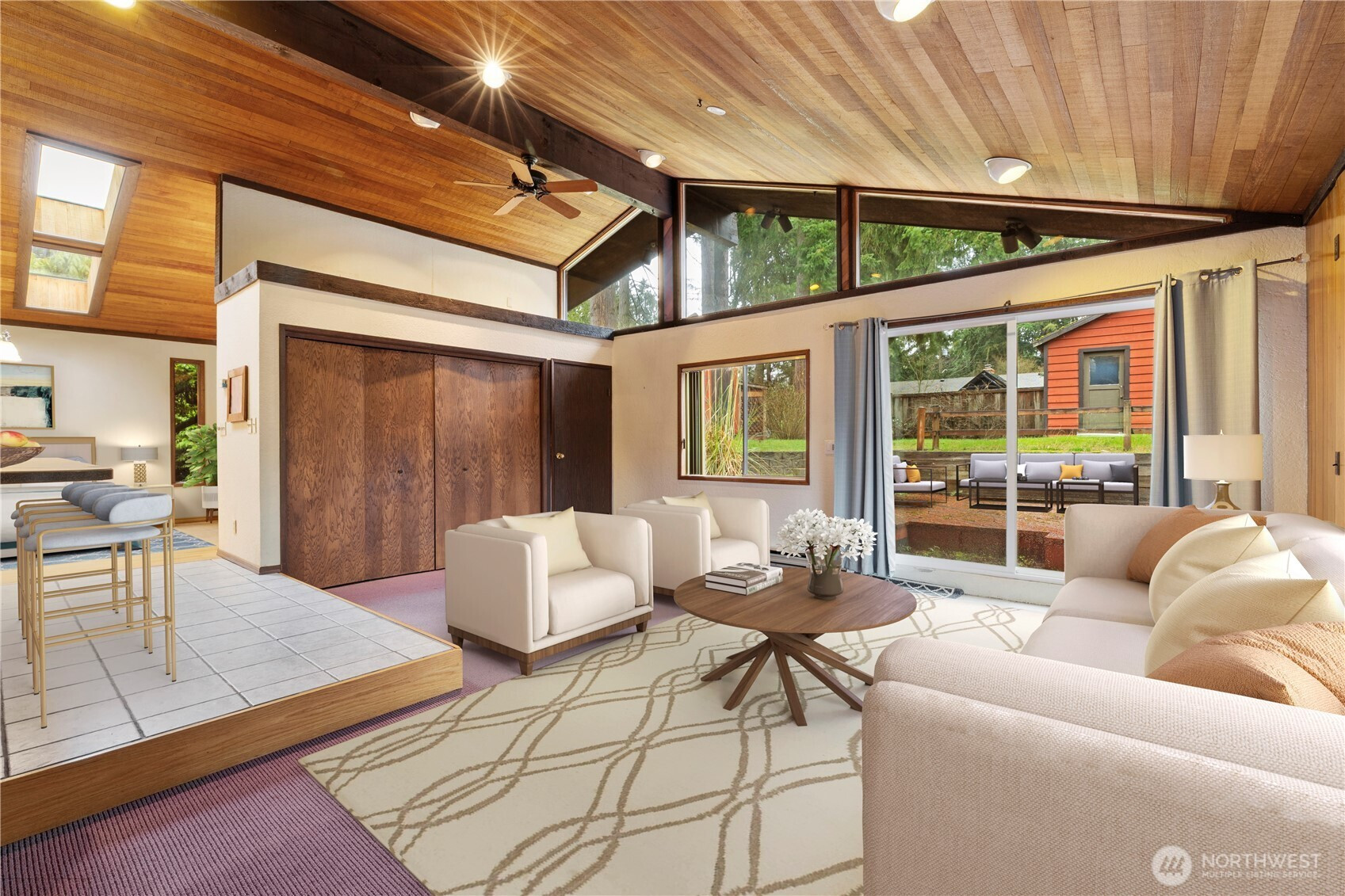 Fantastic opportunity! Mid-century style, centrally located Shoreline rambler on a nearly 10,000 sqft lot. Flexible floor plan with vaulted ceilings and numerous skylights for natural light. All appliances stay. Great investment opportunity or update to suit your personal tastes. Zoned MUR-70 for mixed-use residential. The private, tiered backyard allows room for outdoor living, gardens, or future enhancements, and includes a workshop and shed with power. Nearby hotspots include Shoreview Park, Richmond Beach, Hamlin Park, dining & shopping. Immediate access to I-5 & MLT Transit Center, easy commute to downtown Seattle, Lynnwood, and more! Shoreline School District.