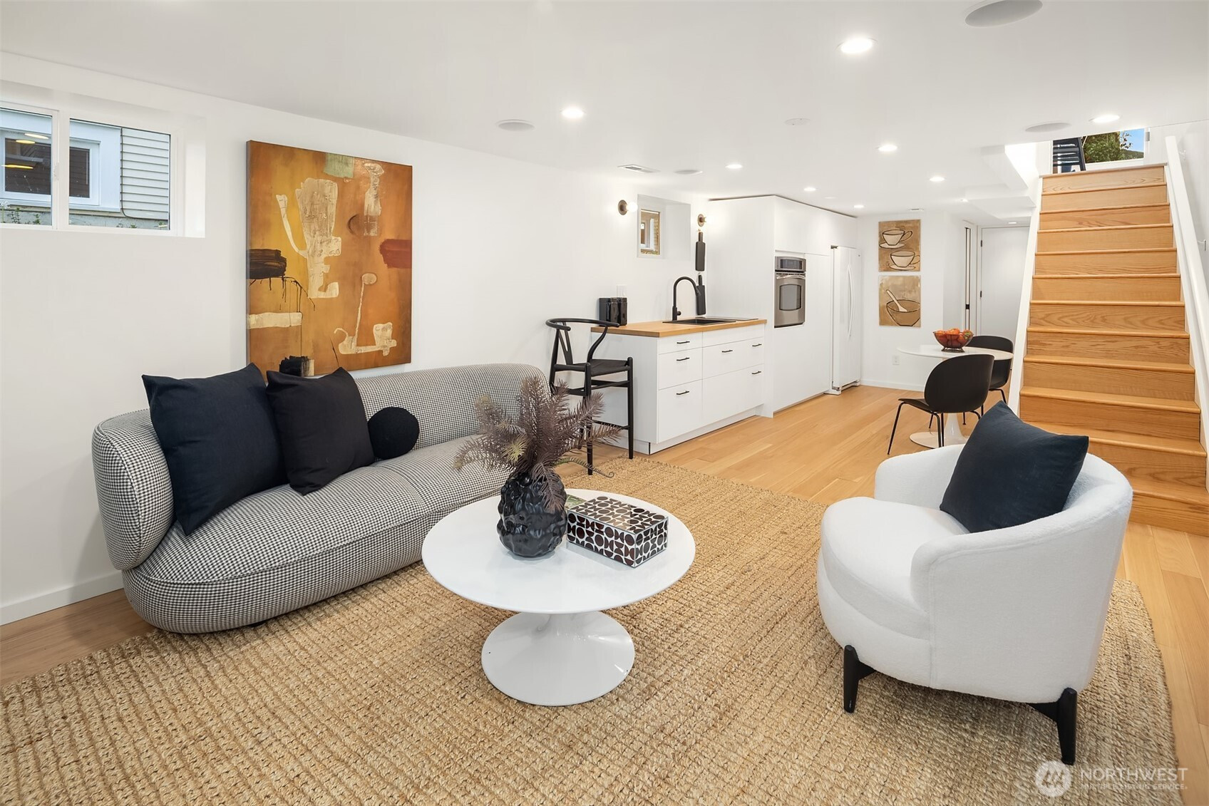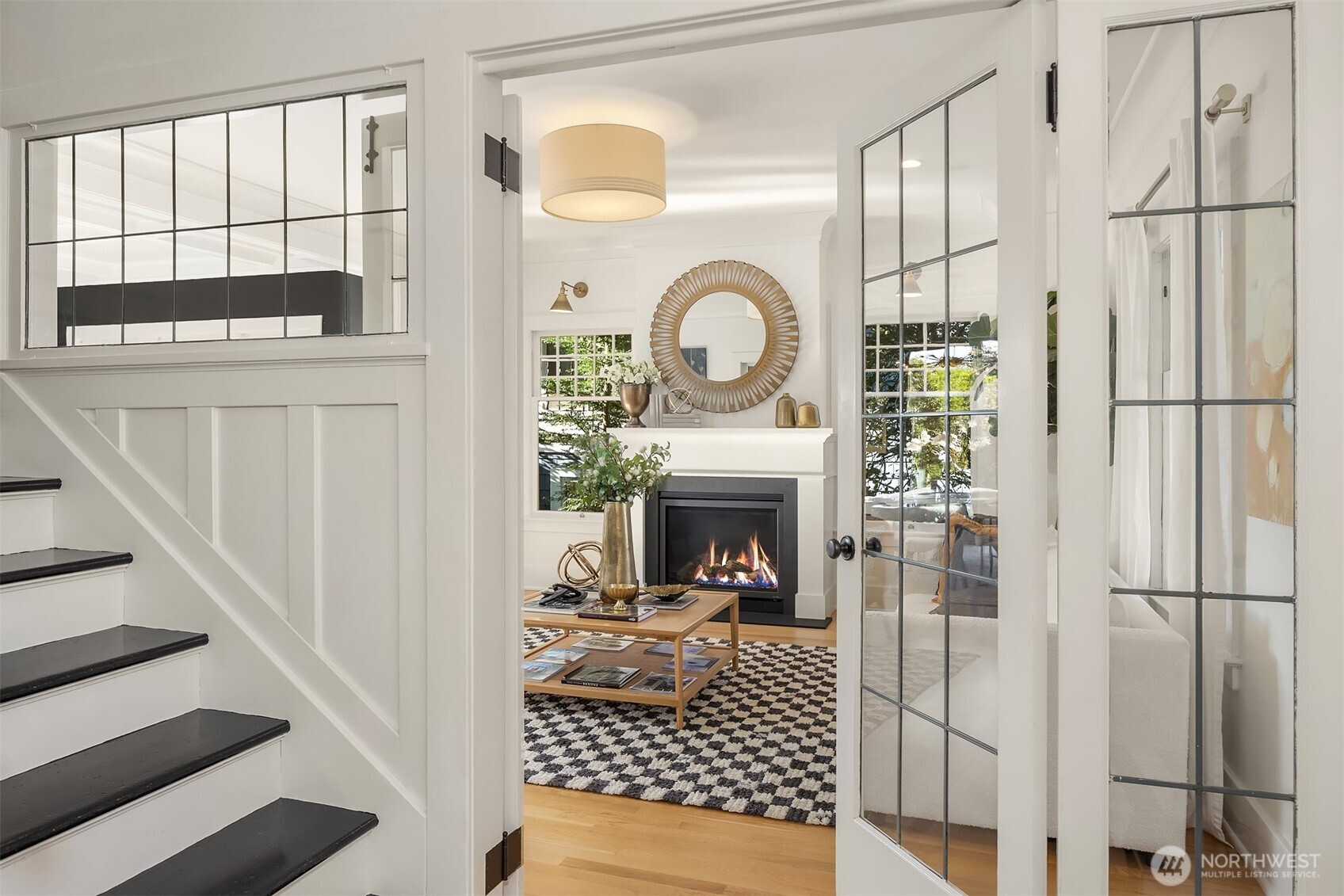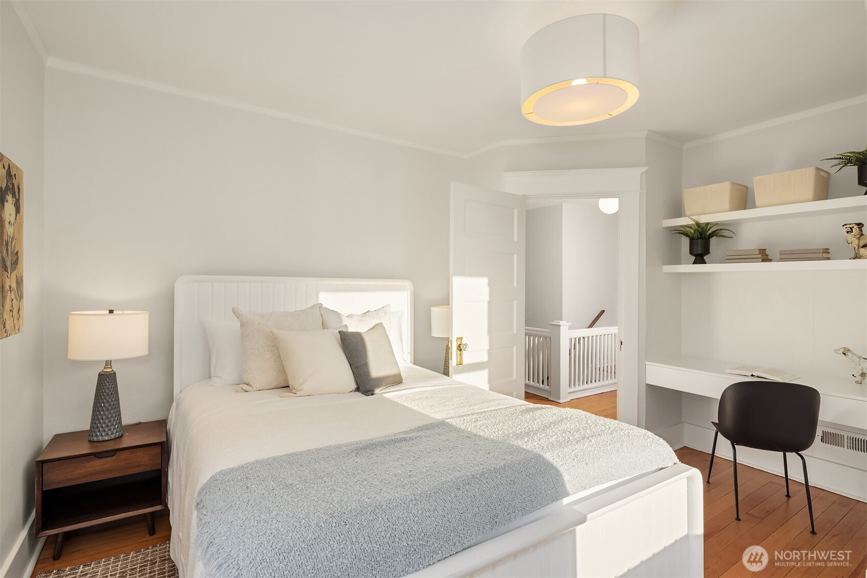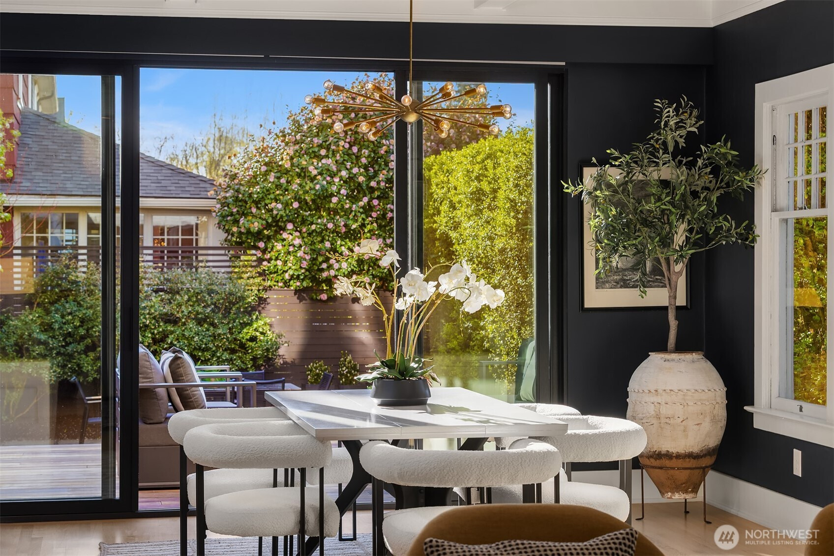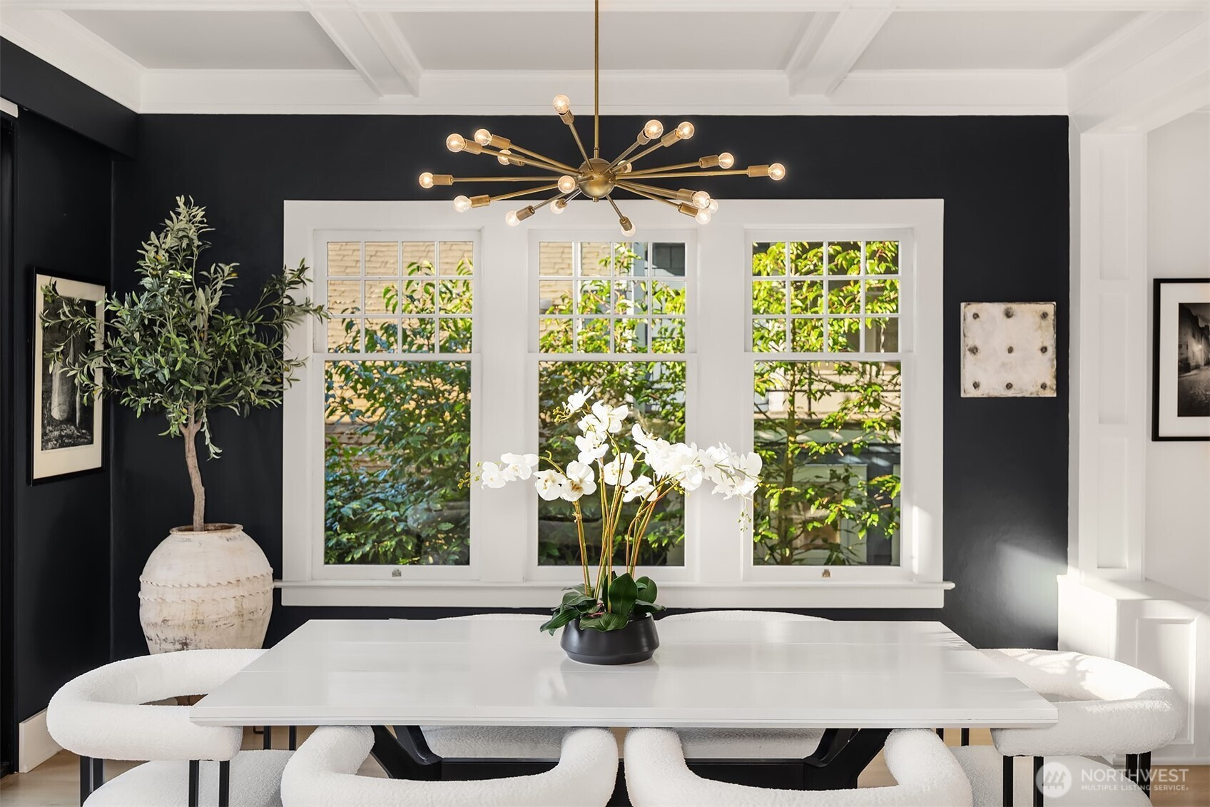 Breathtaking 270-degree views of the Olympics, Cascades, Mt. Baker, and Lake Washington. Modern finishes throughout. This is North Capitol Hill at its finest: a meticulously maintained 1910 Craftsman with all its original charm, thoughtfully renovated by award-winning Board & Vellum in 2018. A wide covered front porch welcomes you into a light-filled interior where timeless architecture meets refined updates. Glass doors open to an ironwood entertaining deck overlooking a secluded backyard for effortless indoor-outdoor living. The kitchen anchors the main floor with a waterfall-edge island, custom cabinetry, quartz counters, Liebherr refrigerator, and Miele dishwasher. A private office and powder room complete the level. Upstairs, newly refinished fir floors lead to three spacious bedrooms and a full bath. The top-floor primary suite offers something few homes can match: sweeping mountain and water views framed by all-new Marvin fiberglass windows, with a walk-in closet and en-suite bath. In the finished basement, an apartment-style suite features a family room with built-in surround sound, a second kitchen, bedroom, bathroom, laundry, spaces for home gym and wine cellar, with a private exterior entrance ideal for guests or multigenerational living. Nest-controlled heating and A/C, spacious carport with storage, and a shared driveway. Steps to several local parks, independent cafés, and excellent private schools, with easy access to both I-90 and SR-520 highways.