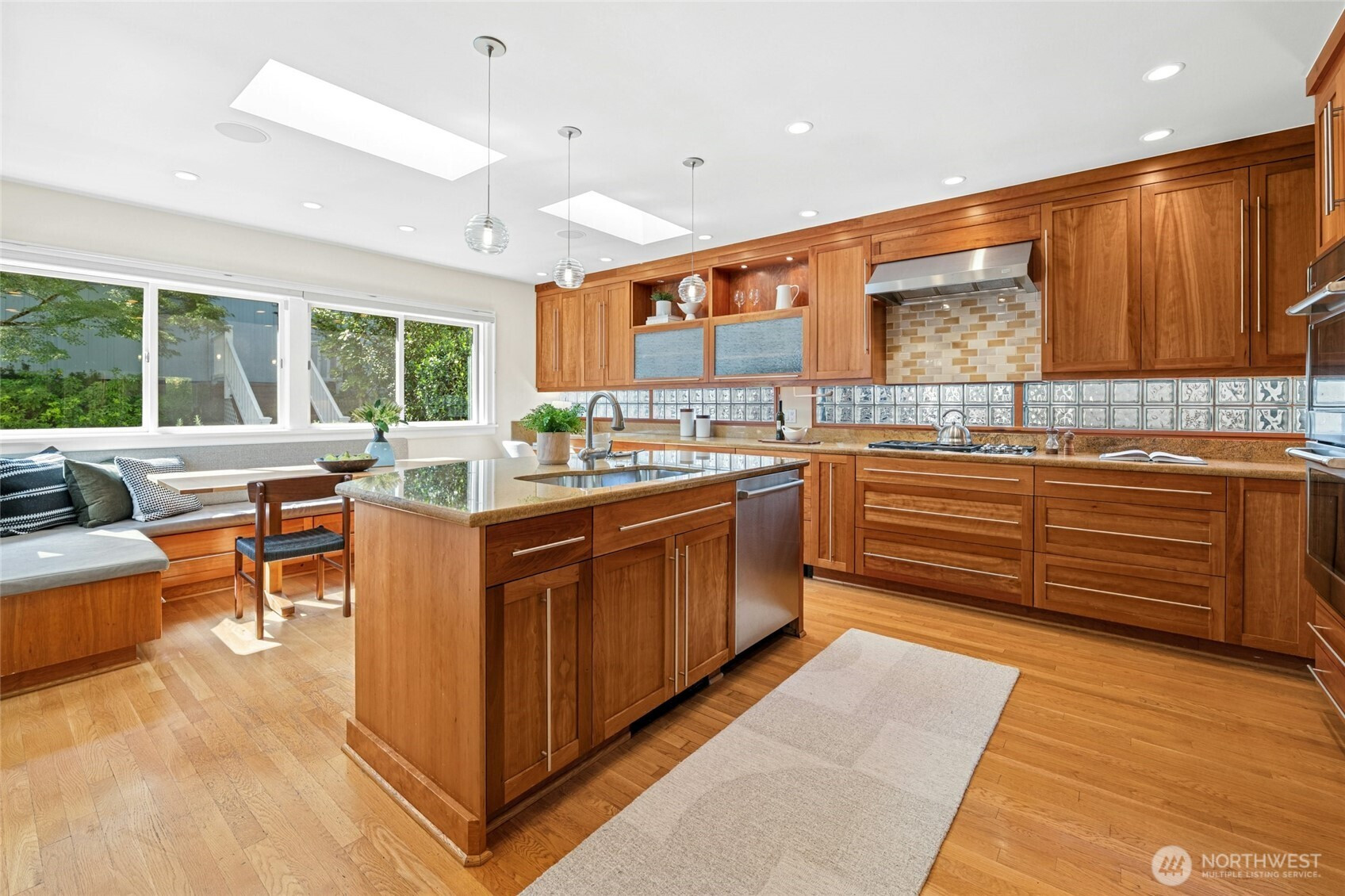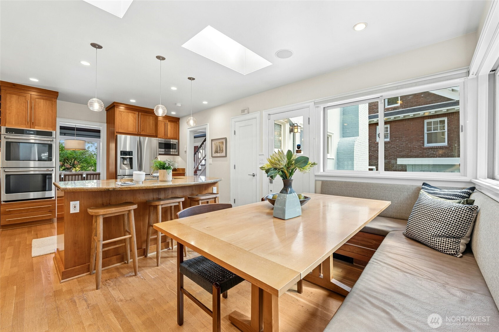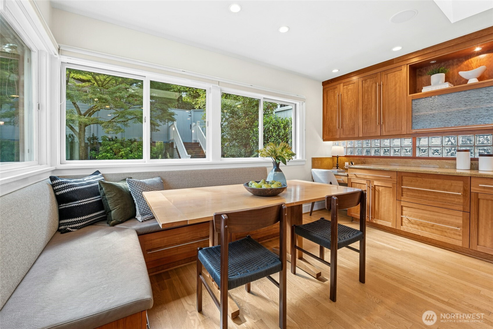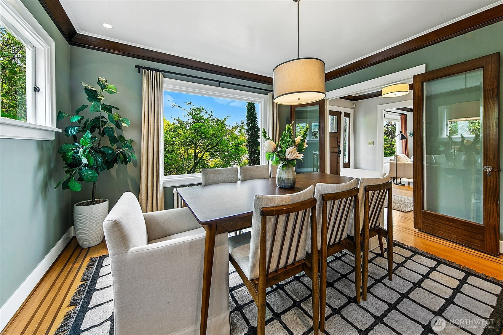 Cinematic Cascade Mountain views take center stage stretching from Mt Baker across the Arboretum with Lake Washington as the backdrop all from this well preserved 1920s Colonial where city life softens into nature. Skip the stairs from Crescent and opt to park in the private alley’s two-car garage, where a few gentle steps carry you through a sunny backyard directly into the heart of the home: the kitchen. Here, timeless finishes and openness create the kind of everyday gathering place that naturally draws friends. It’s a space designed for morning routines, after-school snacks, and unhurried weekend breakfasts with the doors open to fresh air and the garden. The main level boasts of oak floors, mahogany wrapped windows and a living room centered on a Batchelder tile fireplace. The open center hall staircase leads to three bedrooms and two baths including a serene primary suite with its own balcony—a front-row seat to storybook PNW lake and mountain views. It’s the sort of outlook that quietly marks the seasons and reminds you why you live here. The lower level is home to a large family room, guest suite with 3/4 bathroom, laundry and storage. With Interlaken Park at your doorstep and Volunteer Park just four blocks west, this is a setting where trails, trees, and open green space feel like an extension of your own yard. Graceful, practical, and surrounded by nature, this Colonial offers a rare blend of heritage charm and everyday livability.