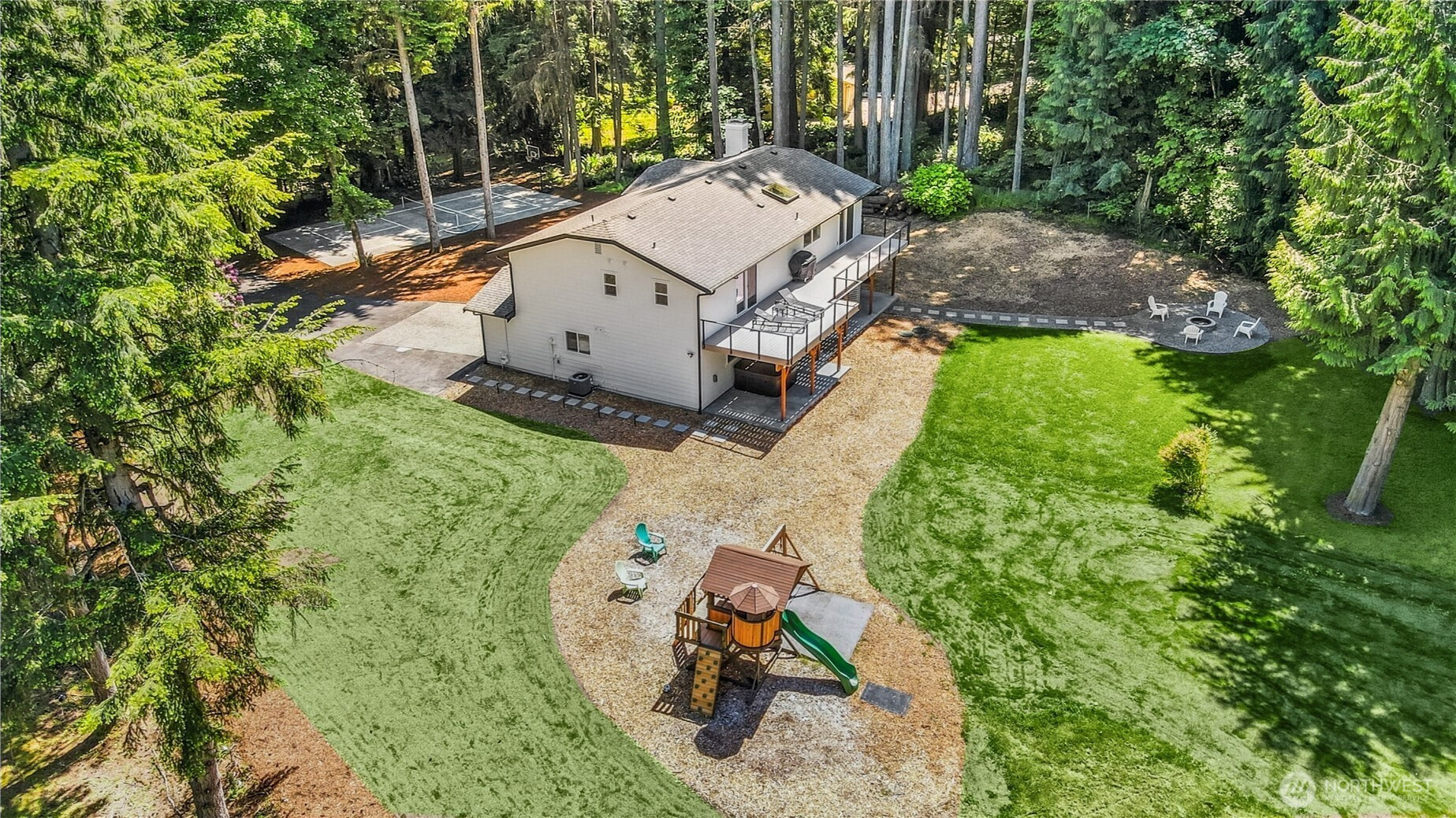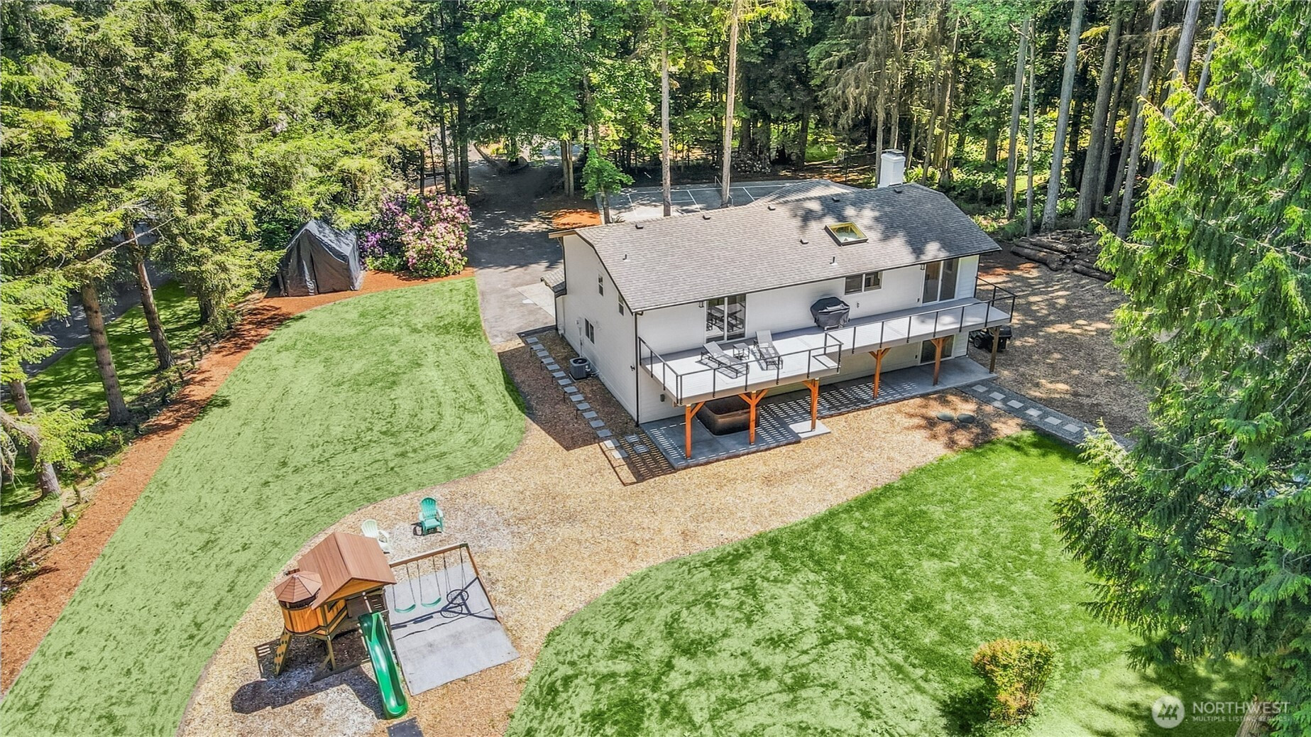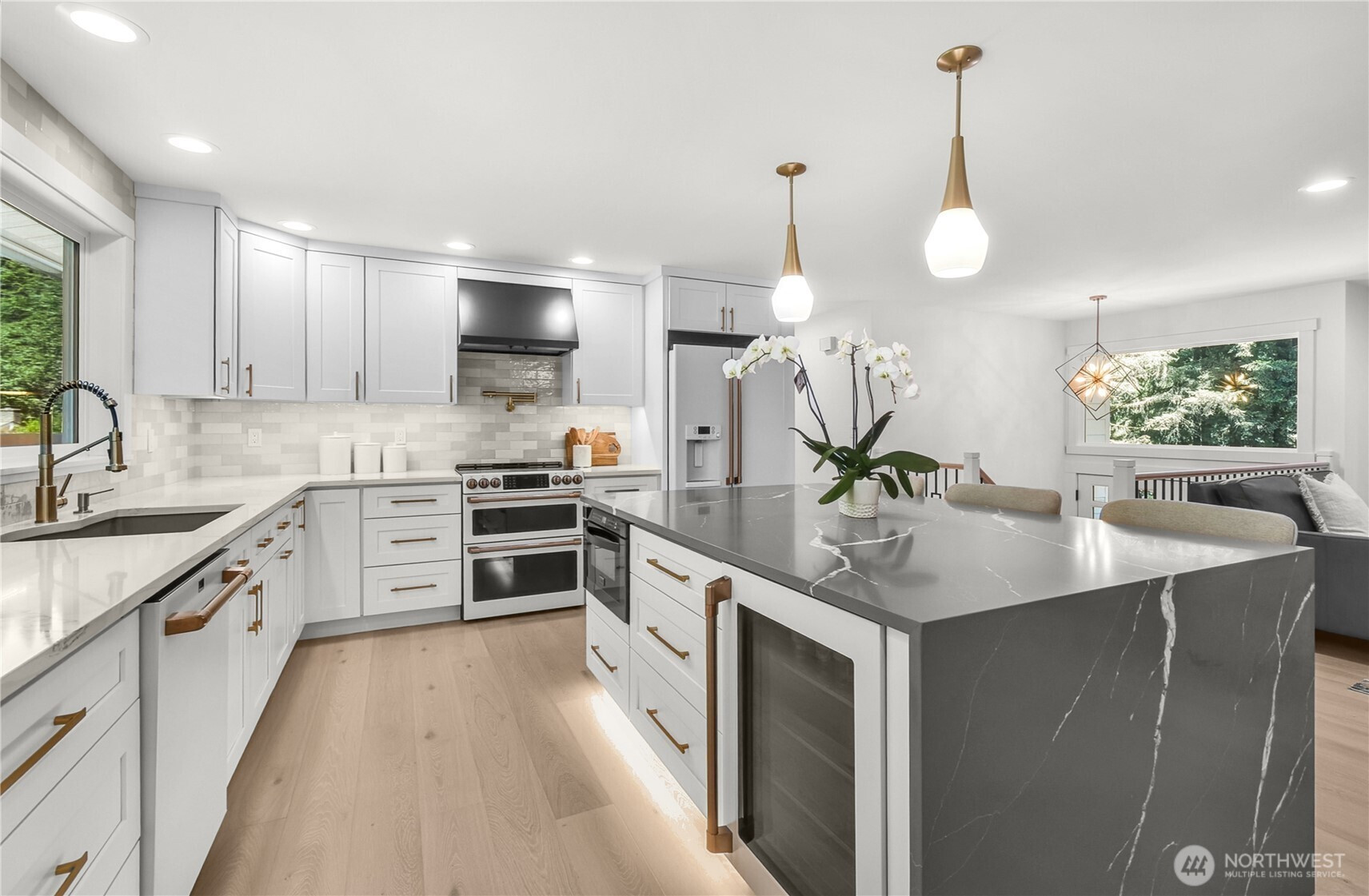 Embrace upscale Woodinville living in this fully renovated home, located off a private lane offering privacy. Sitting on 1.2-acre lot in highly desirable Wellington neighborhood&award-winning Northshore SD. The home features high-end finishes and spacious layout filled w/light. Primary bedroom w/en-suite bath. Light & bright chef's kitchen opens out onto the oversized new Azek deck w/ NG connection. Huge family rm on the lower level w/ wet bar, bonus rm. Mature landscape surrounds the flat yard with sport court, jacuzzi+ playground! EV charger, central vacuum, AC, plug-in generator. $300k renovation. Min to 522/405, DT Woodinville, Wine Country, Costco + Trader Joe's coming soon. Seller offers $15K towards buyer's closing costs at closing.