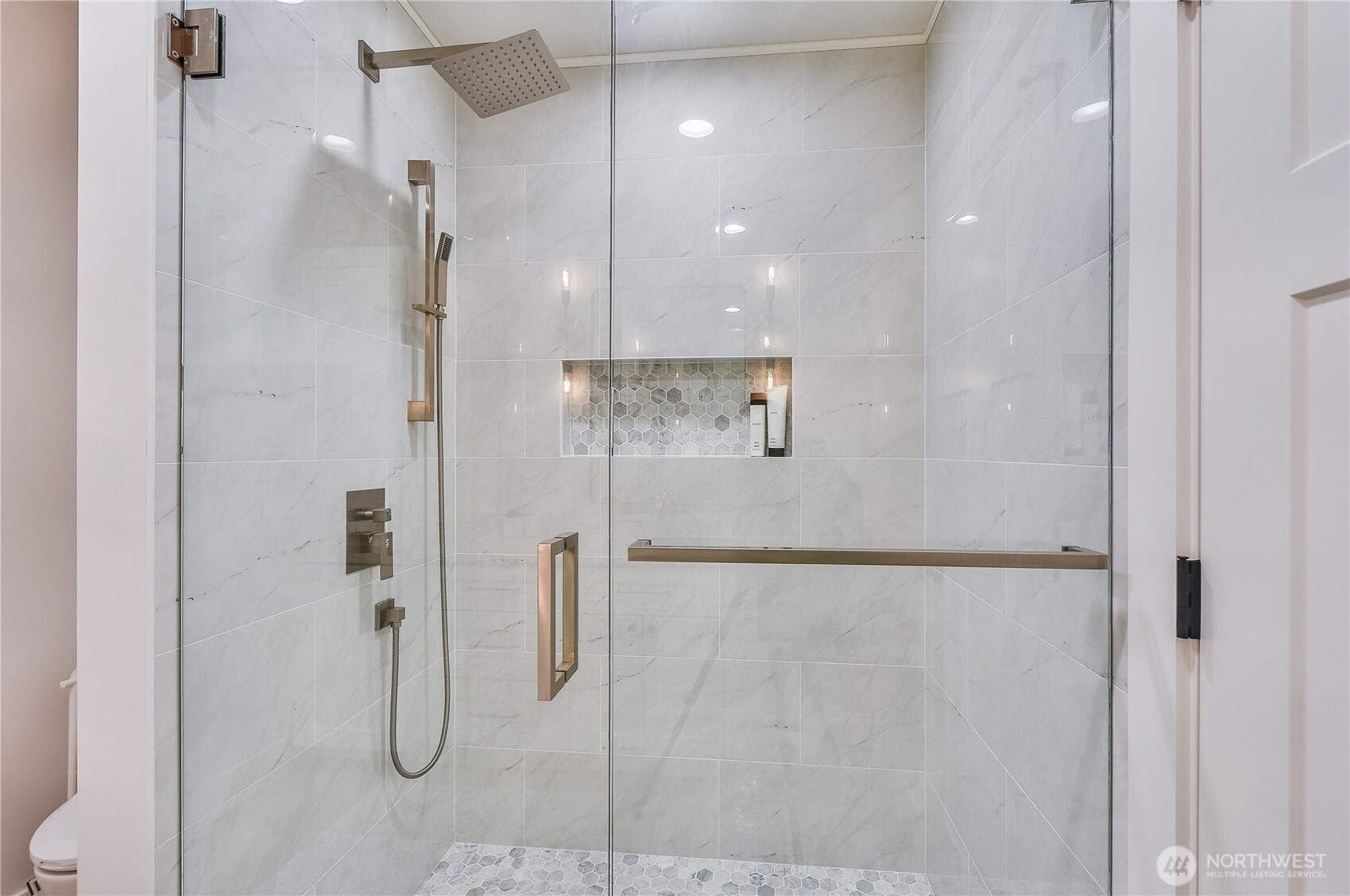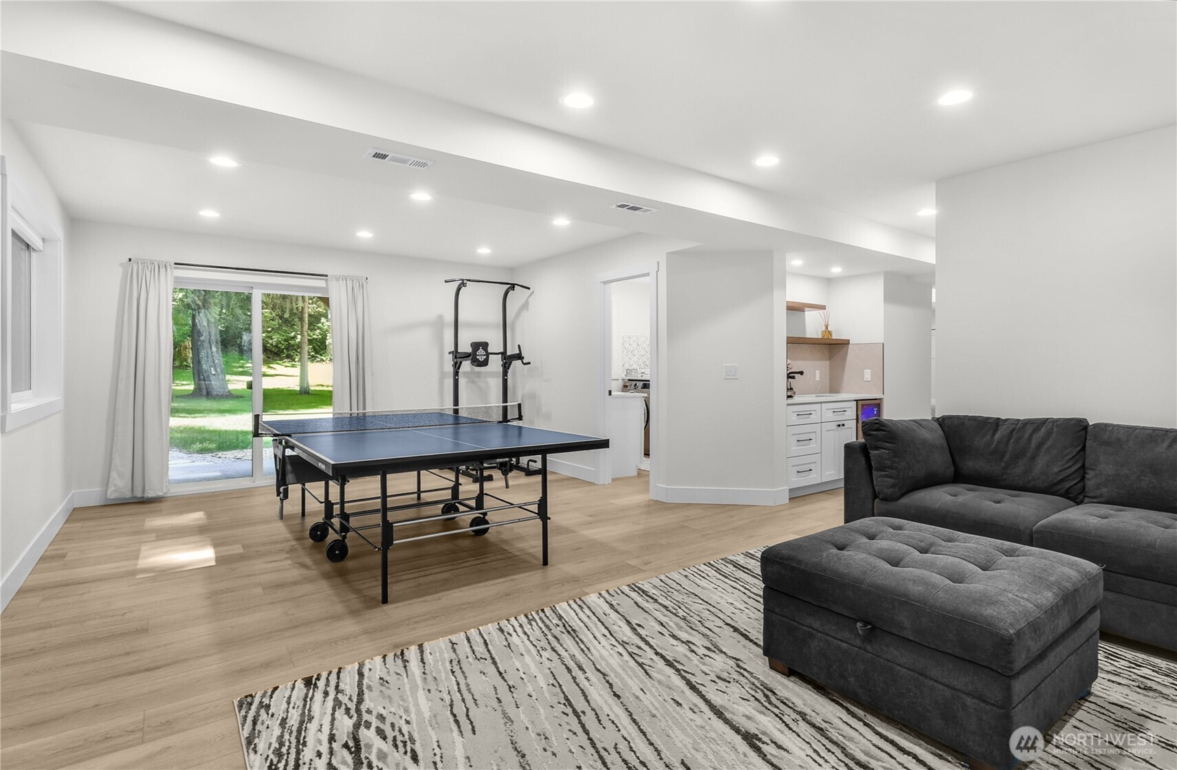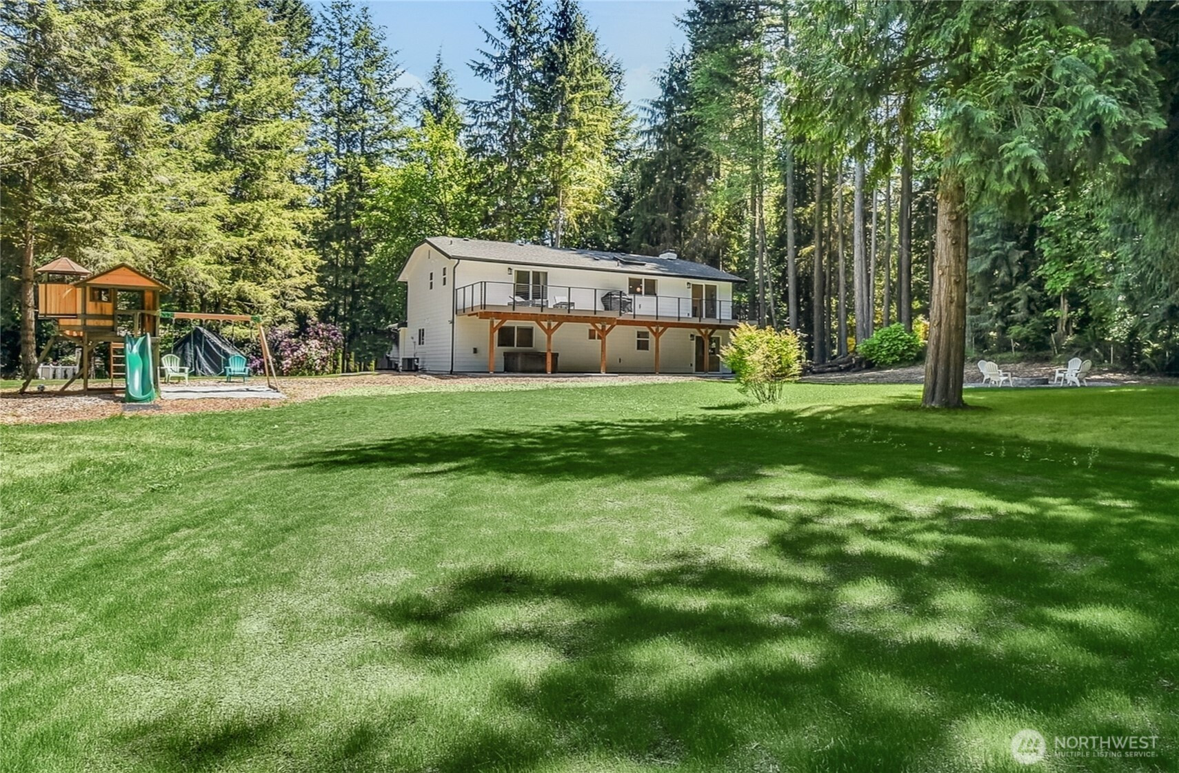 Embrace upscale Woodinville living in this fully renovated home, located off a private lane offering privacy. Sitting on 1.2-acre lot in highly desirable Wellington neighborhood&award-winning Northshore SD. The home features high-end finishes and spacious layout filled w/light. Primary bedroom w/en-suite bath. Light & bright chef's kitchen opens out onto the oversized new Azek deck w/ NG connection. Huge family rm on the lower level w/ wet bar, bonus rm. Mature landscape surrounds the flat yard with sport court, jacuzzi+ playground! EV charger, central vacuum, AC, plug-in generator. $300k renovation. Min to 522/405, DT Woodinville, Wine Country, Costco + Trader Joe's coming soon. Seller offers $15K towards buyer's closing costs at closing.