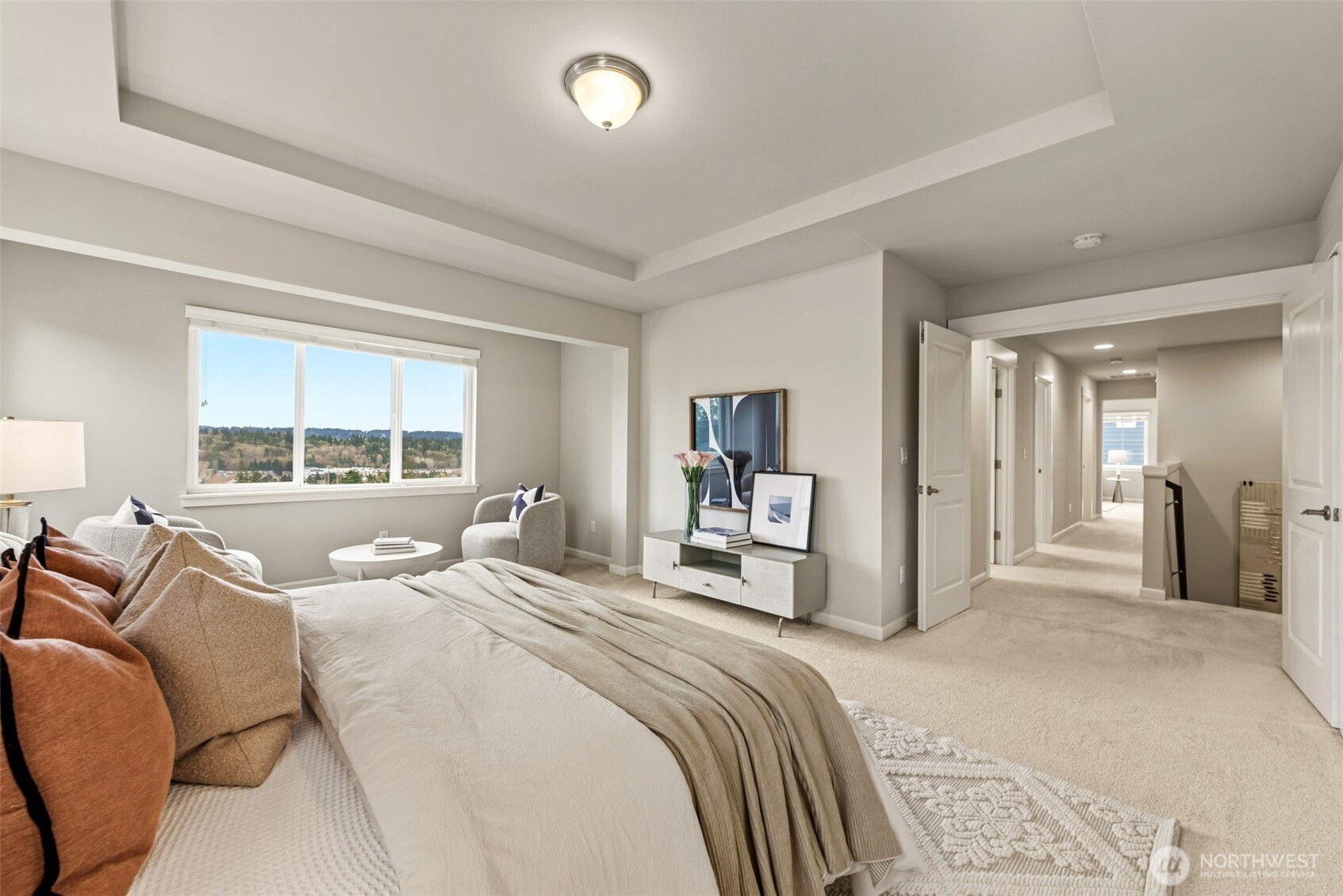 Enjoy sweeping Cascade Mountain and Woodinville Valley views from this beautifully designed Toll Brothers home in Bothell. Offering 6 bedrooms and 5 bathrooms, the spacious layout blends comfort, functionality, and elegant living spaces filled with natural light.The upper level features a versatile bonus room along with a stunning primary suite that captures scenic views and includes a spa-inspired bath and a generous walk-in closet. Large windows throughout the home bring in abundant daylight while highlighting the surrounding landscape.The lower level offers a fully finished guest suite complete with its own kitchen and laundry area—ideal for guests, extended living, or multi-generational flexibility—with direct access to the private backyard.Situated on a premium lot within the community, the home takes full advantage of its elevated setting and scenic surroundings. Additional highlights include air conditioning, quartz kitchen countertops, a convenient butler’s pantry, and a spacious view deck perfect for relaxing or entertaining.
