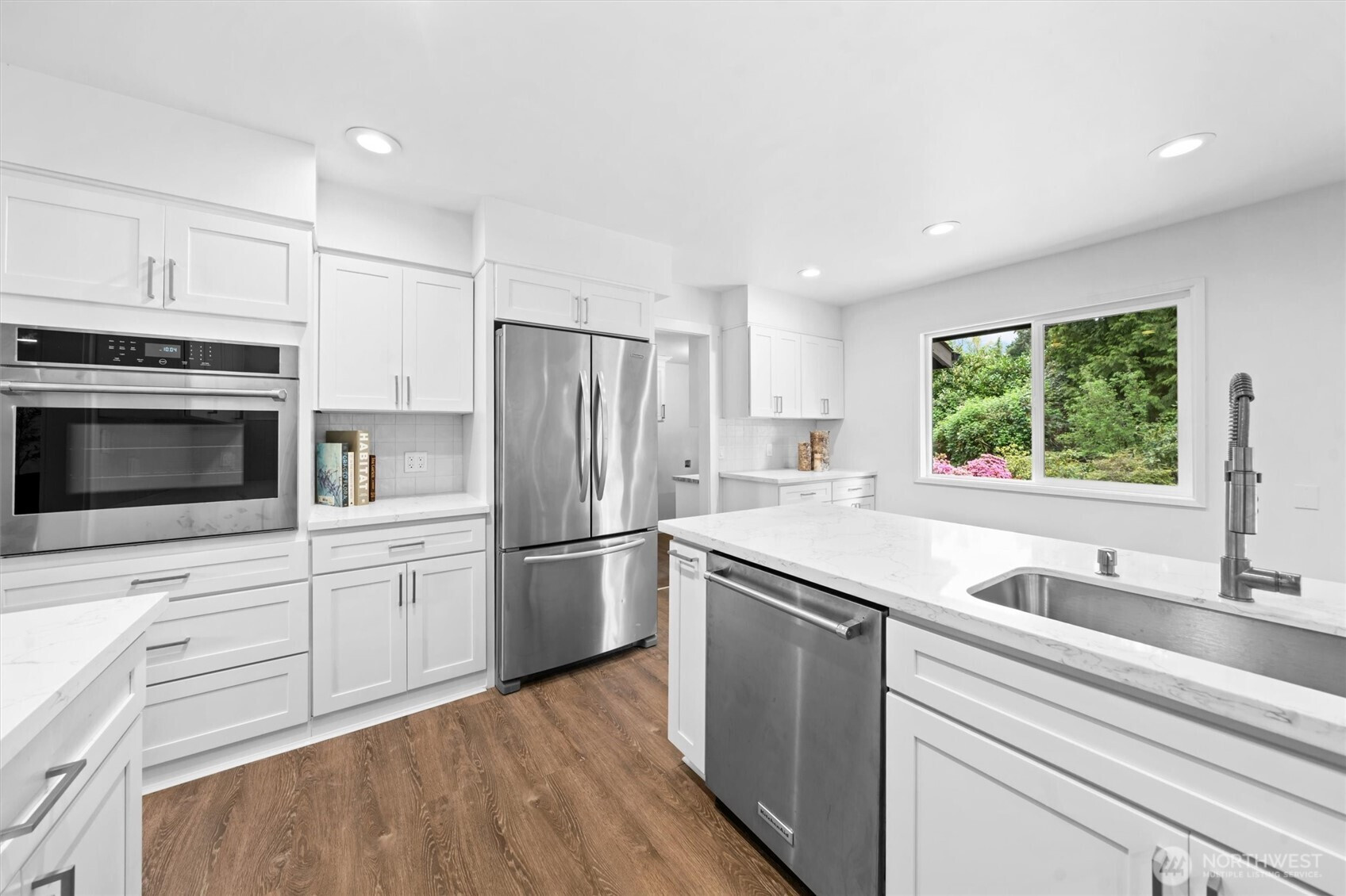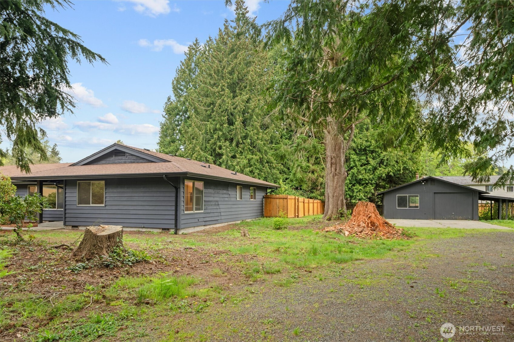 Updated rambler on .75 acres with a detached shop. The home features a large attached garage, useful detached shed with second story, greenhouse and lots of privacy and space for activities. With 4 bedrooms and vast outdoor area, you have room to stretch. Recent updates include re-piping of plumbing system, upgraded electrical panel, new stove and oven and complete cabinet update in kitchen and bathrooms. Walk in shower in primary not pictured, must see. Large bedrooms not common this day in age. This home lives well with natural light and quiet serene surroundings. Conveniently located near Fairwood shopping and schools. If you are looking for some space, a shop, a rambler and a turnkey home, this just might be it. The property is also zoned R6 and could be subdivided in the future if you no longer need the shop area and want to downsize or carve off the home and maximize the return. Water and sewer are in the street.