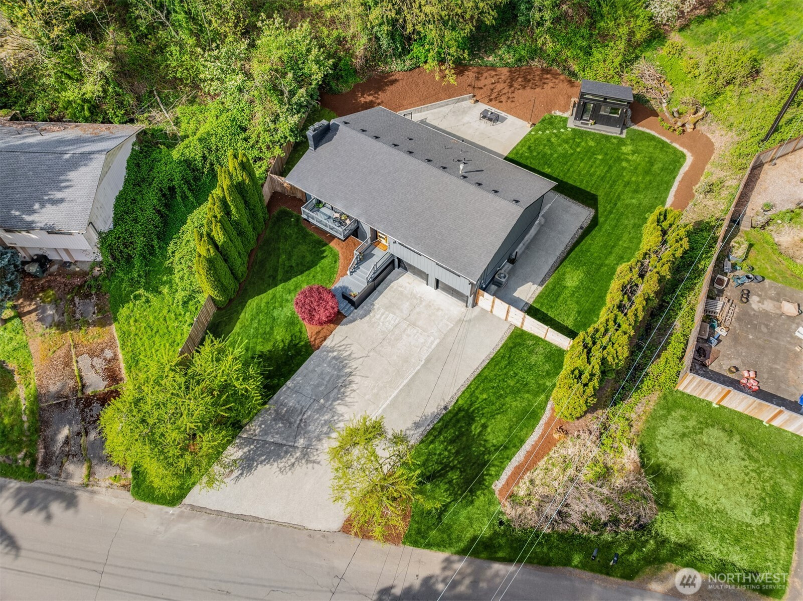 Storybook Kenmore residence loaded with custom upgrades! This tastefully appointed home boasts a sundrenched interior & thoughtful floorplan designed for effortless entertaining. An open concept chef’s kitchen with eating bar opens to a large family room & dedicated dining space ideal for daily gatherings. The spacious main level offers the convenience of 3 bedrooms & 2 bathrooms including a large primary suite overlooking an idyllic private backyard. The expansive lower level boasts a huge informal bonus room, full bath, laundry area, guest bedroom & extra flex room perfect for home gym or crafting center. A fully finished detached structure to the rear of the lot provides an amazing home office with just enough buffer space from the main home. This impeccably maintained property features quality updates at every turn: remodeled bathrooms, all new windows, newer furnace, A/C & stylish designer fixtures. Tucked back from the street on a massive 14K+SF lot, this striking residence features incredible outdoor spaces including level lawn areas, multiple decks & huge entertainment patio perfect for endless summer BBQs. This captivating property offers an oversized garage with room for workshop or additional storage & plenty of space for boat/RV parking. Nestled on a quiet street in the coveted Northshore School District, just mins from award-winning schools, area parks, vibrant downtown Kenmore, the Burke Gilman trail & easy access to SR-522.