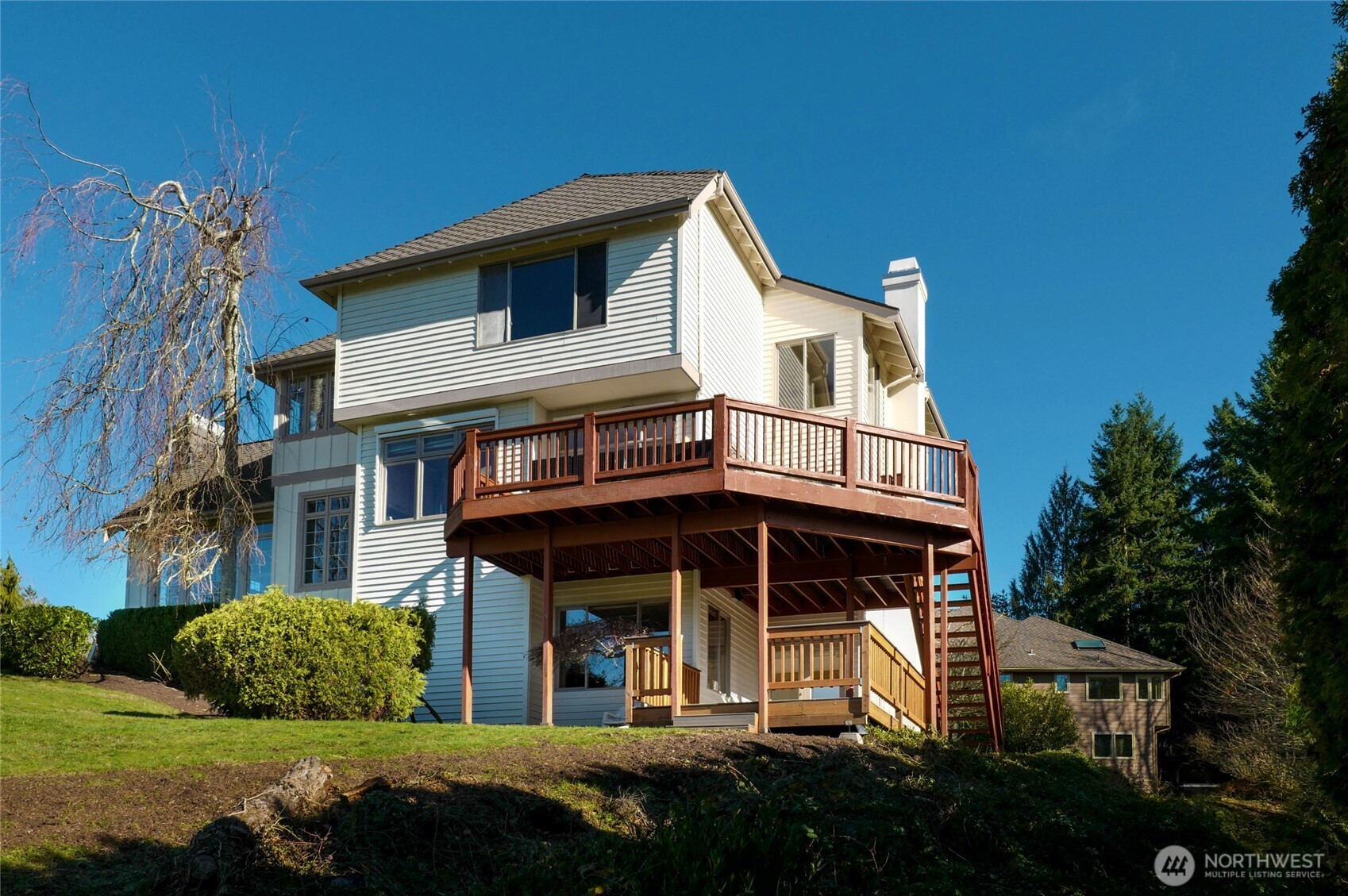 Nestled in the sought after Carlton Heights neighborhood, this spacious home showcases breathtaking Lake Sammamish views from all floors, creating a truly exceptional Eastside living experience. Freshly updated with new carpet and paint throughout, the light-filled living spaces create a welcoming atmosphere for both everyday living and entertaining. Step outside to a brand new deck, perfect for taking in lake views, hosting gatherings, or enjoying peaceful mornings. The generous primary suite features a luxurious five-piece bath and two walk-in closets. Oversized bedrooms provide comfort and flexibility, the finished basement offers a spacious living room with a screen and projector, a bedroom and bath, and a dedicated wine cellar. Perfect for entertaining, guests, or extended living with a separate outdoor patio. A bonus room upstairs adds even more versatility for an in home gym, playroom, office, etc. Enjoy a peaceful setting with easy access to parks, trails, top-rated Issaquah schools, shopping, and dining. This home beautifully combines generous living spaces with breathtaking views and the tranquility of a quiet, wooded backdrop.