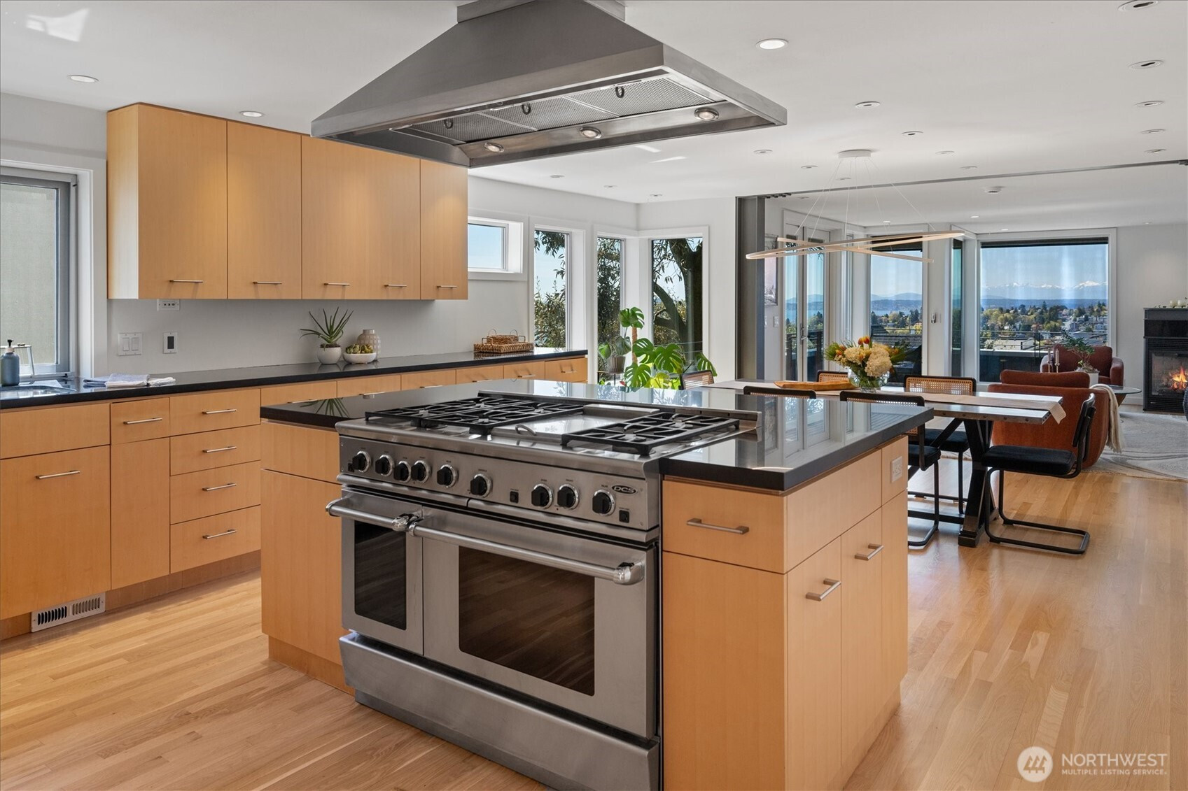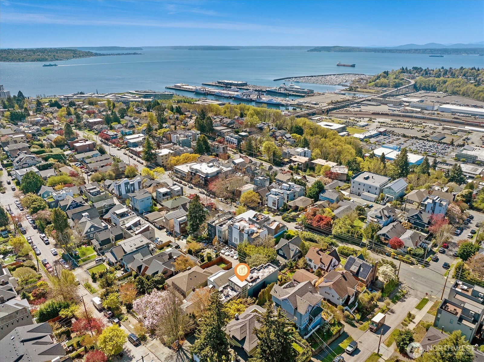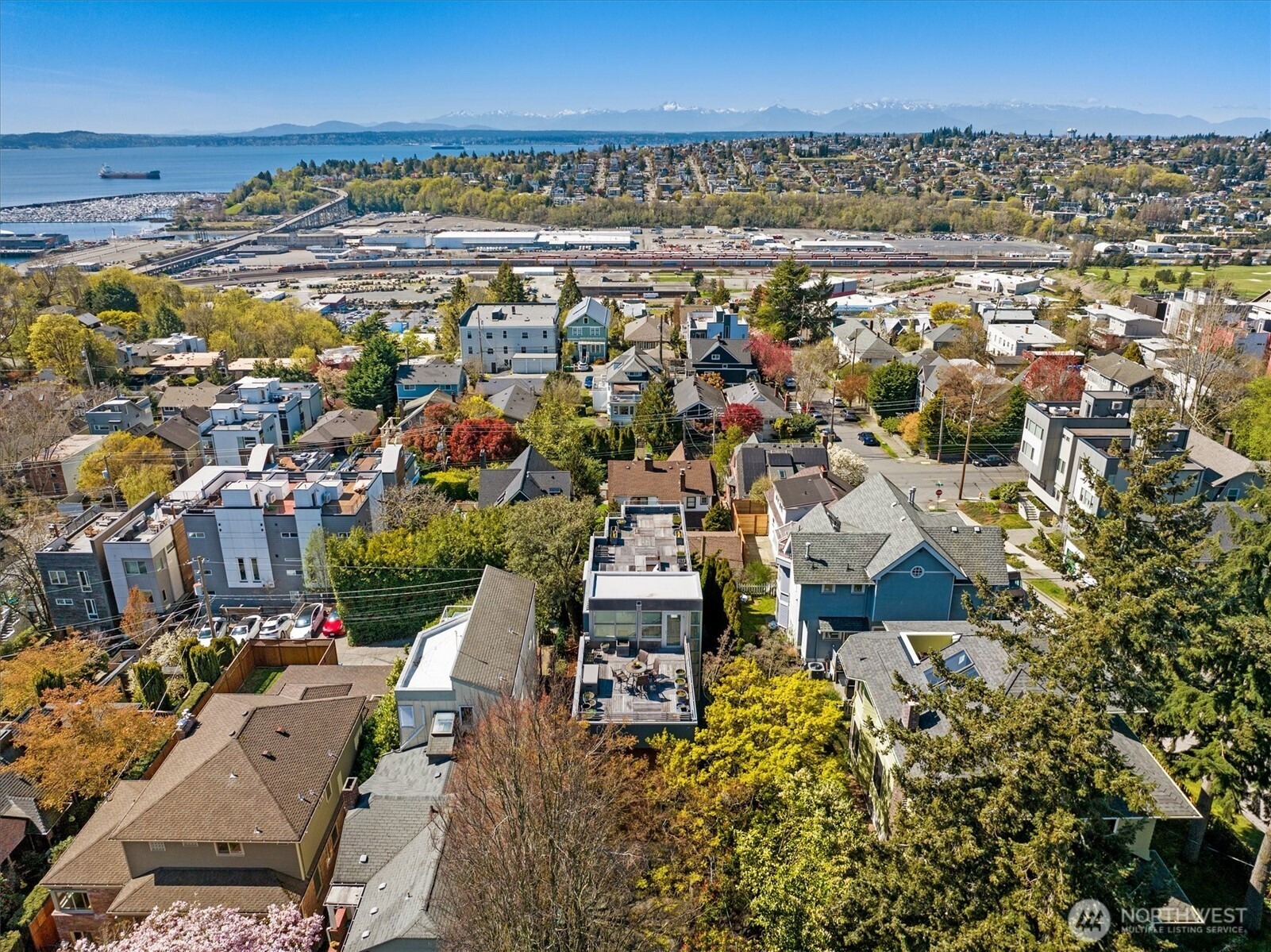 Architectural drama meets intimate sanctuary in this exquisite Scott Johnson-designed Queen Anne masterpiece which was completely re-imagined in 2006 by Scott & has been thoughtfully refreshed for today. The home boasts $100K+ in seller upgrades, including newly refinished hardwood floors, fresh interior paint, a new roof, an updated urban garden, a new dishwasher, and a newly created bonus storage room—signaling a home cared for at every level. A soaring three-story curtain of windows floods the light-drenched interior, while the entire west wing of the second floor is devoted to a serene primary suite with a corner balcony and spa-inspired bath.Then there’s the crown jewel: 1,200 square feet of rooftop deck, where Elliott Bay, the Olympics, and breathtaking sunsets stretch endlessly before you—an entertainer’s dream for legendary summer evenings. The dumbwaiter makes rooftop hosting effortless, whisking food and drinks skyward so you never miss a moment of the view. Sculptural details inside and out, a home theater, home office, raised garden boxes, a water feature in the Asian-inspired garden, an a tucked-away two-car garage with a three-car driveway complete this rare convergence of design and move-in perfection.Walkable to all the wonderful Queen Anne shops, restaurants, and cafés. Come for the views, stay for a lifetime.