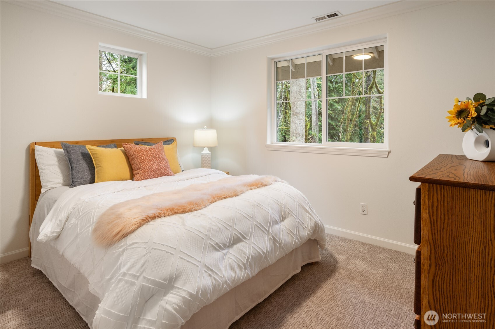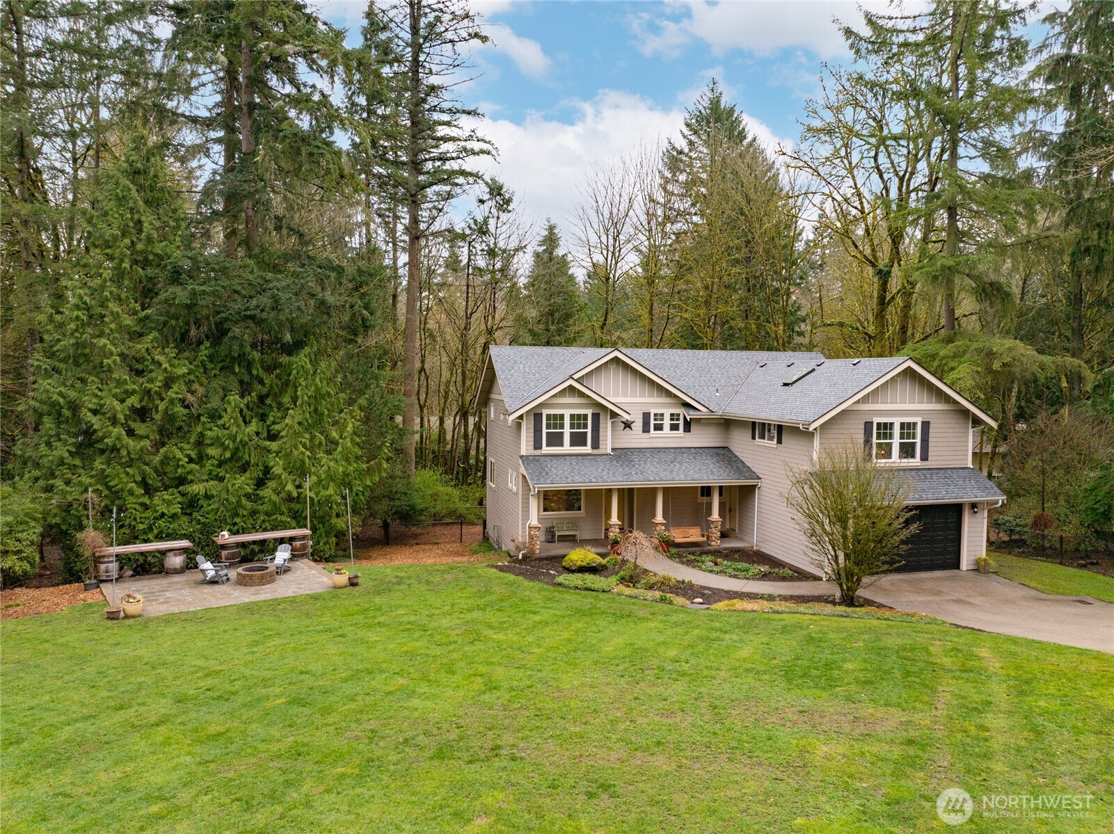 Tucked away on a quiet street in desirable Wellington, this refreshed home sits on a shy-acre lot and offers rare versatility with five bedrooms plus a dedicated office. Updates include a new roof, carpet, and interior paint. The main living areas flow easily for everyday living and entertaining, while the large kitchen connects to gathering spaces and the back deck. A main-floor bedroom with adjacent full bath offers flexible living, and the separate office makes working from home easy. Laundry provides a convenient drop zone with access to the oversized two-car garage with EV charging. Upstairs, a huge vaulted bonus room offers space for media, recreation, or a second living area. The primary suite features a fireplace, walk-in closet, and five-piece bath alongside three additional oversized bedrooms. The shy-acre lot includes garden space, dog run, patio with fire pit, and multiple outbuildings. A standout feature is the 900 sq ft greenhouse offering flexible use for gardening, hobbies, studio, workshop, or exercise. Ideally located near neighborhood schools and minutes to Woodinville wineries, parks, and amenities.