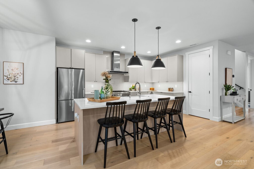 Live large in this luxuriously curated gem home in the heart of Richmond Beach! This masterpiece of modern design features an open-concept chef’s kitchen, beautiful quartz countertops, premium appliances, walk-in panty with bonus storage, vaulted ceilings, and two generous living rooms —perfect for everyday living and effortless entertaining! Enjoy the spacious bedrooms with generous closet space, including the grand primary-suite with a 5-piece custom designed bathroom, overhead rain shower, and huge walk-in closet! Easy-living and peaceful relaxation from the comfort of the covered outdoor patio and a fully private low-maintenance yard—perfect for BBQ and outdoor enjoyment! Located just minutes away from restaurants, shopping, parks, amenities, Richmond Beach and the desirable Shoreline school district. Easily commute from this lovely and convenient community or comfortably work from home! Capture this rare opportunity to own a true beauty that captures the essence of Northwest elegance. Truly a must-see!