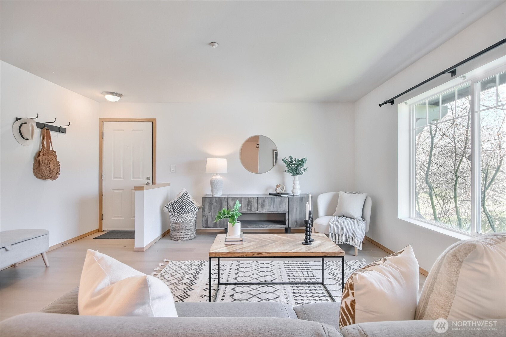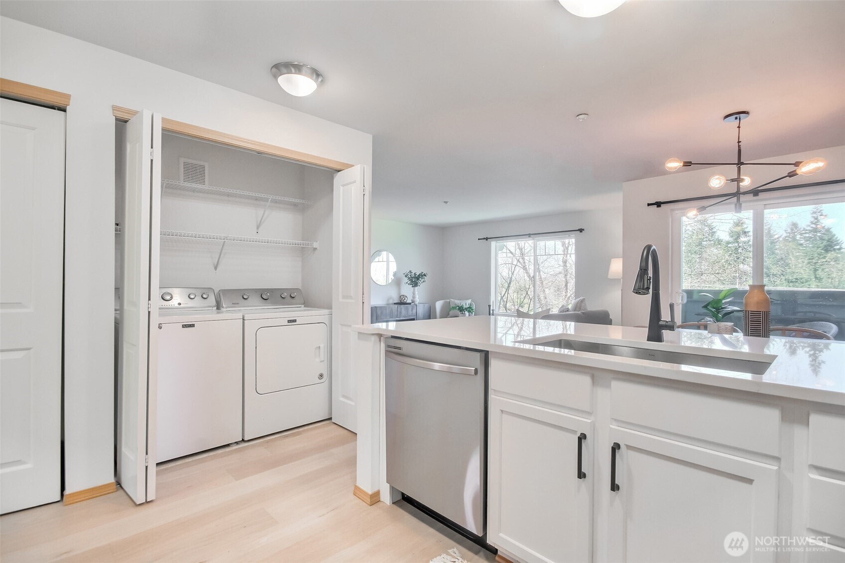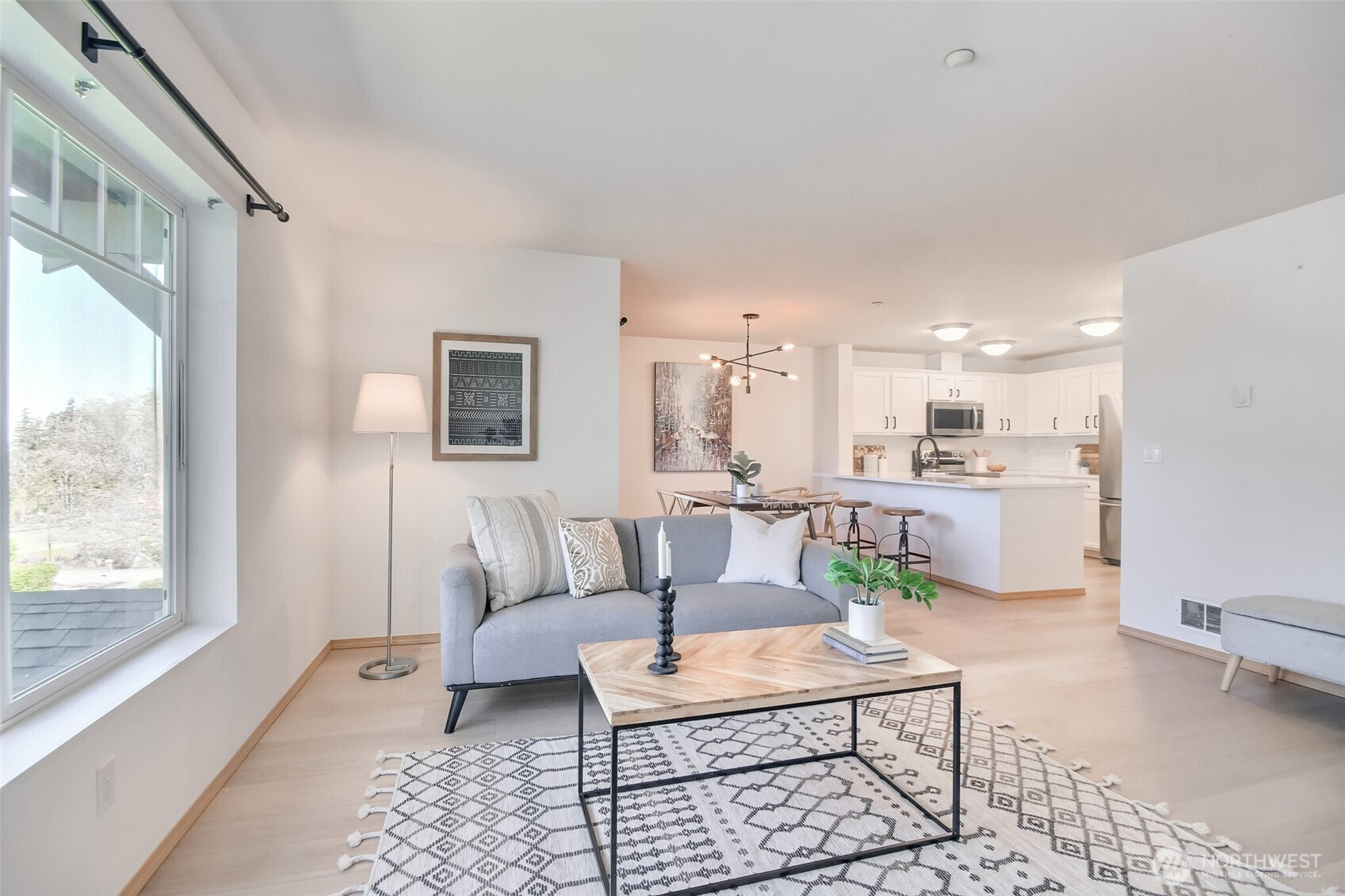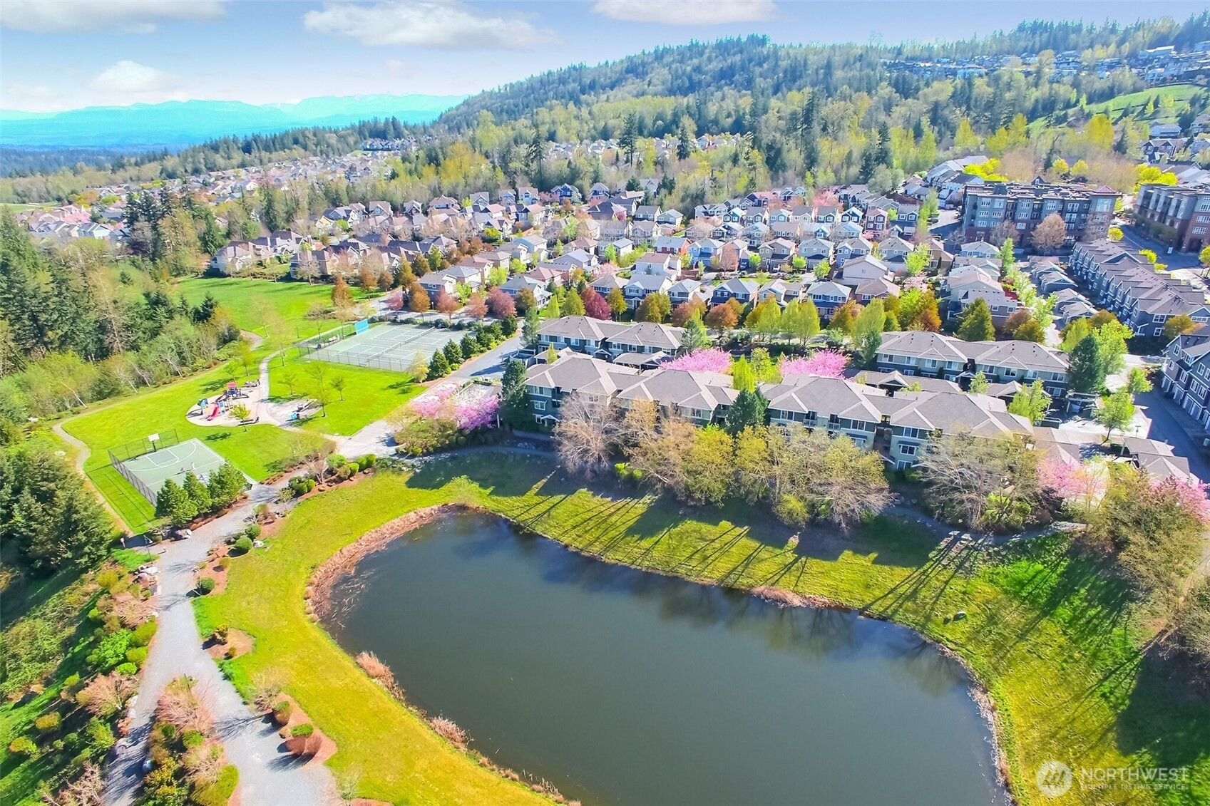 Location! Issaquah Highlands! Lakefront building! Beautiful Lake view, breathtaking sunsets views and Mt. views! Open concept 2 bdrms, 2 baths end unit. Filled w/natural light, surrounded by views of nature. New Hardwood look vinyl plank floorings throughout the living area, plush wall-to-wall carpet in bedrooms. Updated kitchen w/White cabinets, Quartz countertops, All appliances(Stainless Still) stays included Washer/Dryer. The primary suite has an en-suite full bath & 2 closets. Good size 2nd bedroom & Hallway full bath. LakeView Balcony & storage. 1 carport (#5). Just steps to nature trails, parks, athletic courts & playground. Minutes to shops, groceries, dining, & I-90. Highly rated schools. FHA-approved. Part of the ARCH affordable housing program (buyer must be approved w/limited income program). income limits apply: 1 person= $109,970; 2 person= $125,680; 3 person= $141,390; 4 person= $157,100.Beautiful unit. Must see!