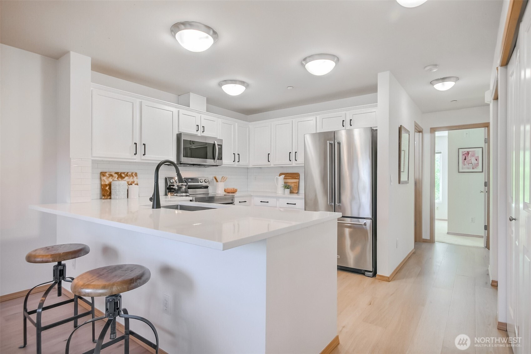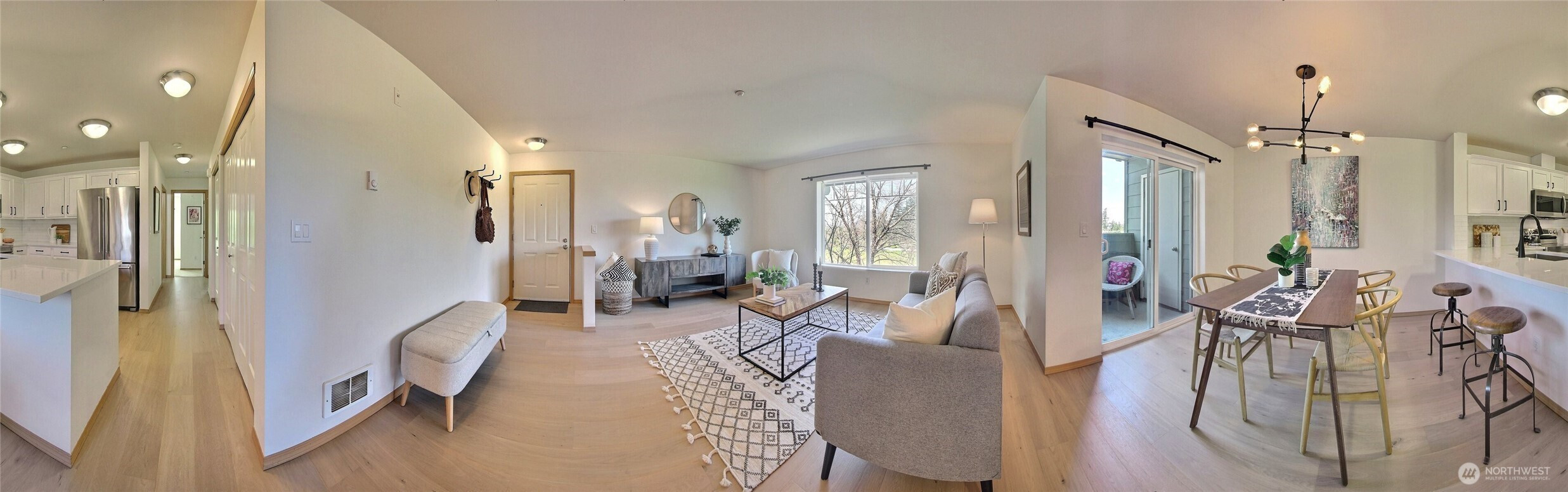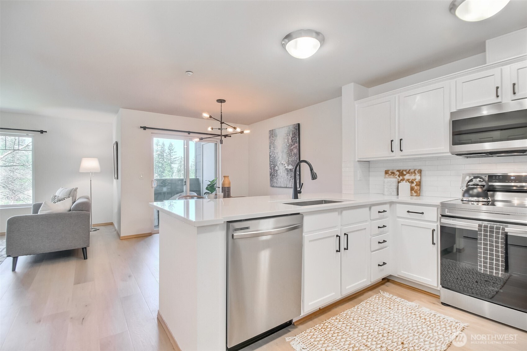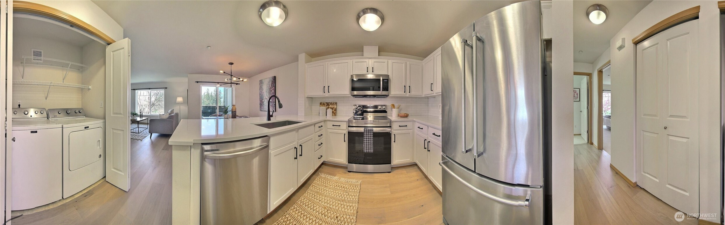 Location! Issaquah Highlands! Lakefront building! Beautiful Lake view, breathtaking sunsets views and Mt. views! Open concept 2 bdrms, 2 baths end unit. Filled w/natural light, surrounded by views of nature. New Hardwood look vinyl plank floorings throughout the living area, plush wall-to-wall carpet in bedrooms. Updated kitchen w/White cabinets, Quartz countertops, All appliances(Stainless Still) stays included Washer/Dryer. The primary suite has an en-suite full bath & 2 closets. Good size 2nd bedroom & Hallway full bath. LakeView Balcony & storage. 1 carport (#5). Just steps to nature trails, parks, athletic courts & playground. Minutes to shops, groceries, dining, & I-90. Highly rated schools. FHA-approved. Part of the ARCH affordable housing program (buyer must be approved w/limited income program). income limits apply: 1 person= $109,970; 2 person= $125,680; 3 person= $141,390; 4 person= $157,100.Beautiful unit. Must see!