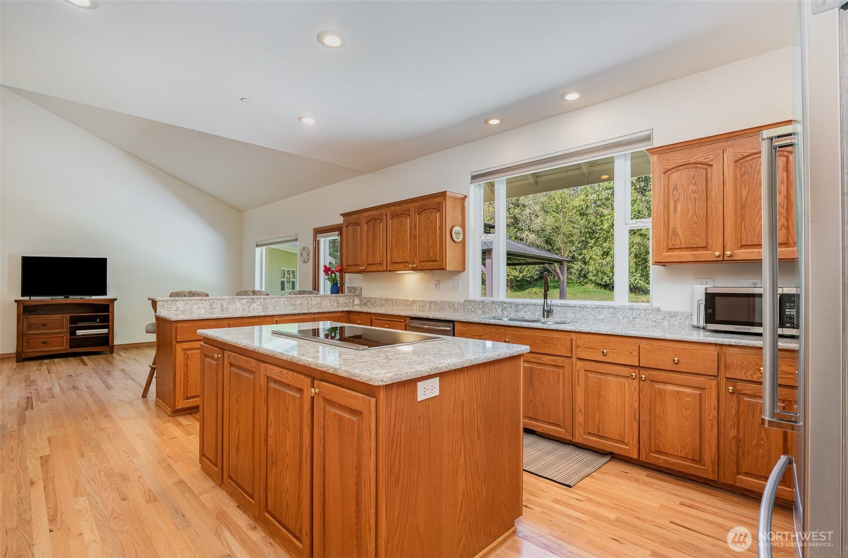 Tucked away in a secluded & serene setting, this 2,600 sq ft picture-perfect custom rambler sits on 5 stunning acres surrounded by nature. With soaring 16 ft ceilings & abundant natural light through picturesque windows, this spacious home offers peace, privacy & beauty at every turn. Enter to find hardwood floors & an open-concept layout featuring a chef’s kitchen with quartz countertops, SS appliances, & walk-in pantry. The expansive primary suite boasts vaulted ceilings, dual walk-in closets & recently renovated en-suite bath with dual vanity & walk-in shower. Stay cool with A/C & enjoy 3-car garage plus ample space for RVs, boats or ATVs & new roof! Pristine land is perfect for a garden or recreation. Located in the desirable Tahoma SD.