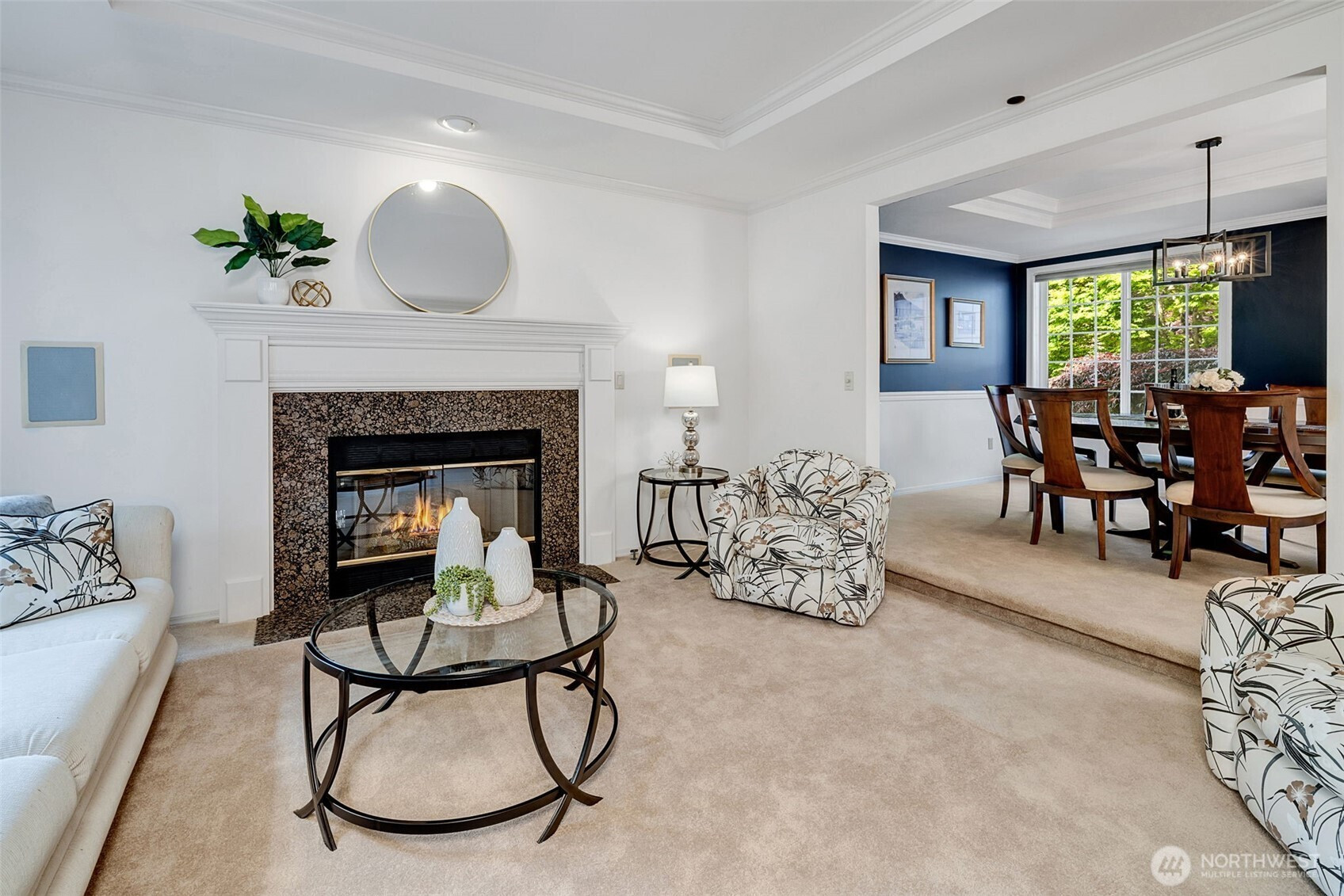 Bath Off Primary, Double Pane/Storm Window, Dining Room, Fireplace, Sprinkler System, Vaulted Ceilin